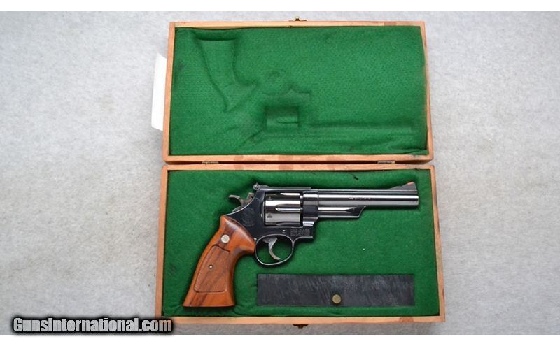 Description: This Smith & Wesson Model 25-5 is a 6 shot double action N-frame revolver in .45 Long Colt Cal. It has a 6 inch barrel. A blade front sight with red and an adjustable notch rear sight. The grip is a checkered walnut with silver S&W medallions. The back strap is grooved. .45 Colt SOLD Chambers: 6 shot. Metal Condition: Excellent. Wood Condition: Excellent. Bore Condition: Excellent. Barrels: 6 inch. Triggers: Double Action. Weight: 46 oz. Sights: Raised blade front with red. Adjustable notch rear. Item Location: Richfield, WI |