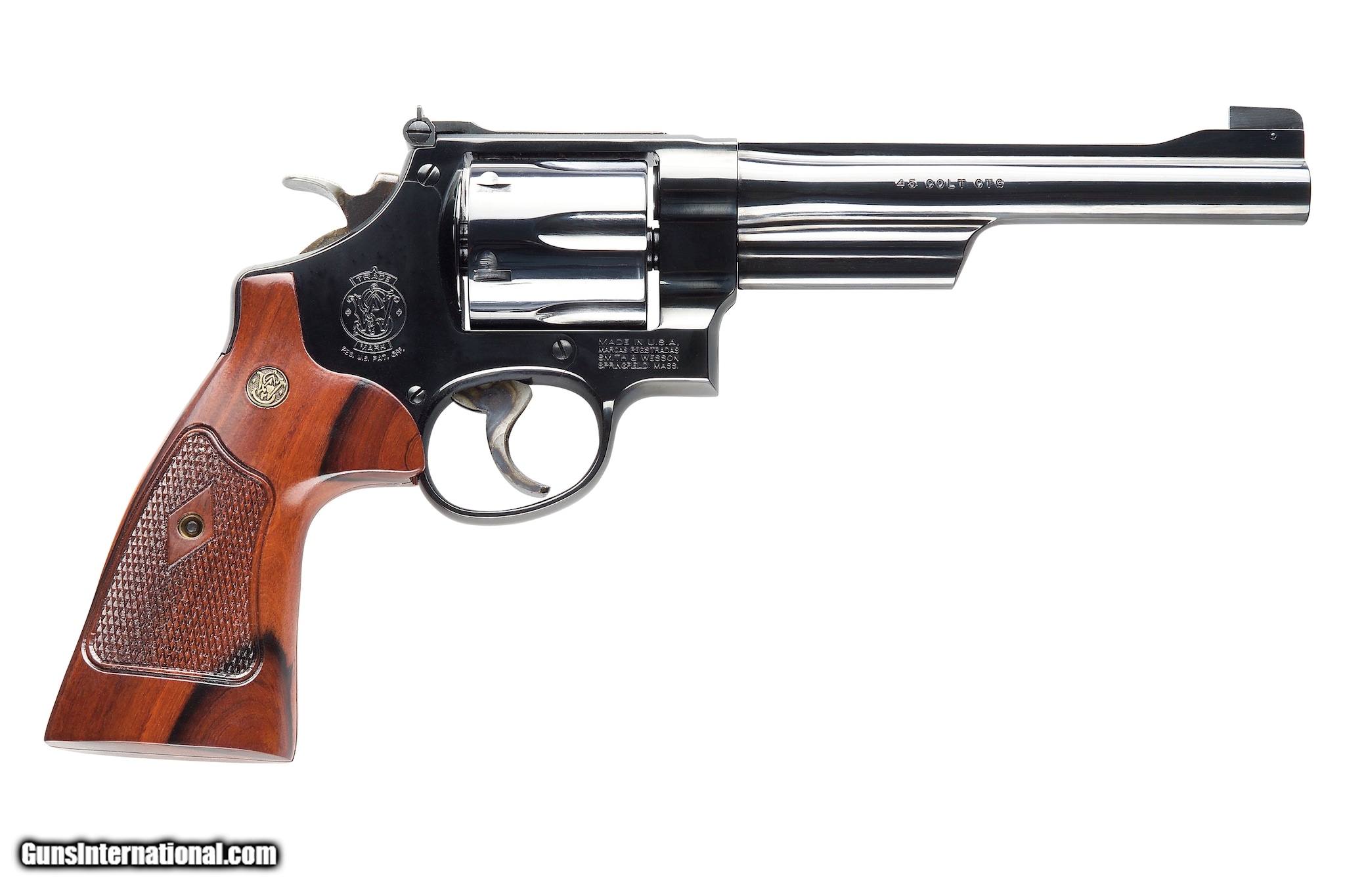 Description: Guns Listing ID: 24325 Manufactured mid-century and now available as part of the companys Classics line the Smith Wesson Model 25 is a double-action revolver chambered in 45 LC or 45 ACP. It is built on a large N-frame and is the target version of the Model 22. It features a 6-round capacity as well as a target trigger and hammer and in addition to a 6-inch barrel the Model 25 has deep bluing and red insert front and white outlined rear sights. Details Action SADA - Caliber .45 Long Colt - Capacity 6 - Material Carbon Steel - Grip Checkered Square Butt Walnut - Finish Bright Blue - Sights Pinned Patridge Micro Adjustable - Barrel Length 6.5 - Overall Length 12 - Weight 42.5 oz - Smith Wesson makes it possible for you to own a piece of history-in-the-making with these Classic revolvers. Theyre the finest new handguns possible with designs harkening back to the most famous and collectible guns that Smith Wesson ever constructed. Each is based on a model known for legendary performance then enhanced with modern advantages. Theyre the timeless best of both worlds Smith Wesson Classics. SOLD Manufacturer: SMITH & WESSON Model: 25 S&W CLASSICS Caliber Info: 45 COLT Condition: new Barrels: 6.5 BARREL |