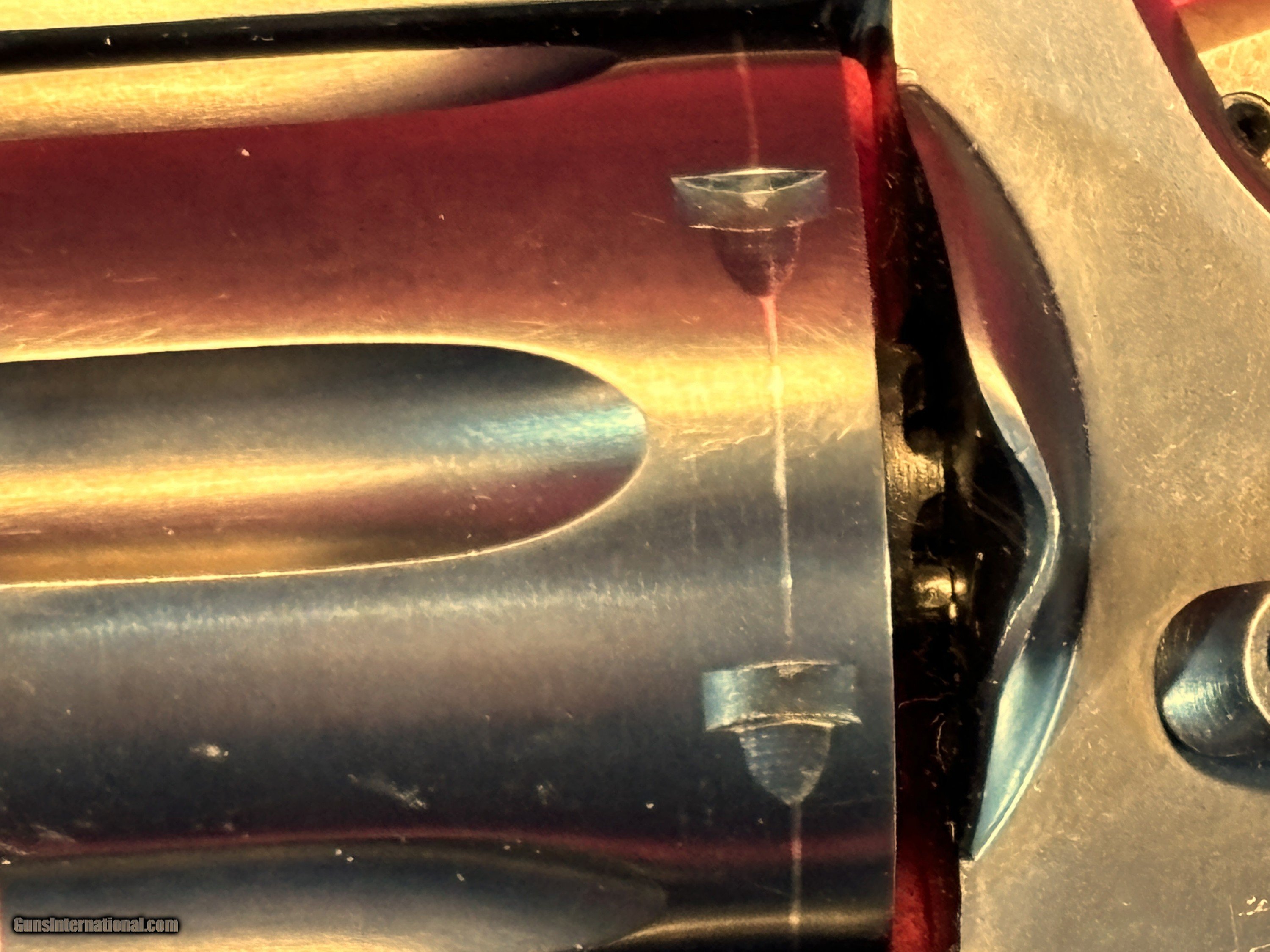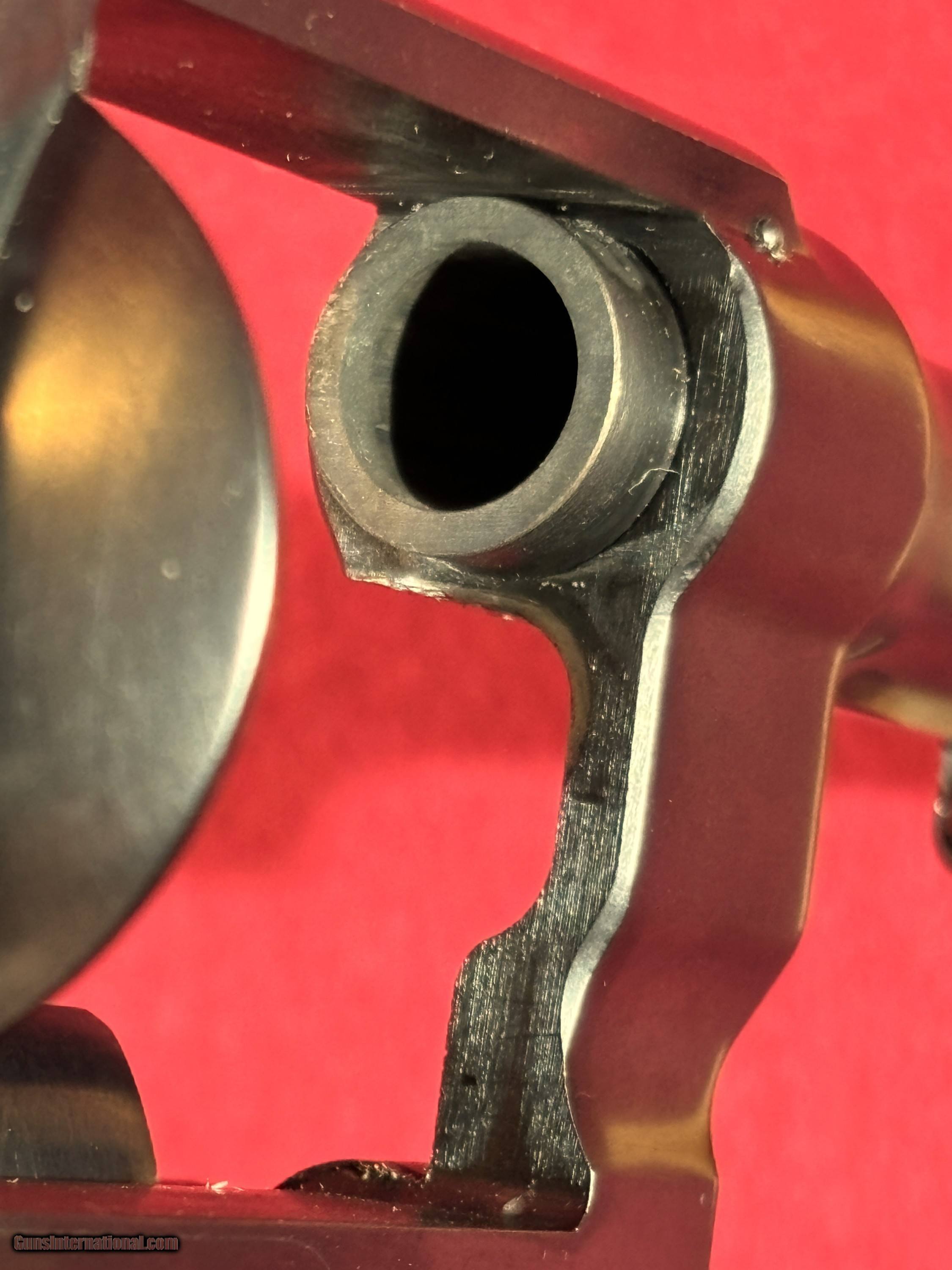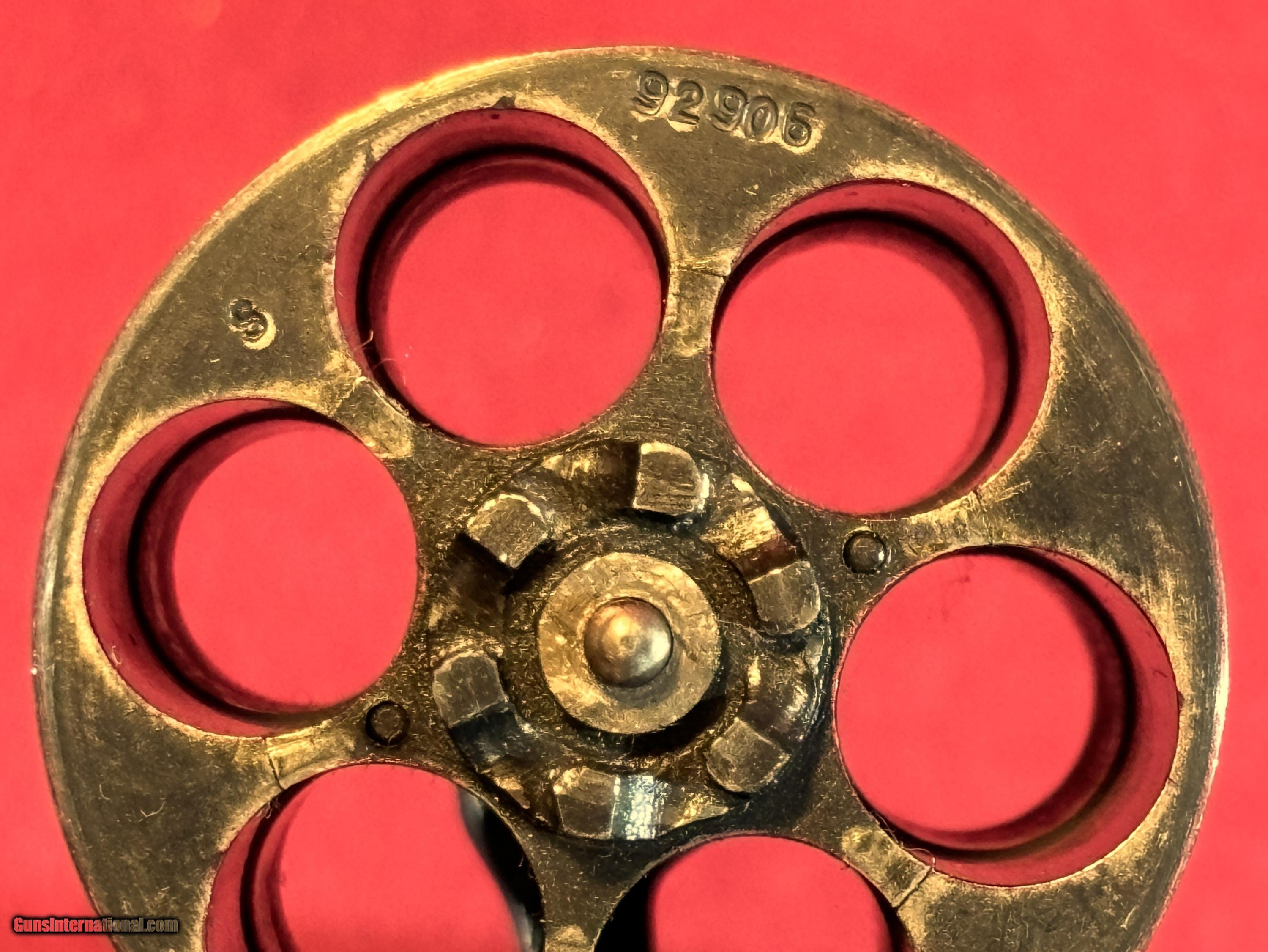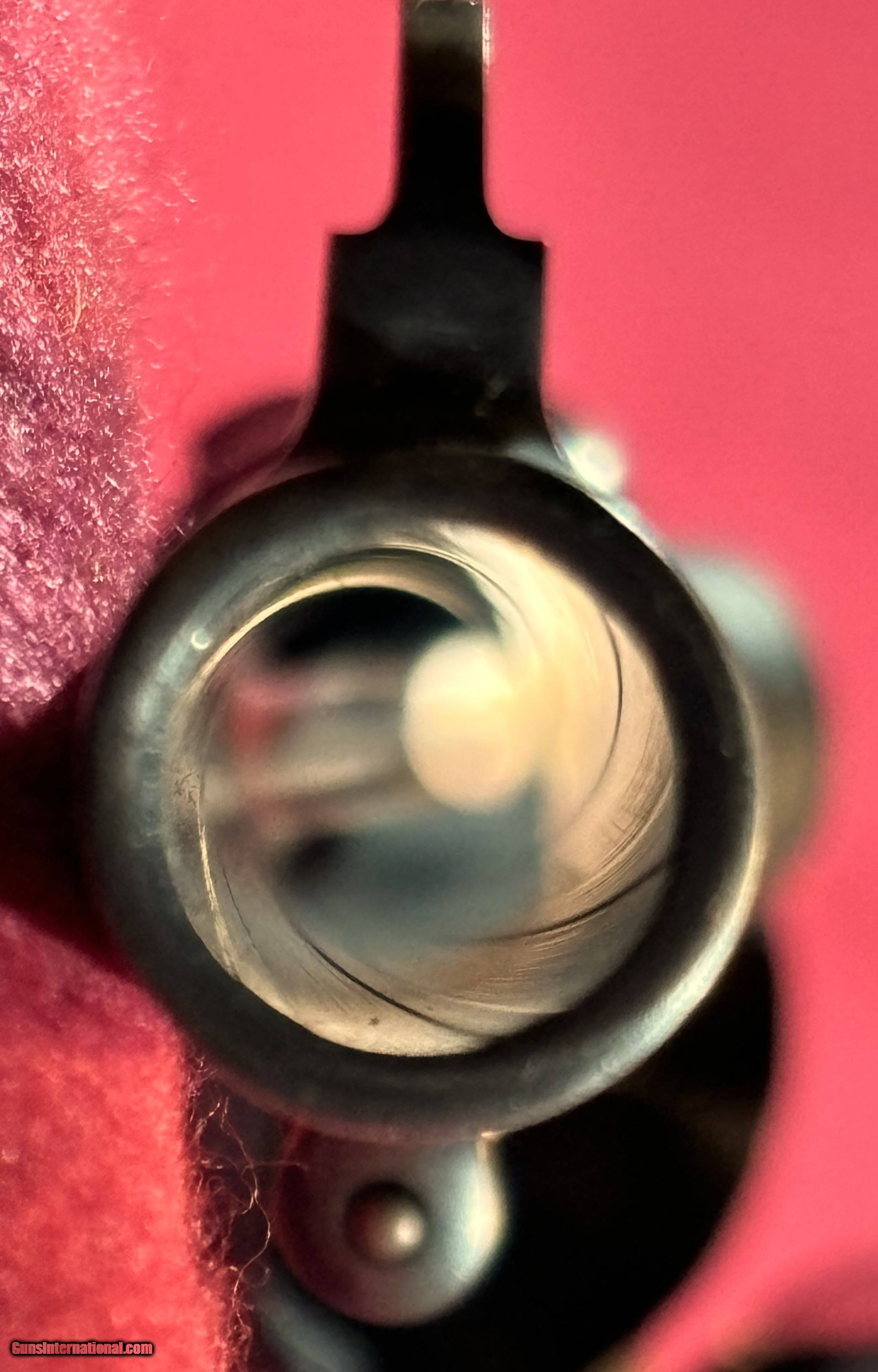 Description: Smith & Wesson 45acp 1950 Army Model Revolver, Pre Model 22, Blue Finish, Square Butt, with 5 1/2 inch Barrel. This one comes with a correct Smith & Wesson Factory Gold box un-numbered. The box contains a cleaning rod and some half moon clips. At first glance the revolver looks new but if you look closely there is some minor wear in certain places. I have tried to highlight it in the photos. These revolvers are getting very difficult to find in original, pristine condition. The grips are original and are numbered to the revolver. This is the best one that I have seen, but I'm sure that there are a few better ones in a collector's safe somewhere. This one was made in 1953 and is chambered in 45acp and uses moon clips or half moon clips. Some are contained in the box with the revolver. If you have a collection of mint, Gold box guns, don't pass this one up. Buyer pays shipping and insurance. TERMS – PLEASE READ; PAYMENT - I can accept money orders, cashier’s checks, bank checks, or personal checks (pending verification of funds). Payments via USPS & UPS are acceptable. My FFL dealer (Dixie Gun & Fish) securely packs and ships each firearm, following all firearms laws, and will include a signed copy of their FFL with each firearm shipped. No private sales on firearms! SAFETY WARNING- Buyer is solely responsible for determining that a used gun is safe to shoot. The firearms offered may or may not have been test fired and some have been only visually inspected. It is a requirement that every used firearm is inspected by a qualified gunsmith before firing. The buyer agrees to hold seller harmless against damages, injury, or death caused by defective merchandise. RETURN POLICY- All firearms come with a 3-day non firing, no-tinkering with (turning screws, taking apart, removing parts, scoping. firing, cleaning or altering in any way) inspection/return privilege. Inspection is based on a visual review of the firearm to confirm that it is in the condition stated. In the case of a return, the buyer pays all shipping charges. Please ask questions. I appreciate your interest, and I thank you for your consideration. SOLD Curio/Relic: Yes Handgun Caliber: .45 ACP (.45 Auto) Manufacturer: Smith & Wesson Model: 1950 Army Model Serial Number: S +92906 Barrel Length: 5 1/2 inches Condition: Excellent Metal Condition: Excellent Wood Condition: Excellent Bore Condition: Excellent Action: Double Action Revolver Finish: Blue Sights: Fixed Manufacture Date: 1953 Extras: Correct Gold Box |