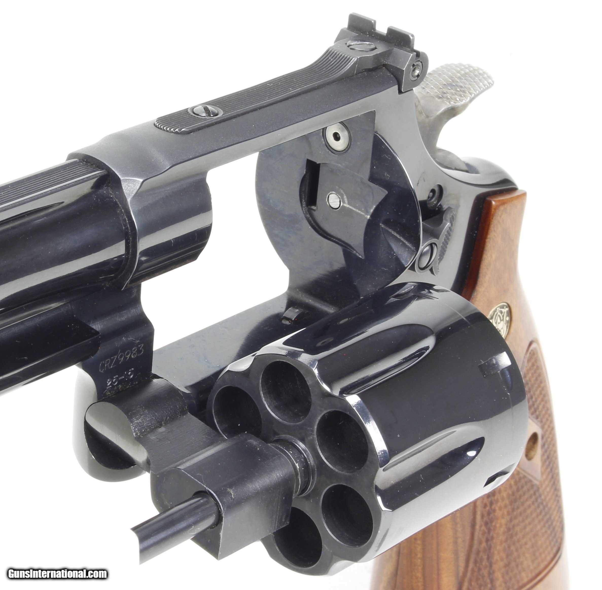 Description: S&W Model 25-15 in .45 Colt. SN #CRZ9983. Mfg. in 2015. 6 1/2" barrel. 6 shot cylinder. Bore is As New as gun appears unfired other than testing.Blued metal and the fine Walnut grips are rated 99%. Very light turn ring on cylinder. Comes in the original box with Hammer Key and some paperwork. Very sharp all-around. SOLD Manufacturer: Smith & Wesson Model: 25-15 Serial Number: CRZ9983. Caliber Info: .45 Colt Bore: Excellent Condition: Excellent Barrels: 6 1/2 |