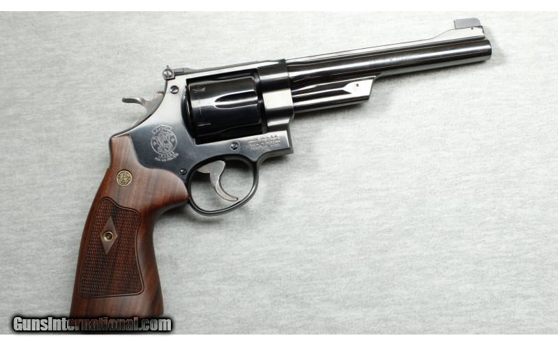 Description: Excellent condition, few light wear and handling marks, comes with hard case. Classic S&W revolver, 6 1/2" barrel with shrouded ejector, polished blue finish, 6 shot fluted cylinder, adjustable sights, wide target trigger and hammer, checkered hammer & cylinder latch and S&W checkered wood target grips. .45 Colt SOLD Chambers: Revolver Metal Condition: Excellent Bore Condition: Bright Barrels: 6 1/2 Triggers: Double and single action Butt Pad: Wood grips Sights: "Adjustable rear, blade front sights Item Location: La Vista, NE |
