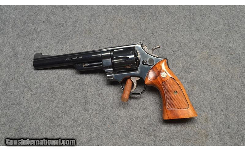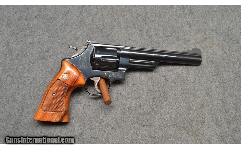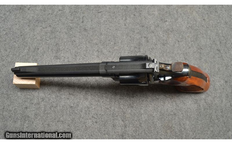Description: This revolver is a Smith & Wesson Model 25-2 chambered for .45 Auto. It has a ramp front sight and checkered wooden grips. This firearm is in good condition overall, with some light surface wear and some light pitting in the barrel. It comes with the original factory paperwork. .45 Auto SOLD Metal Condition: "Good, light surface scratches from use Wood Condition: "Good, some light scratches and scuffs Bore Condition: "Some light pitting, but rifling is still very visible Barrels: 6 1/2" Polished blue Fore End: Checkered wooden grips Weight: 3lbs Sights: Ramp front sight Item Location: Wichita, KS |