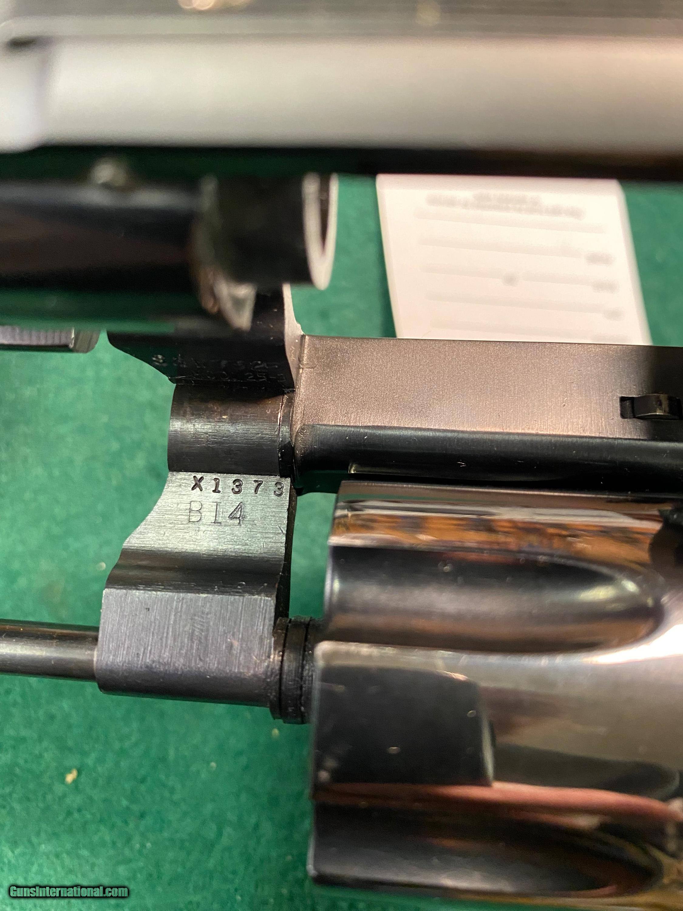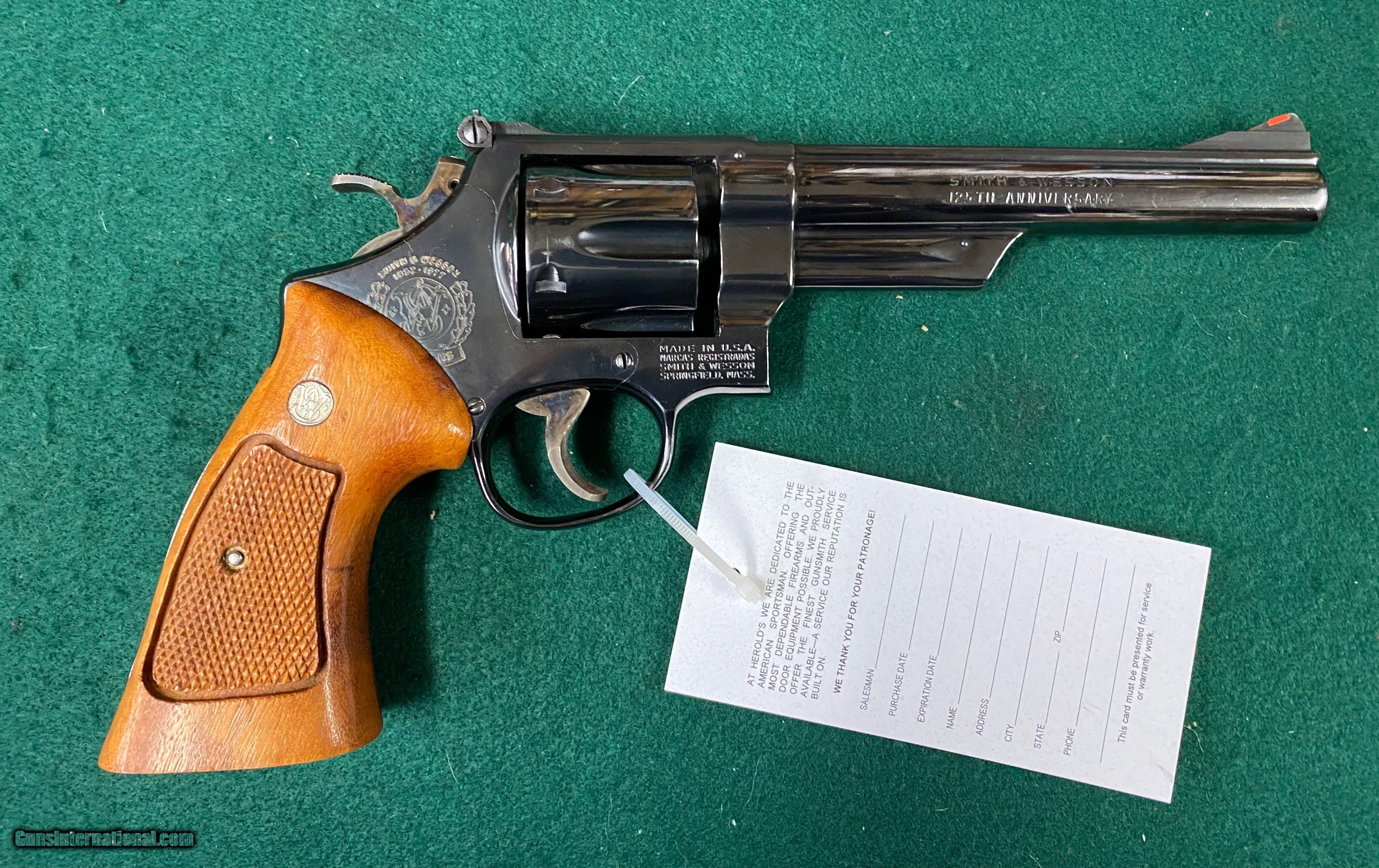 Description: This time we have a Smith & Wesson Model 25-3 revolver in .45 Colt w/a 6 1/2" barrel in VG/EXC condition. This is an anniversary model with the year stamped into the right side of the frame & "125th anniversary" on the right side of the barrel. Please see pics for more details. We reserve the right to sell this item at our retail location until an offer is placed on Guns International. $1295 + $30 shipping. Credit cards are accepted w/a 4% fee. Personal checks are also welcome, however we do not ship the item until your check clears our bank. Business hours are Tuesday through Saturday, 9 AM to 5 PM. Closed on Sunday and Monday. We are a brick and mortar store in business at the same location for more than two decades. If you're in the Waynesboro, PA area, stop on by and see our wide selection of vintage and modern firearms at George Herold's Gun Shoppe. We look forward to seeing you! SOLD Handgun Caliber: .45 Colt Manufacturer: Smith & Wesson Model: 25-3 Serial Number: S8W7325 Barrel Length: 6 1/2” Condition: VG/EXC |
