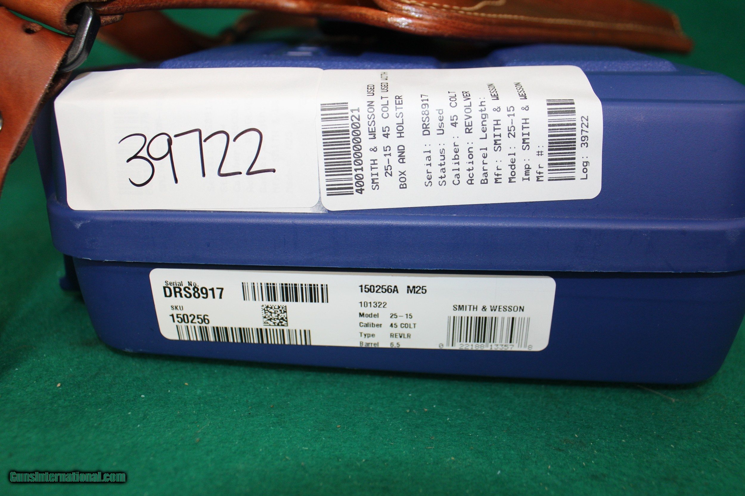 Description: Smith & Wesson Model 25 Classic DA/SA Revolver 6.5″ 6RDS 45LC in box. Inluded is a Galco leather holster model GA128. Selling as used in very good condition. Specifications: MANUFACTURER: Smith and Wesson FAMILY: 25 Series MODEL: 25 Classic TYPE: Revolver ACTION: Double / Single Action CALIBER/GAUGE: 45 Colt FINISH: Blue FRAME: Steel Frame STOCK/GRIPS: Wood BARREL: 6.5″ OVERALL LENGTH: 12″ CAPACITY: 6 SIGHTS: Adjustable WEIGHT: 45 oz. SHIPPING WEIGHT: 4.6 lbs. CASE: Plastic MFG MODEL NO: 150256 UPC: 022188133578 What’s in the Box