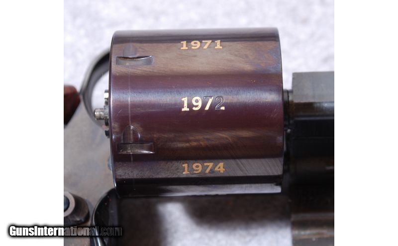 Description: Nice collector, new in wood display case. we have this priced as a shooter even though it's unfired it is missing some gold leaf on the cylinder 1972 (see pictures) .45 Colt SOLD Chambers: 6-shot revolver Metal Condition: Very Good Wood Condition: Very Good Barrels: 8.375 Triggers: Factory Sights: Red ramp front, micrometer click rear. Item Location: Rapid City, SD |
