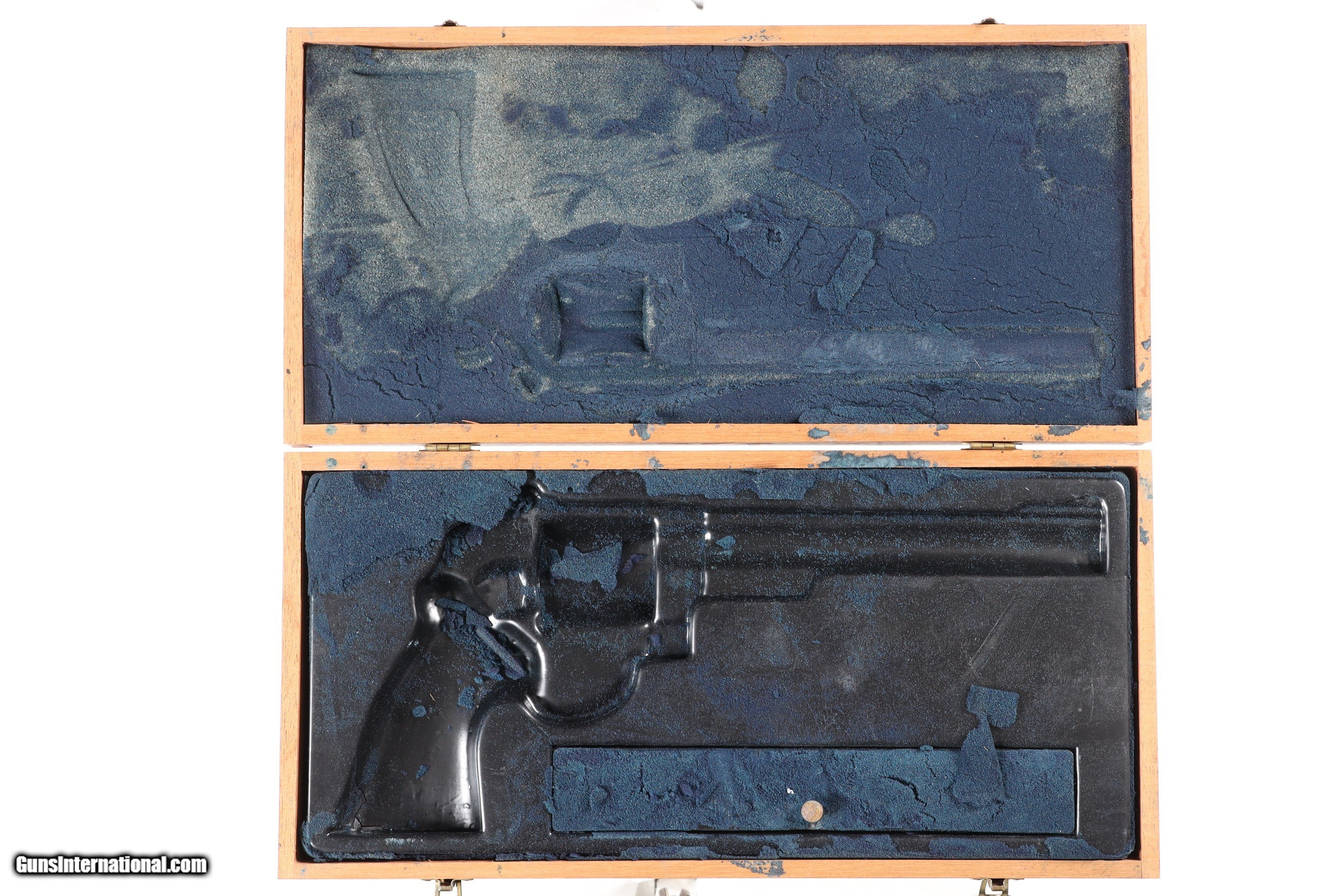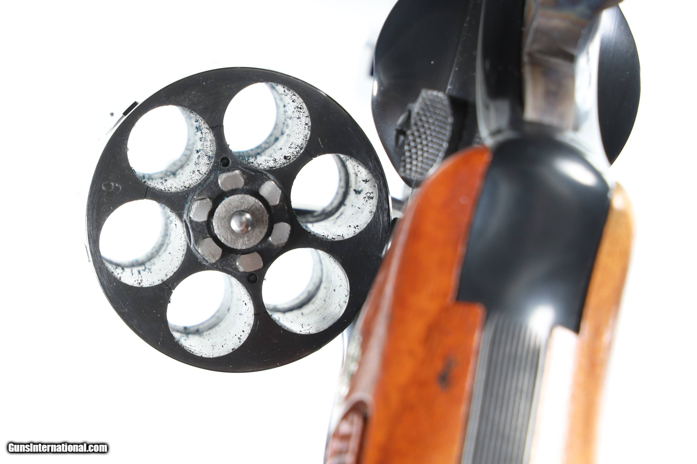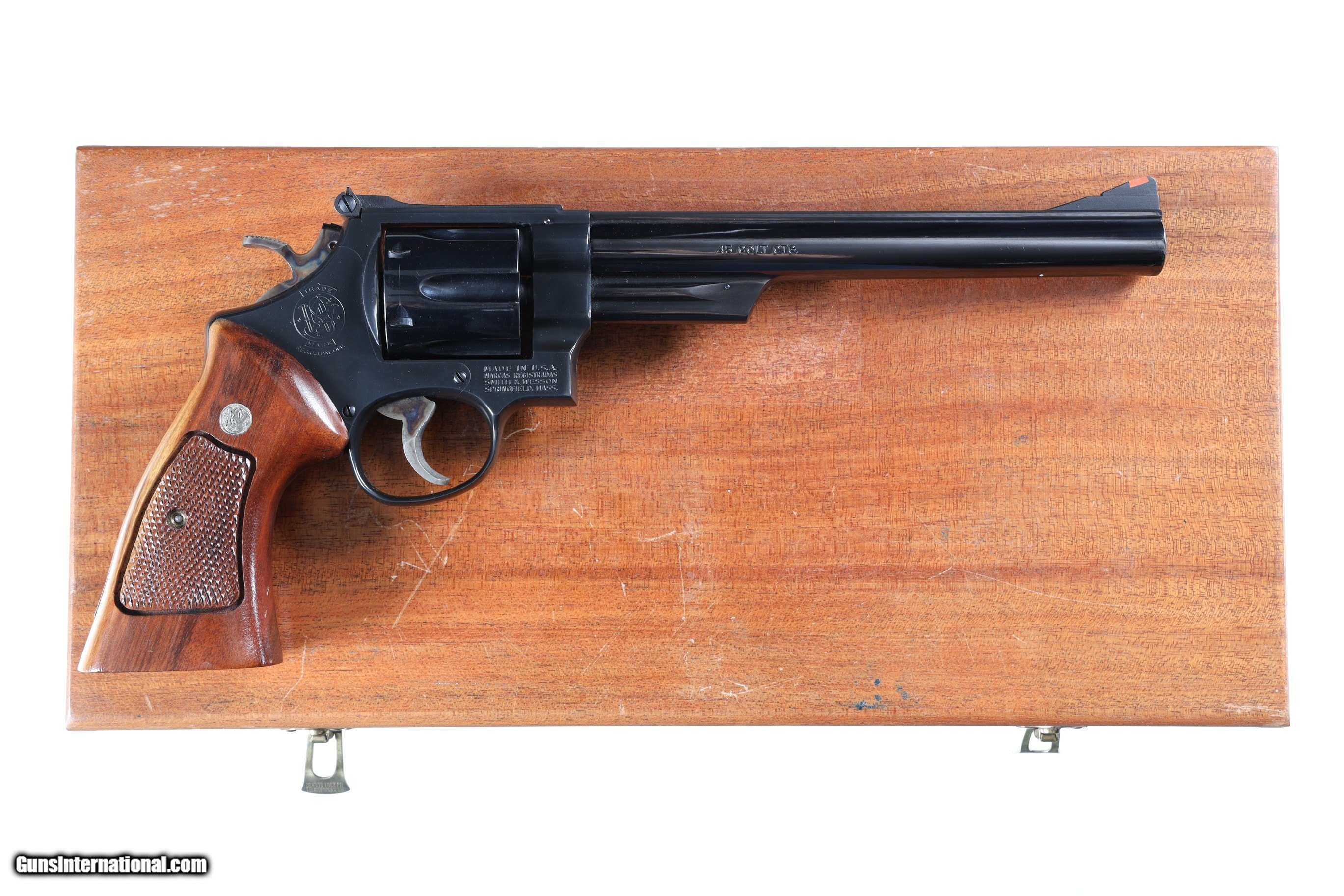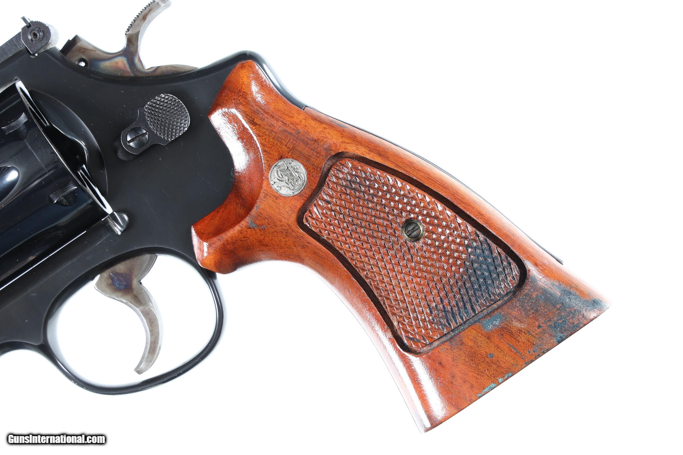 Description: Metal surfaces rate excellent, left grip panel displaying staining from deteriorating display box interior. Manufactured in 1979/80. With factory hardwood case (lining deteriorated). • Free Shipping, No Credit Card Fees. • Lay-a-way available for this firearm. • 1/3 Down, a 1/3 in 30 Days, 1/3 in 60 Days. SOLD Manufacturer: Smith & Wesson Model: 25-5 Serial Number: N677388 Barrel Length: 8 3/8 |