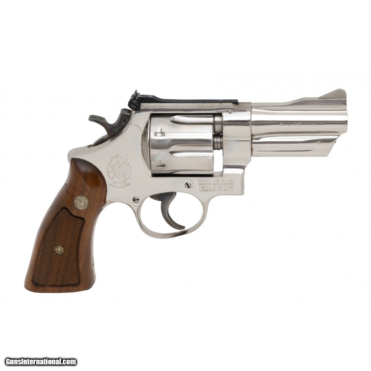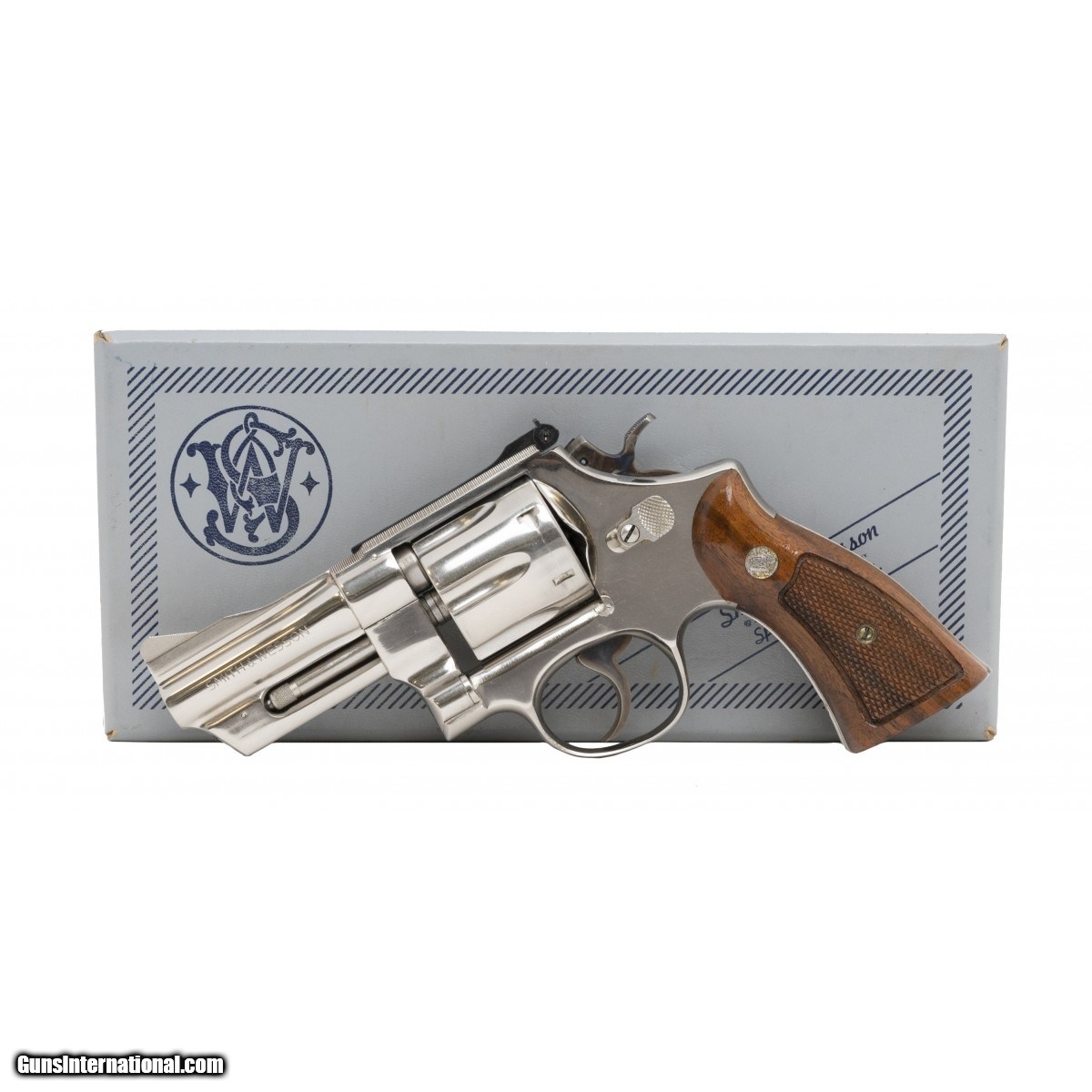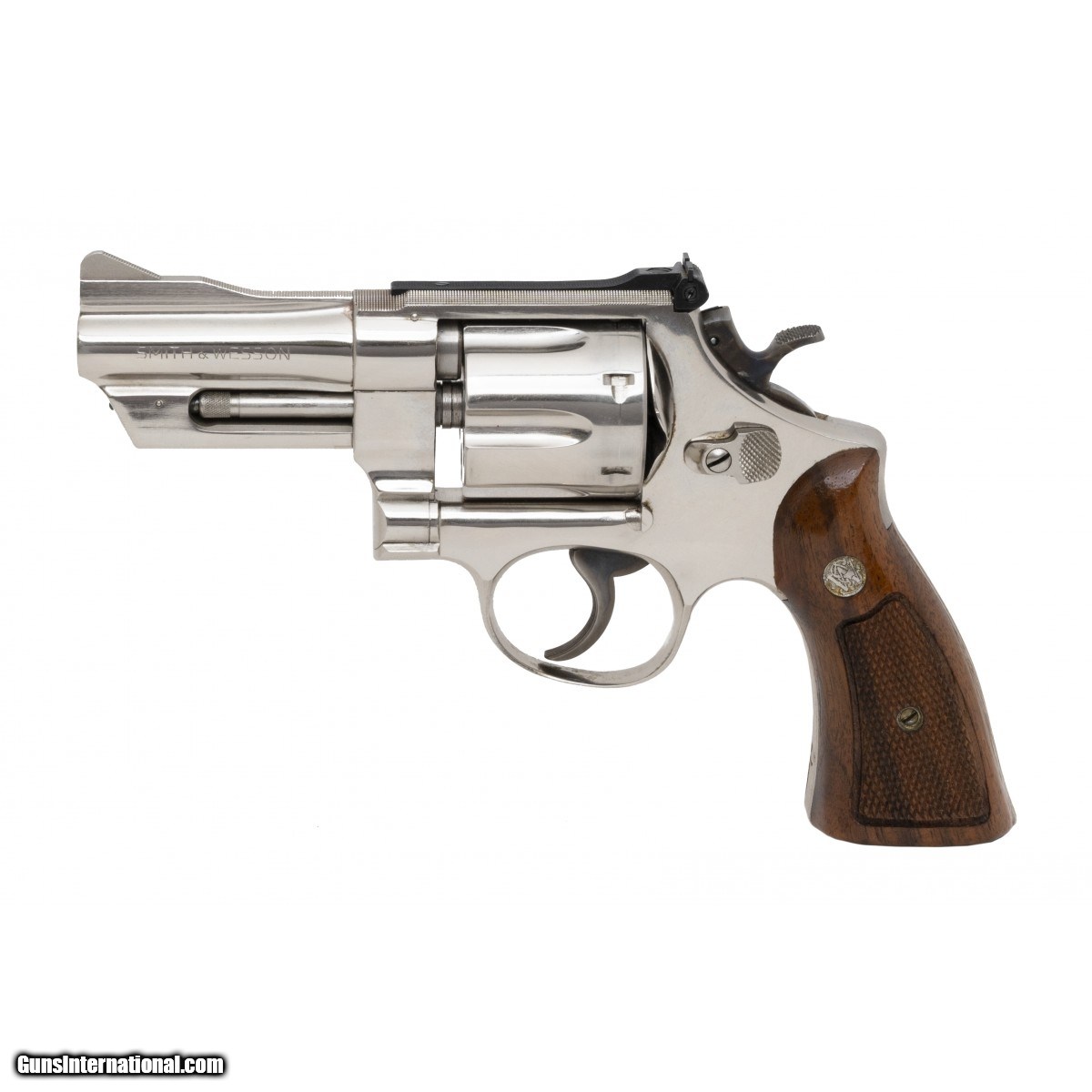 Very desirable 3.5"" nickel model, with pinned barrel and recessed cylinder. Early 1970's vintage. Excellent condition with original box. A beautiful S&W N-frame revolver.