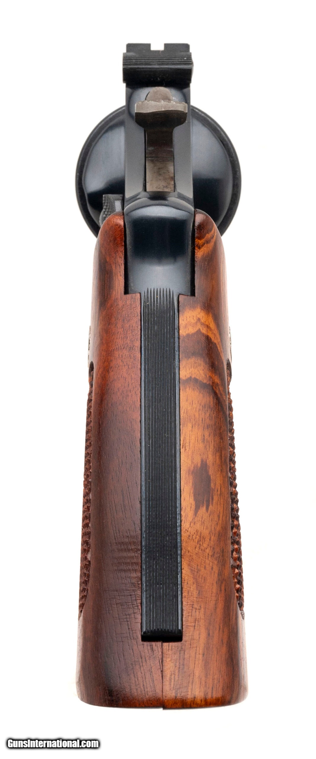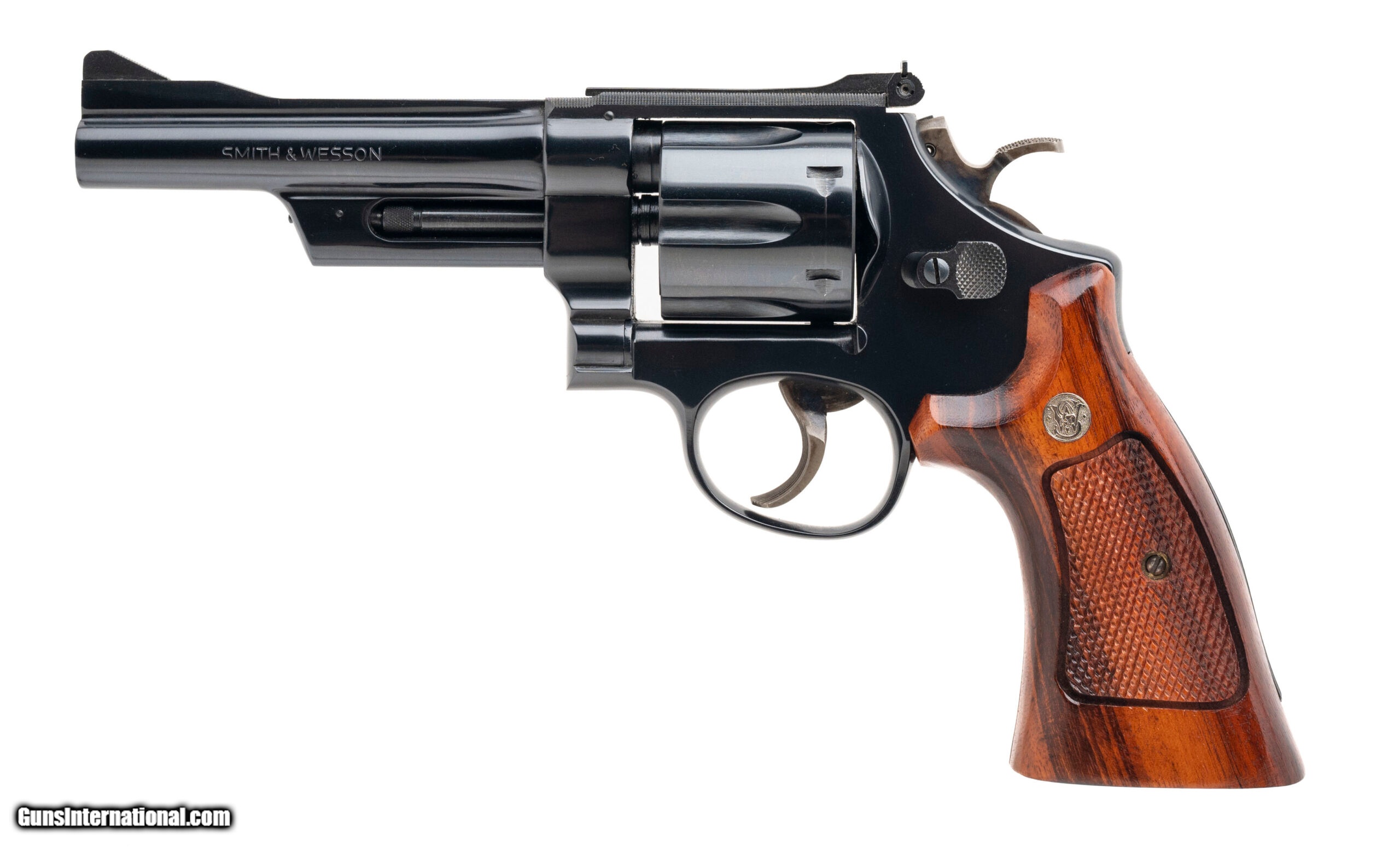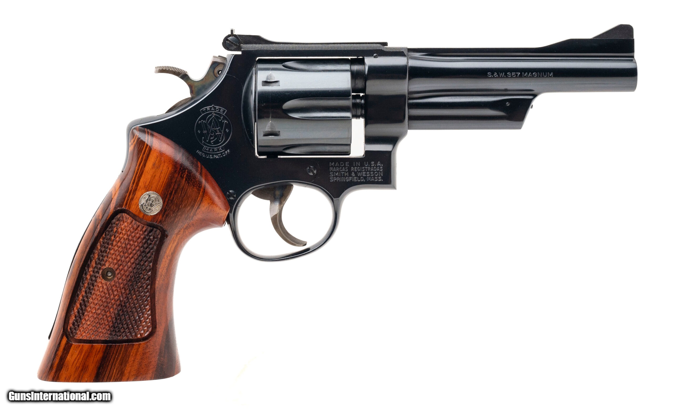 Description: "SN: N494014. 1970's vintage .357 Mag with a 5"" barrel. N frame revolver with blued finish, target grips, pinned barrel and recessed cylinder. Very desirable 5"" model, in excellent condition. SOLD |