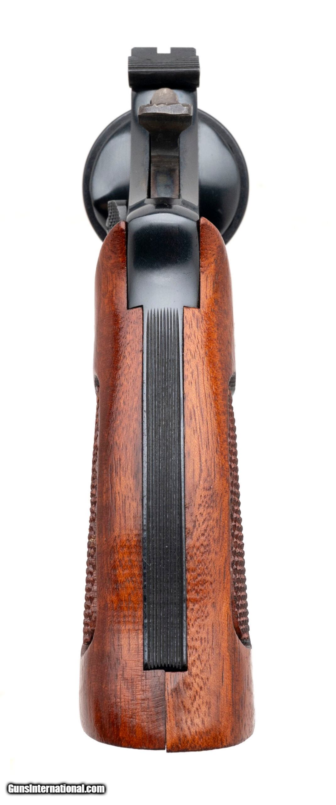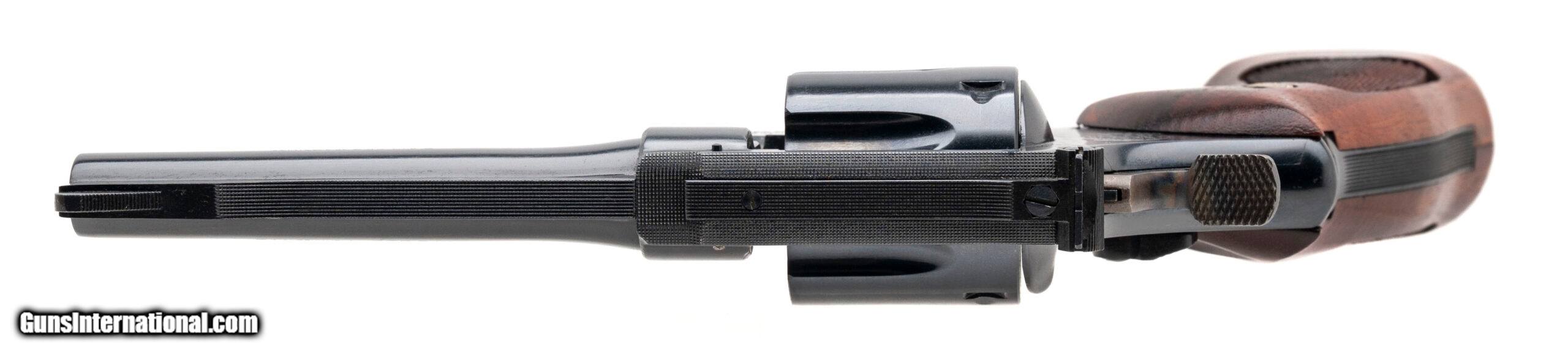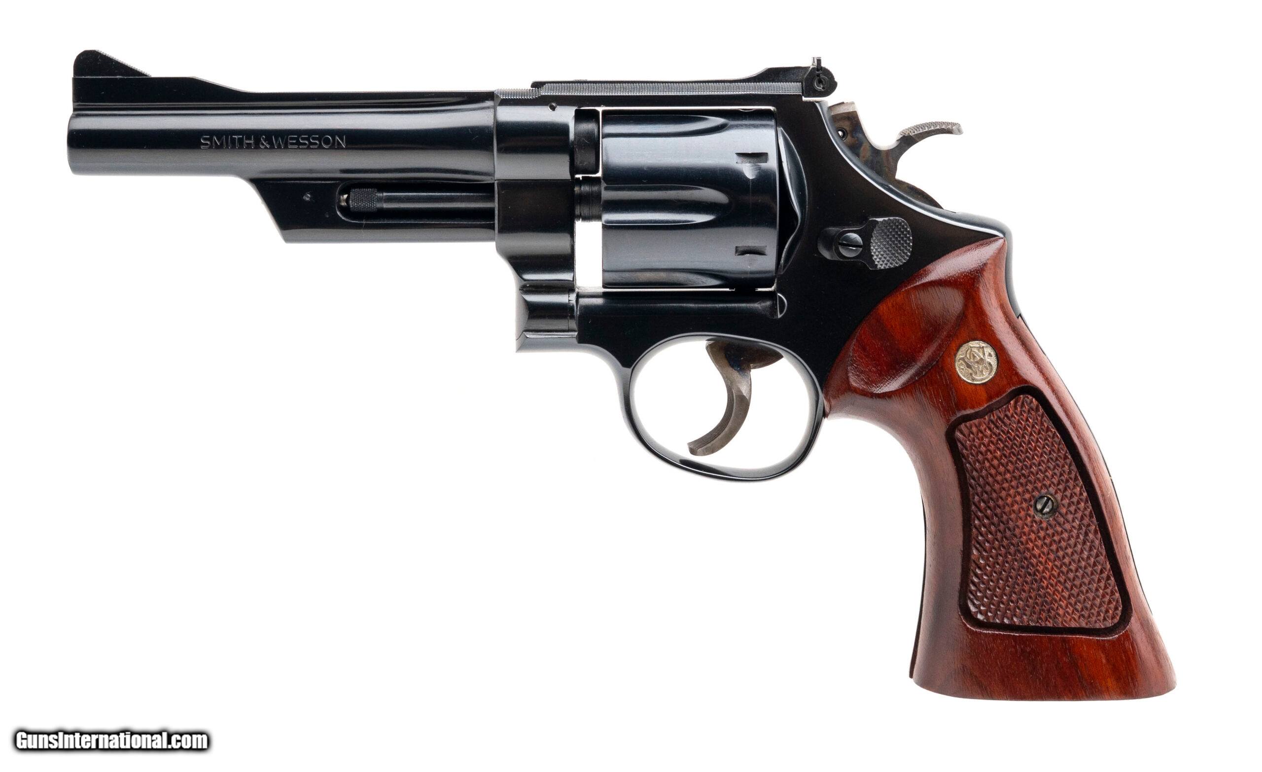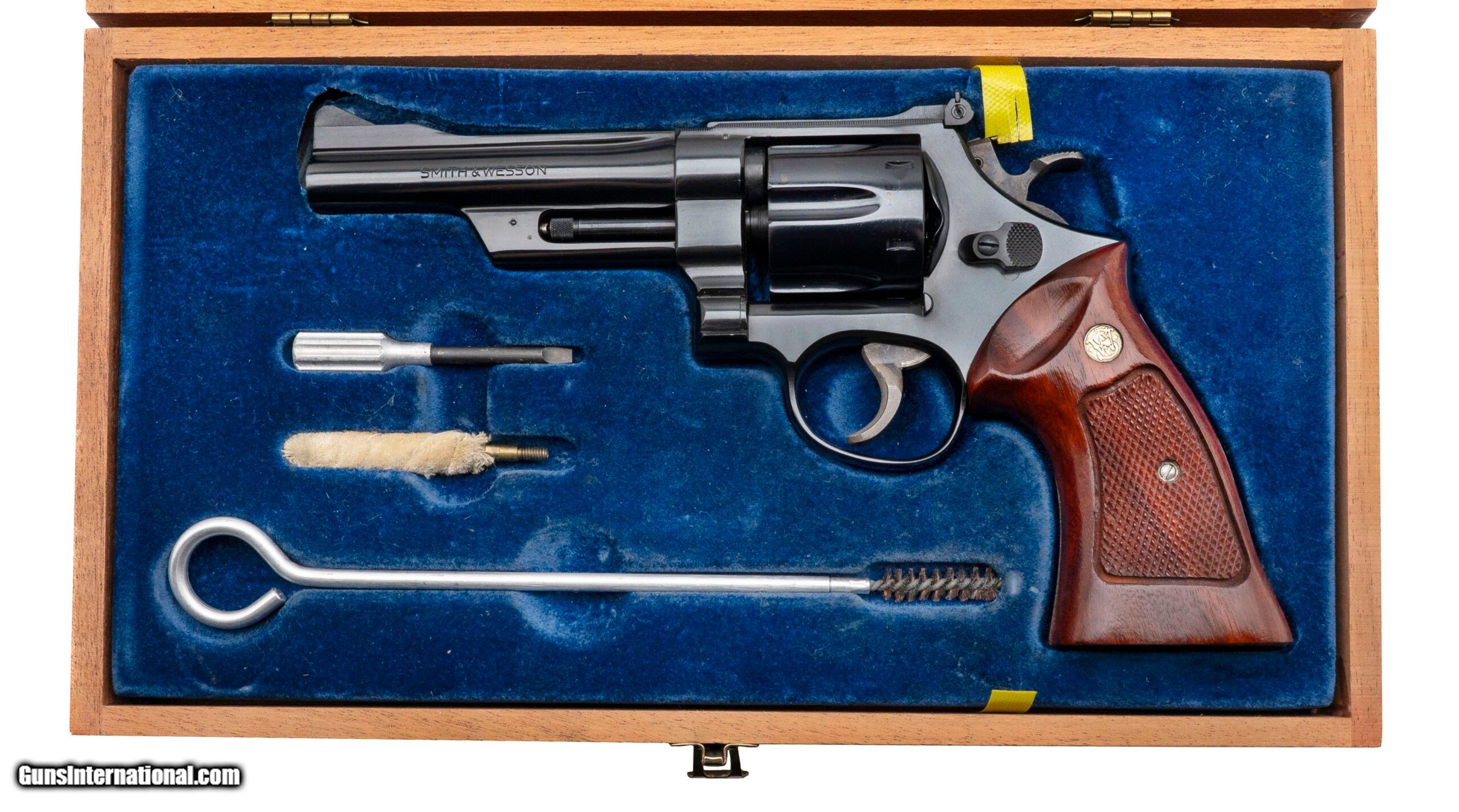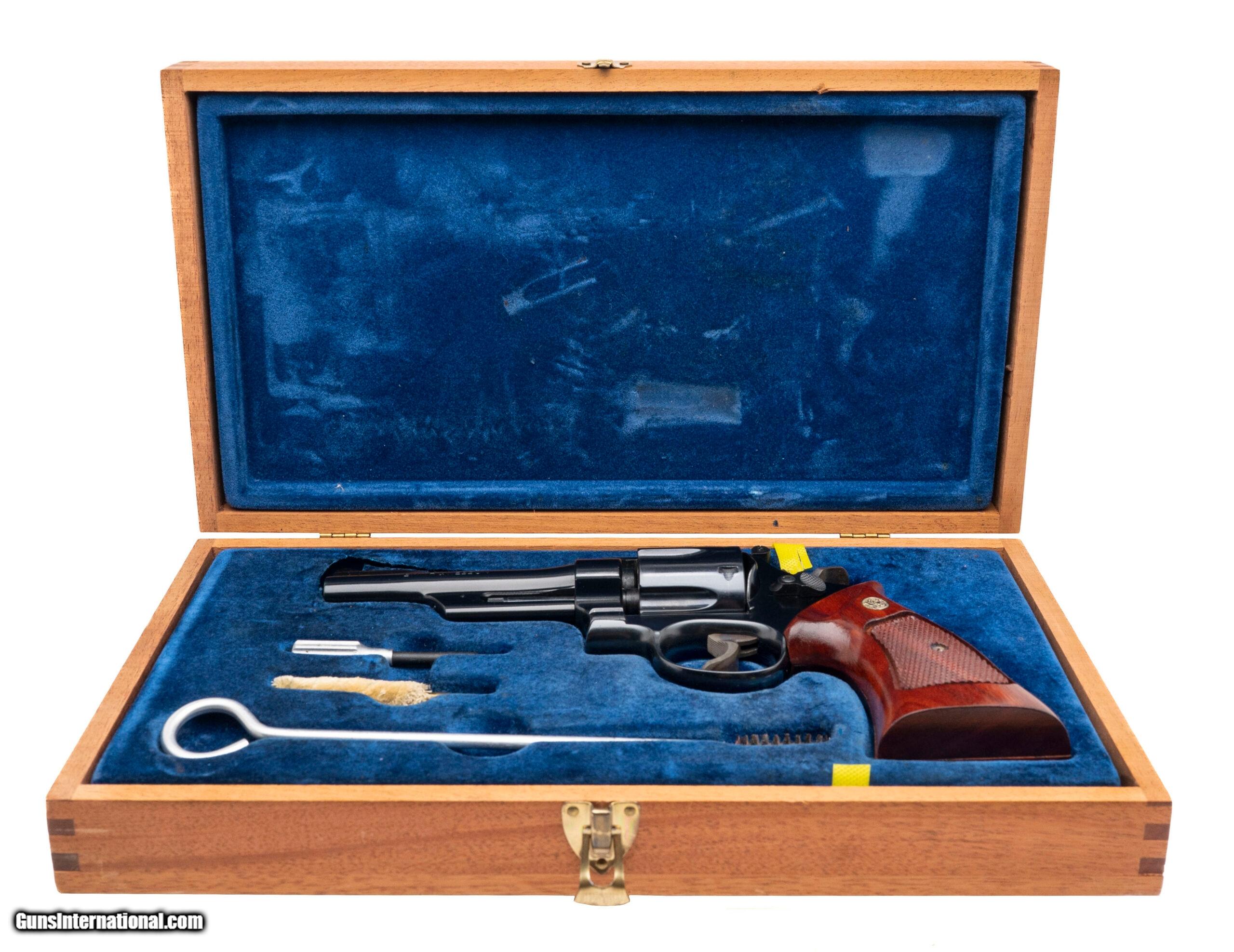 Description: "SN: N349770. Made in 1976, .357 Magnum with a 5"" barrel. Bore is bright with strong rifling. Desirable N-frame revolver, pinned and recessed with checkered wood grips. Overall condition is excellent. Comes with presentation case w/blue liner, tools, and manual. SOLD |