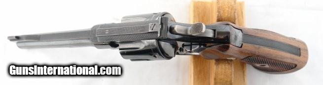 Description: 1958 SMITH & WESSON MODEL 27 (PRE DASH) FOUR SCREW .357 MAGNUM 5" BLUE REVOLVER. Serial number "S185XXX" and all matching except grips which are "coke bottle" shaped S&W medallion wood grips for a larger hand(look great and fit nicely "Eagle Grips"). Four screw N target frame(5th screw eliminated in 1955). Screws excellent. Original factory blue 90% plus with barrel having been professionally reblued. Traces of case color on trigger and hammer. Correct checkering crisp on top-strap and barrel rib. Factory adjustable rear sight, Mint bore, rifling and chambers. Crisp action, tight lock-up and indexing. SOLD Curio/Relic: Yes |