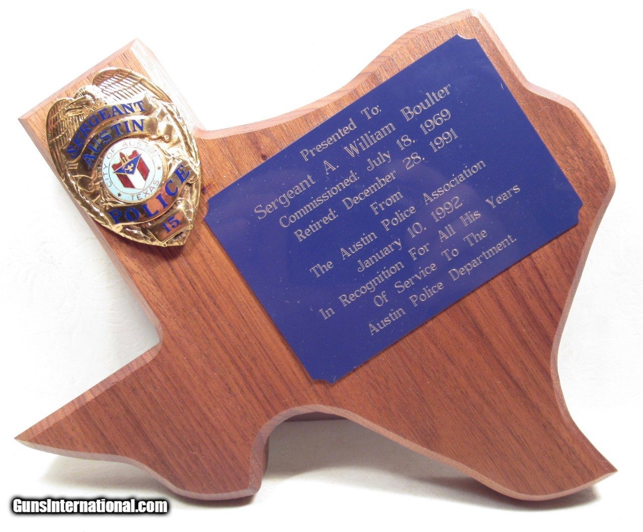 AUSTIN POLICE DEPT. ISSUED SMITH & WESSON MODEL 27-2 REVOLVER from COLLECTING TEXAS - .357 MAGNUM – RETIREMENT PLAQUE with BADGE INCLUDED