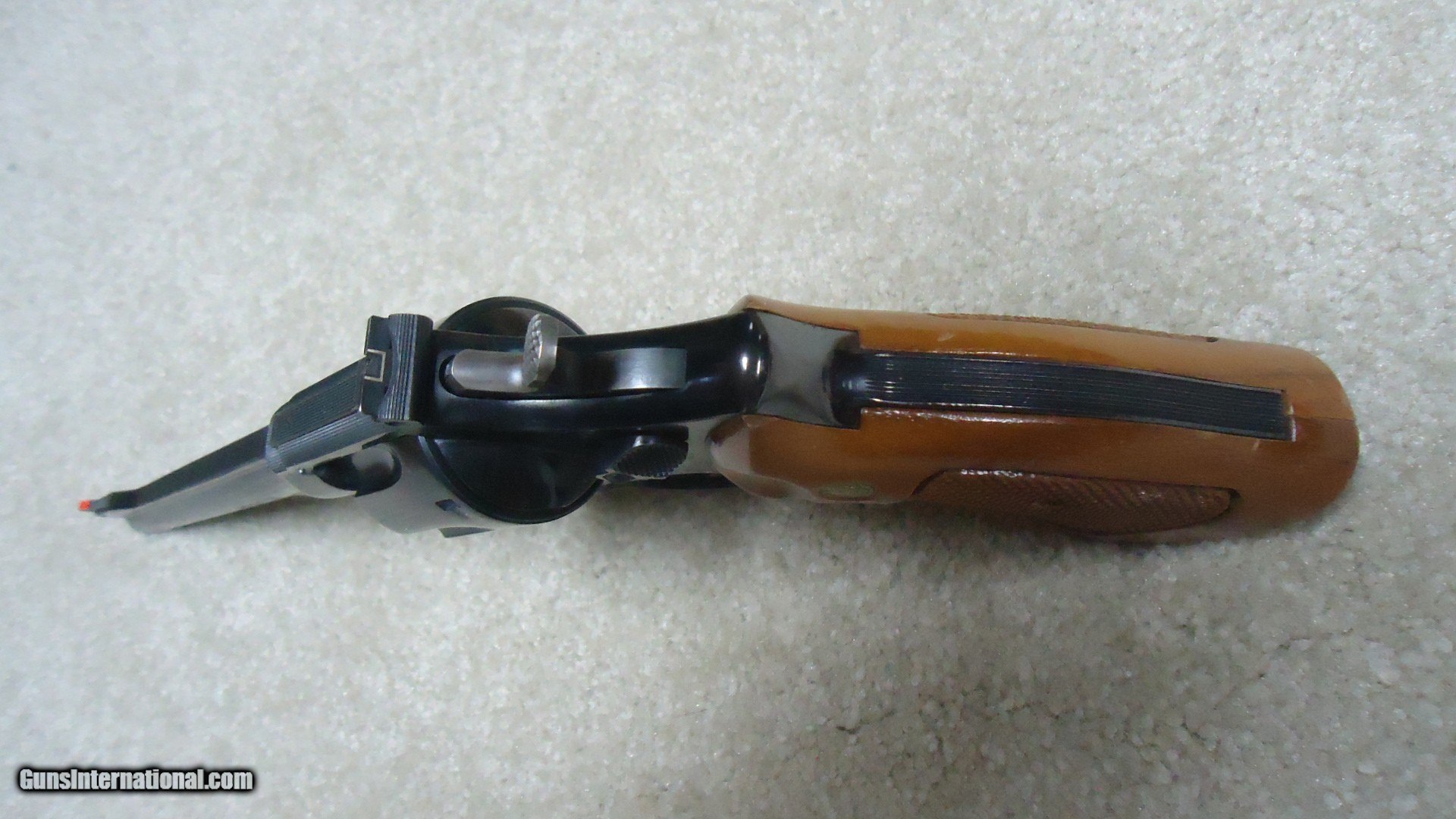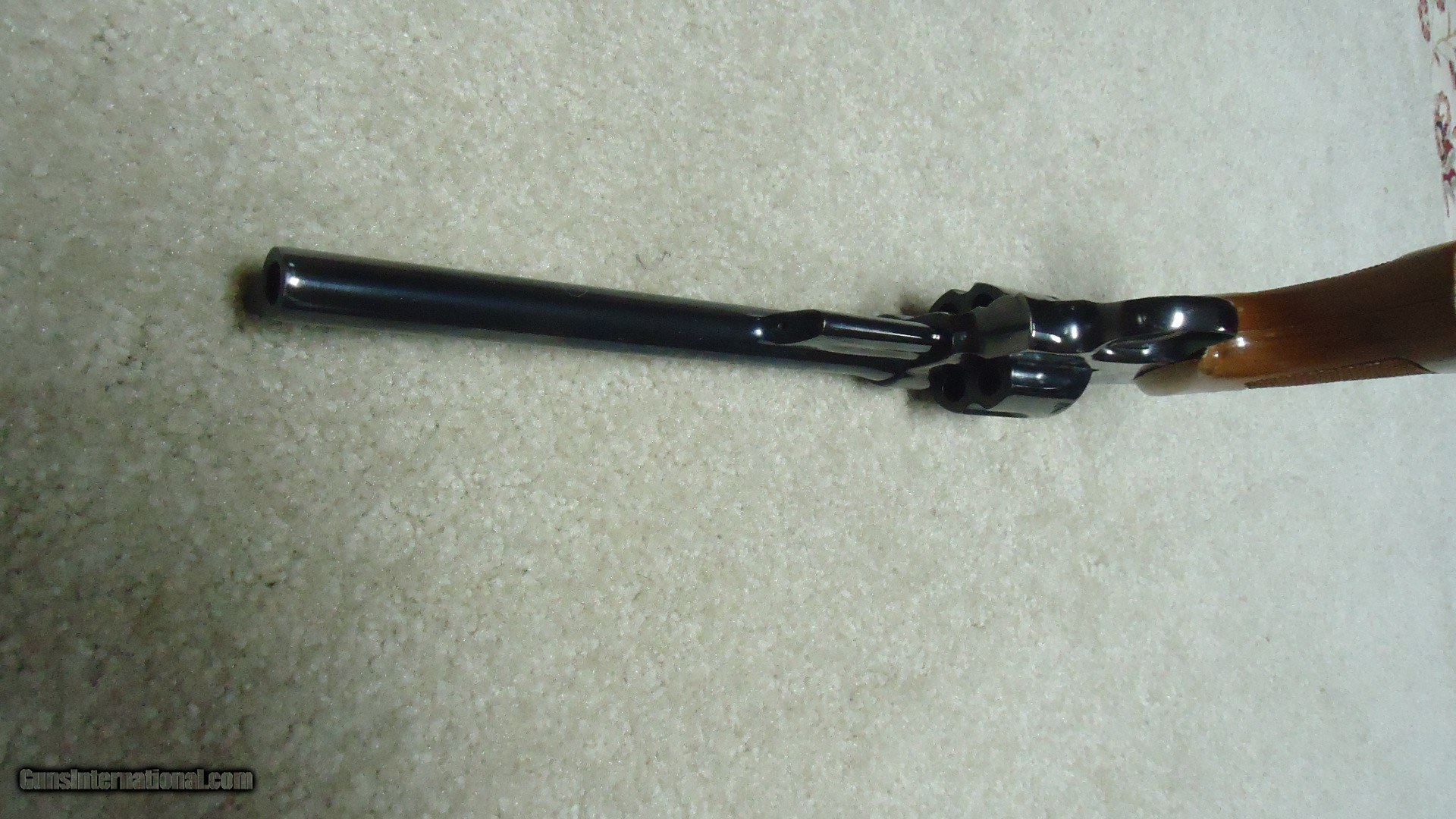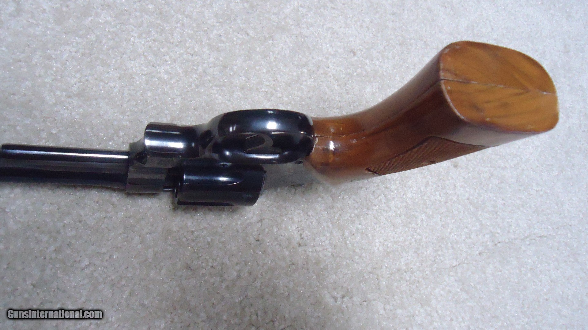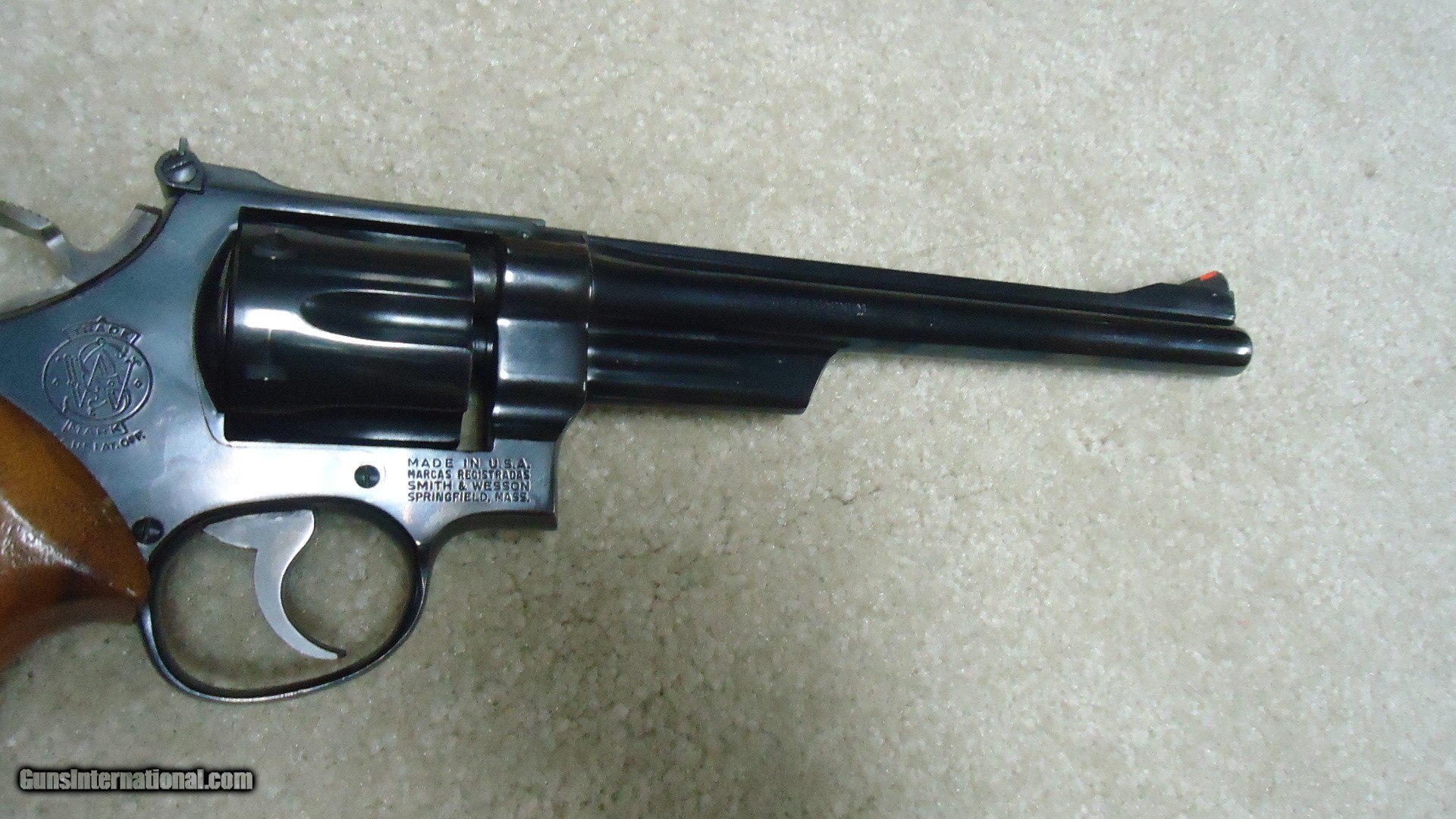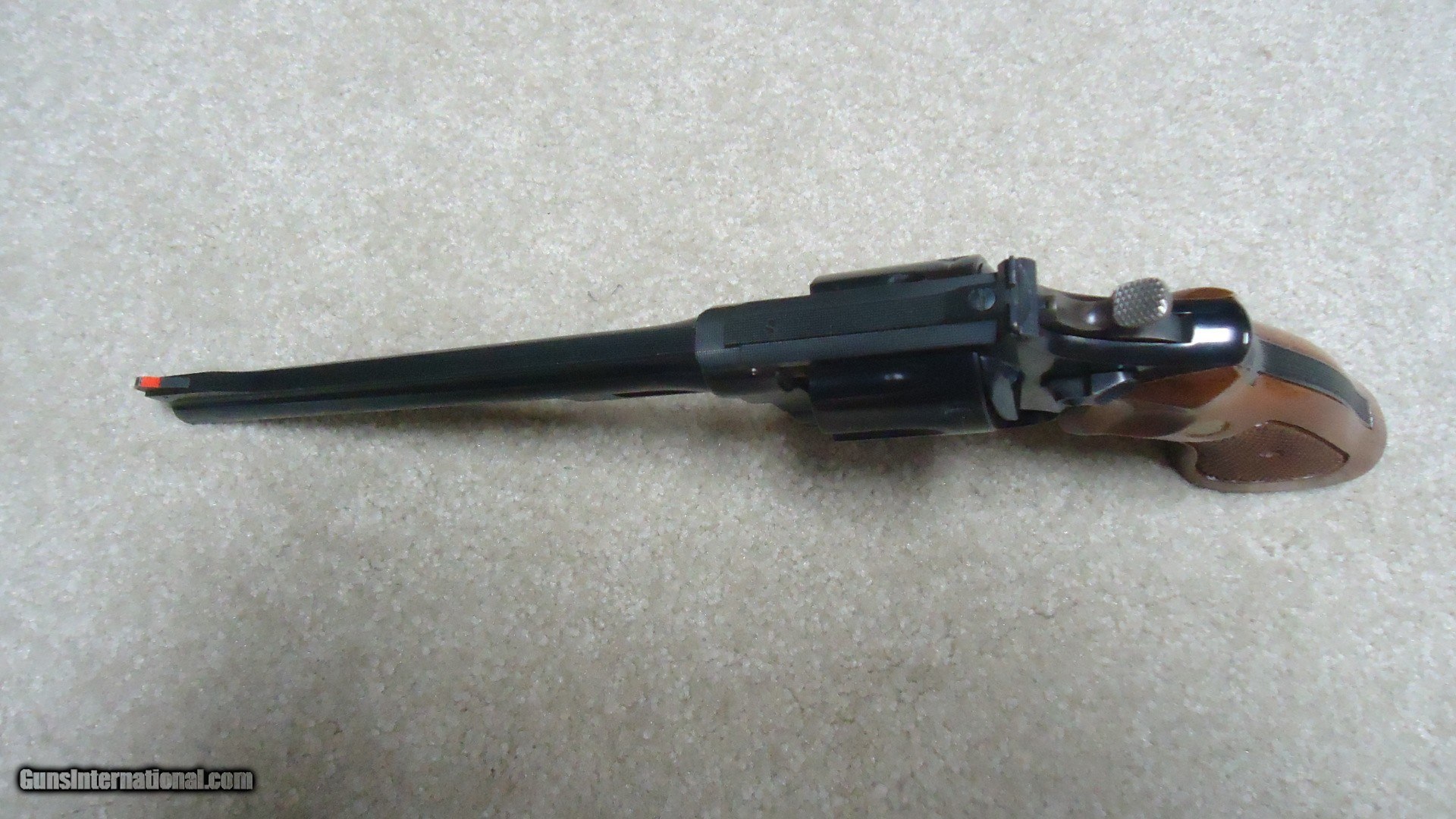 Description: CLASSIC SMITH & WESSON MODEL 27-2 .357 MAGNUM WITH 8 3/8" BARREL, #N214XXX, MADE 1975-1977. Superb 1970s quality inside and out. Pinned barrel and recessed chamberd cylinder. Excellent blue with case colored hammer and trigger. Factory red insert front sight with white outline rear sight. Aside from a couple of minute scratches on the left side of the barrel, this one has seen very light/limited use and barely shows a cylinder line in the blue. Tight action, crisp 1970s S&W trigger pull. They don't make them like this anymore! Desirable long barrel. SOLD Handgun Caliber: .357 Magnum Manufacturer: SMITH & WESSON Model: model 27-2 Serial Number: N214XXX Barrel Length: 8 3/8 Condition: EXCELLENT Bore Condition: EXCELLENT |