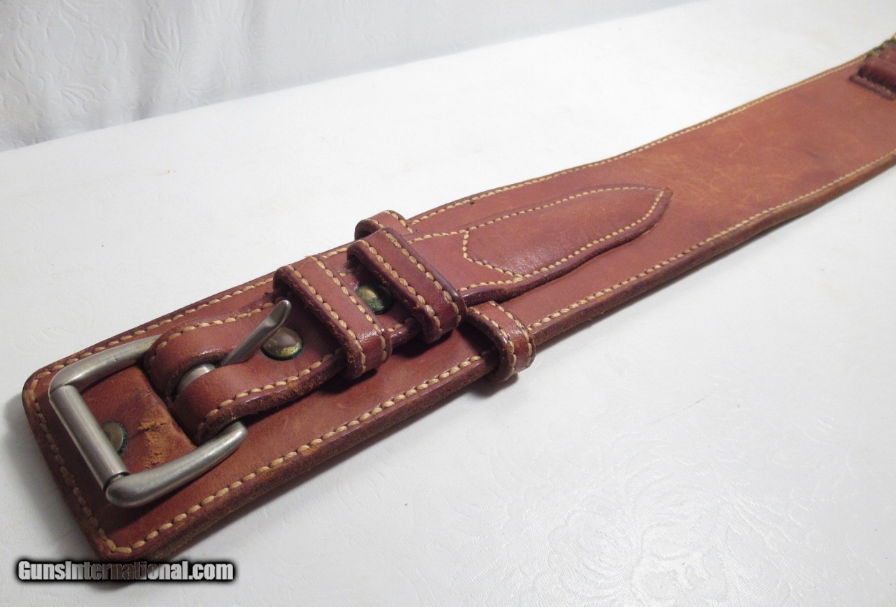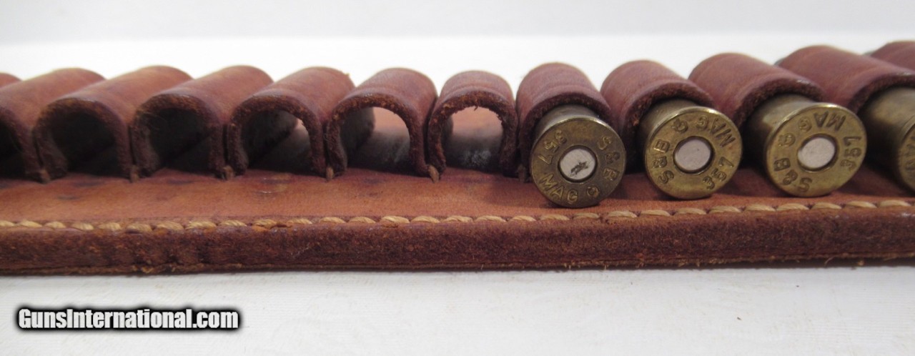 Description: SOLD--Really Nice Heavy Duty Cartridge Belt Made in Kingsville, Texas at the King Ranch Saddlery; 24 Loops for 357 Mag. Or .38 Special Cartridges; 47” Length Overall; 44” to Last Hole; 2 3/8” Wide; Most Likely Made for One of the King Ranch Rangers whom Worked Security at the Ranch; See All Photos for Condition; No Texts. Call or Email Only; PERSONAL PROPERTY of Harold Wieser; Price: $875 + $45 S&H Via FedEx Express; Price includes insured shipping; return policy: three days inspection from the date the item is received; full refund of shipping both ways ONLY IF THE ITEM IS MISREPRESENTED. SOLD Manufacturer: King Ranch Model: Cartridge Belt |