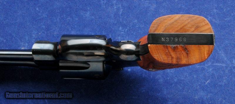 Description: So here I am once again taking pics of a revolver that I would love to buy myself! If only I could have them al! About as nice as you will find outside of the box, here is a S&W 27-2 with the 3 1/2" barrel. I love the balance of these big N frames with the short barrels. Power in a package I call it. It wears the original Magna grips. No box or papers. Check the pics yourself. This one has been shot, but very, very little with a really slight turn line on the cylinder. No visible wear on the grips, checkering is nice and sharp. Gun is in overall 98-99% condition, bore is mint. Would be a beautiful carry piece in something like an El Paso Saddlery Tom Threepersons holster. Not cheap, but you get what you pay for in this world! $35 shiiping to the lower 48, 3% surcharge for CC. SOLD |