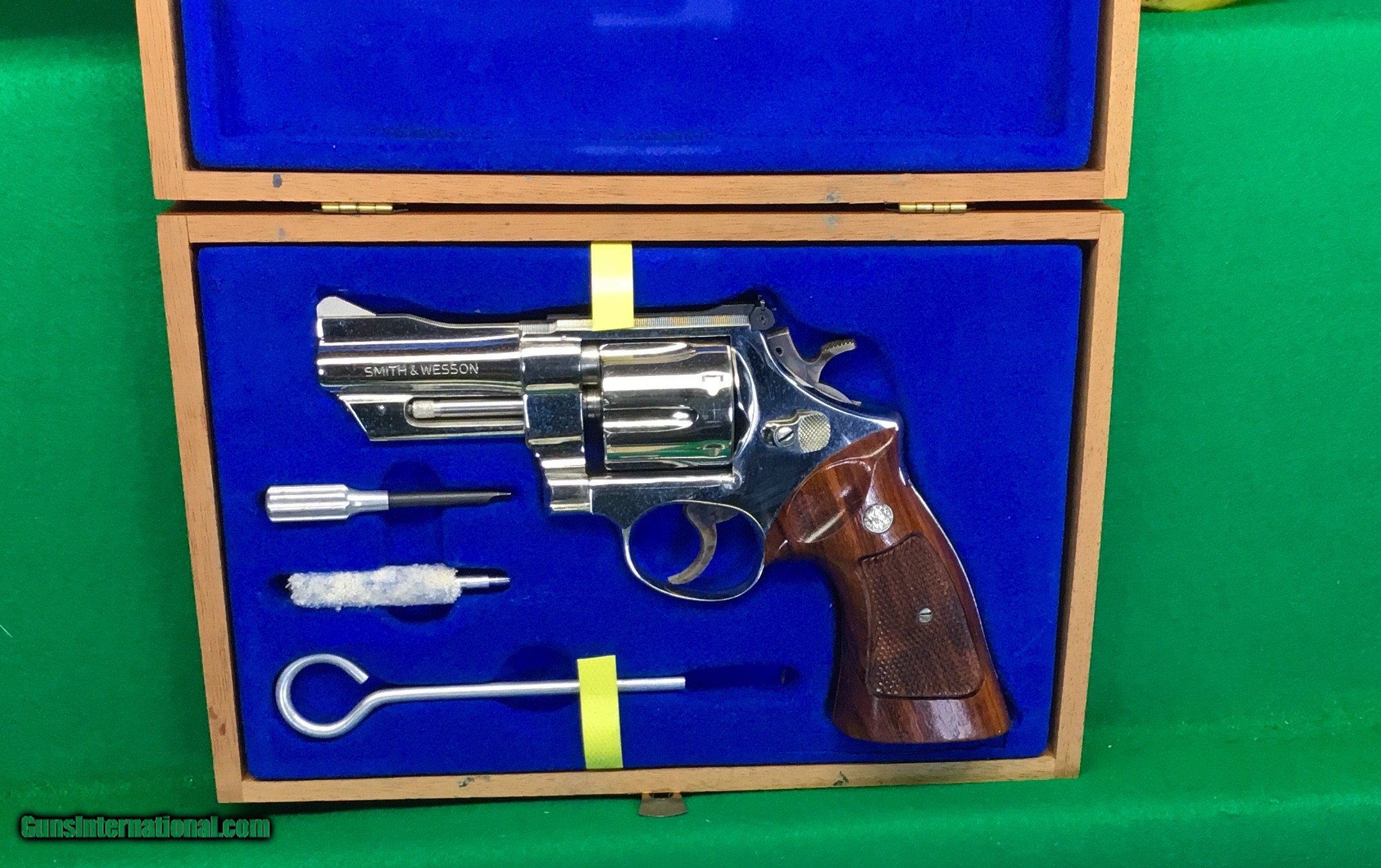 Description: Beautiful factory Nickel finish on this S&W 27-2, 357 magnum with scarce 3 1/2 inch barrel. Still in the original wood case with tools. “N” prefix S&W with target grips. $2298 plus $38 insured shipping. Lay a way available. No credit cards and no trades. SOLD |