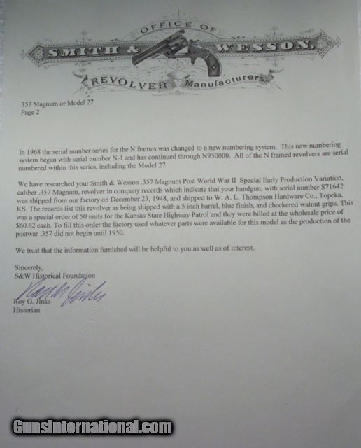 Description: Smith & Wesson 357 Post War; SN571642; gun is basically parts; worthy of restoration; only thing that is original is the frame; originally a Kansas State Highway Patrol gun; letter included; FFL/C&R required for shipping; from my own personal collection; Long guns shipped by FedEx in a hard case $65; all other items shipped fully insured Priority Mail; - -Hand guns $30 -- Spurs $30-- Knives, Swords & Sabers $30—Grips $20 – Scopes $10; return policy: three days inspection from the date the item is received; full refund of shipping both ways ONLY IF THE ITEM IS MISREPRESENTED. SOLD Curio/Relic: Yes Manufacturer: S&W Model: 357 Serial Number: 571642 |