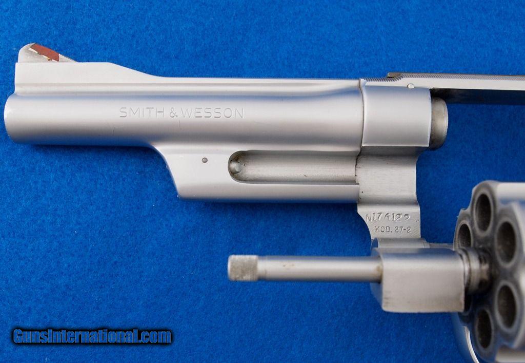 Description: S&W 27-2 .357 MAG, 5 " bbl, bright shiny bore, good rifling, adjustable white horse shoe rear sight, ramp front sight, Stainless Steel finish, and checkered hardwood stocks with inset S&W medallions. Add 3% for Credit Card Shipping $25.00 SOLD |