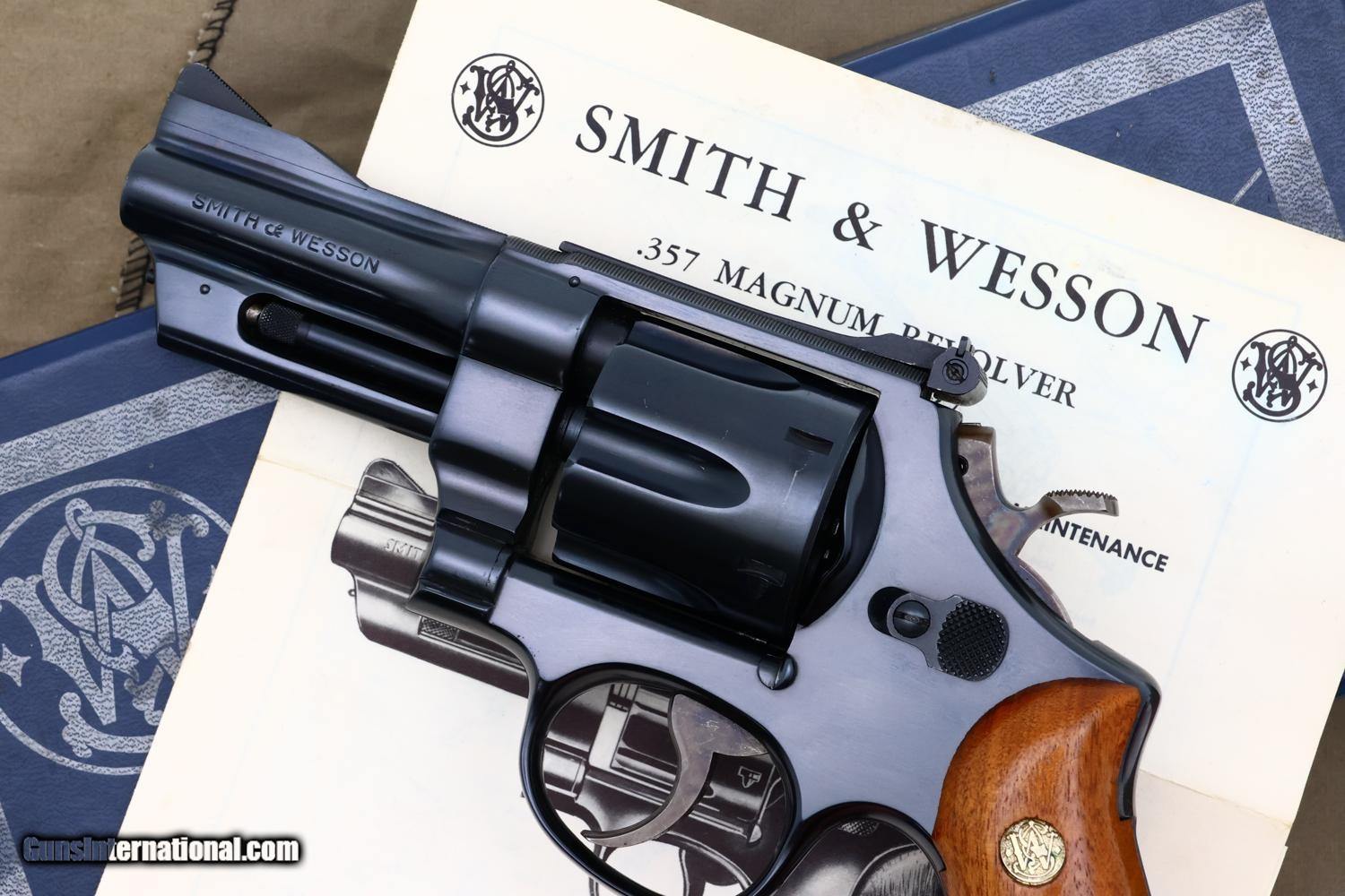 Exceptional S&W Model 27-2 .357 Magnum revolver with the scarce/desirable 3.5-inch barrel, adjustable sights, in exceptional condition, renowned for its popularity among FBI agents from the 1940s to the 1970s, complete with its original box with paperwork and cleaning swab.