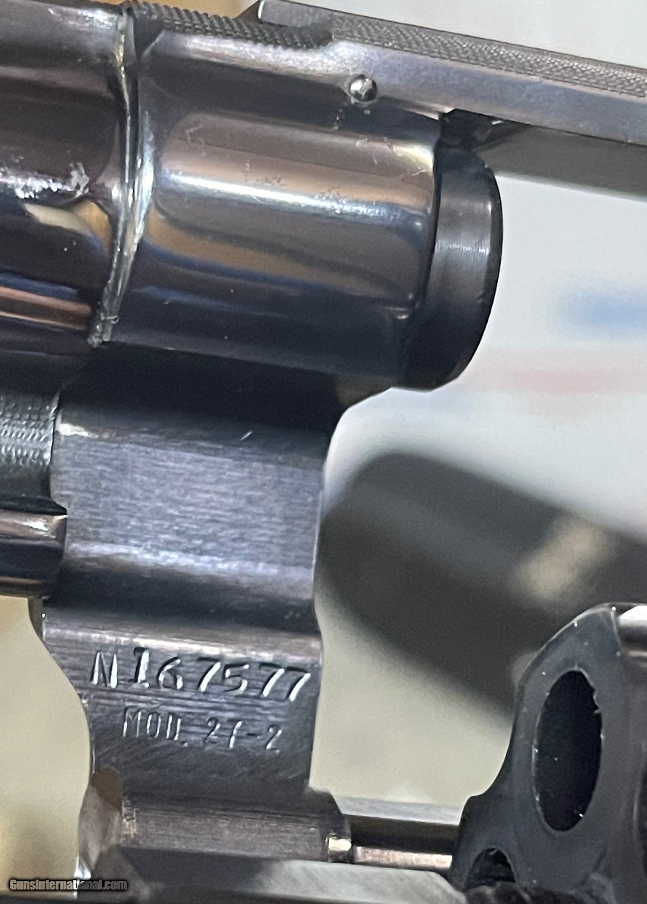 Description: Another rare 27 in 5 inch barrel. Recessed cylinder, 5 inch pinned barrel, target sights, blue finish, and target grips. One small bit of wear on one of the flutes (see photo). Please email with questions. Shipping and insurance included. SOLD Manufacturer: Smith and Wesson Model: 27-2 Barrel Length: 5 inch Condition: Used Metal Condition: Very good Wood Condition: Excellent Bore Condition: Excellent Finish: Blue Sights: Target Item Location: 37075 |