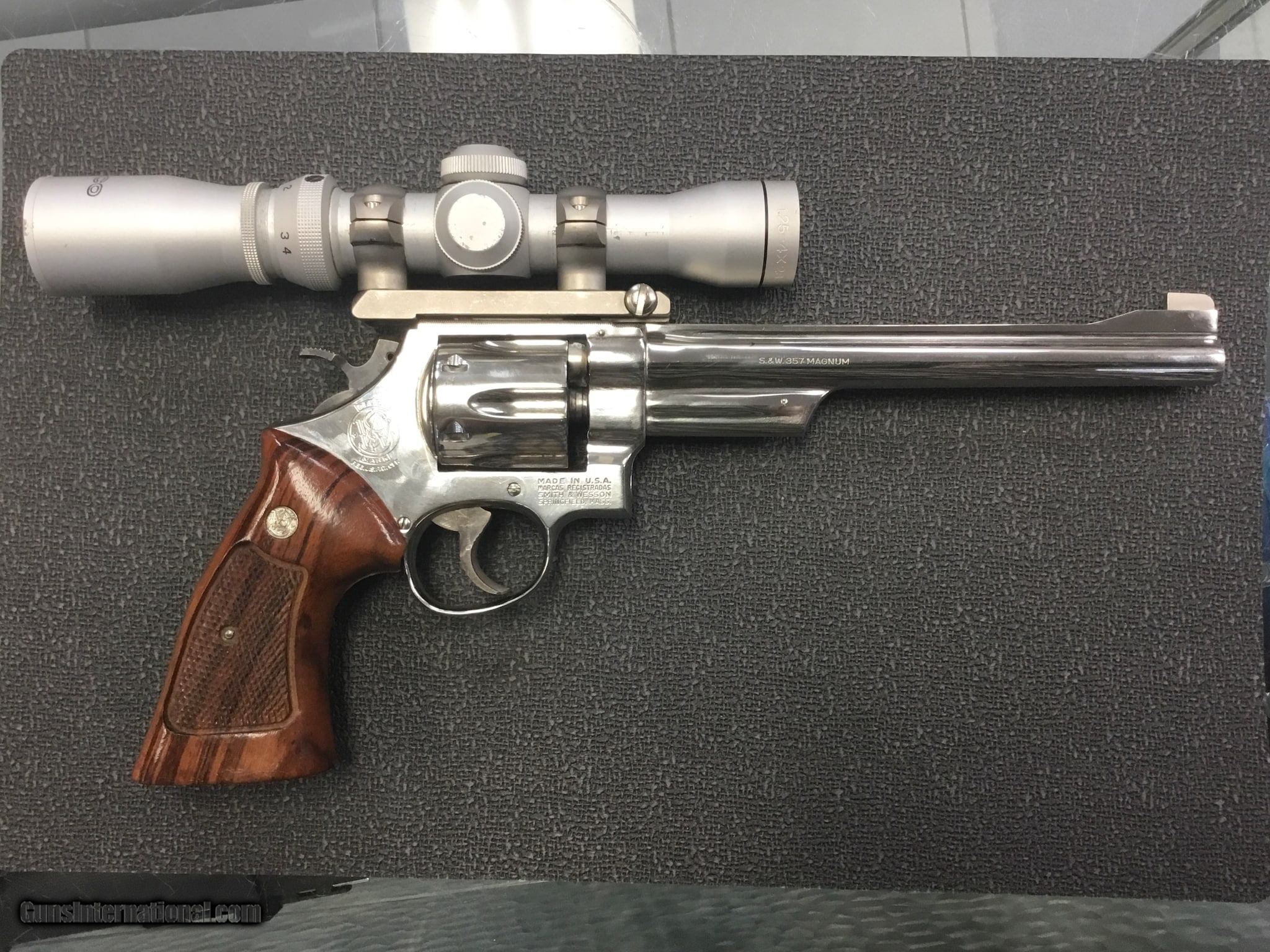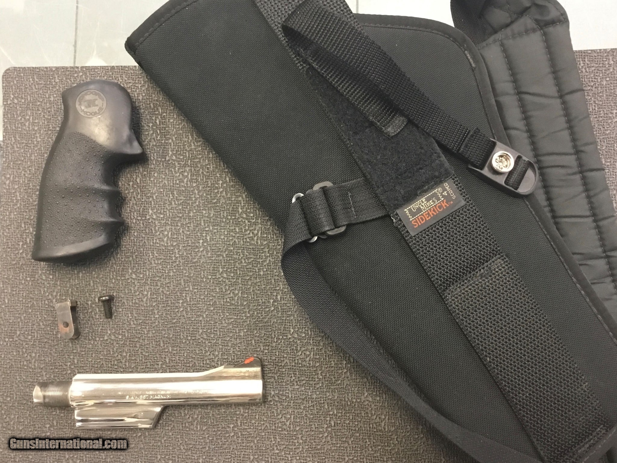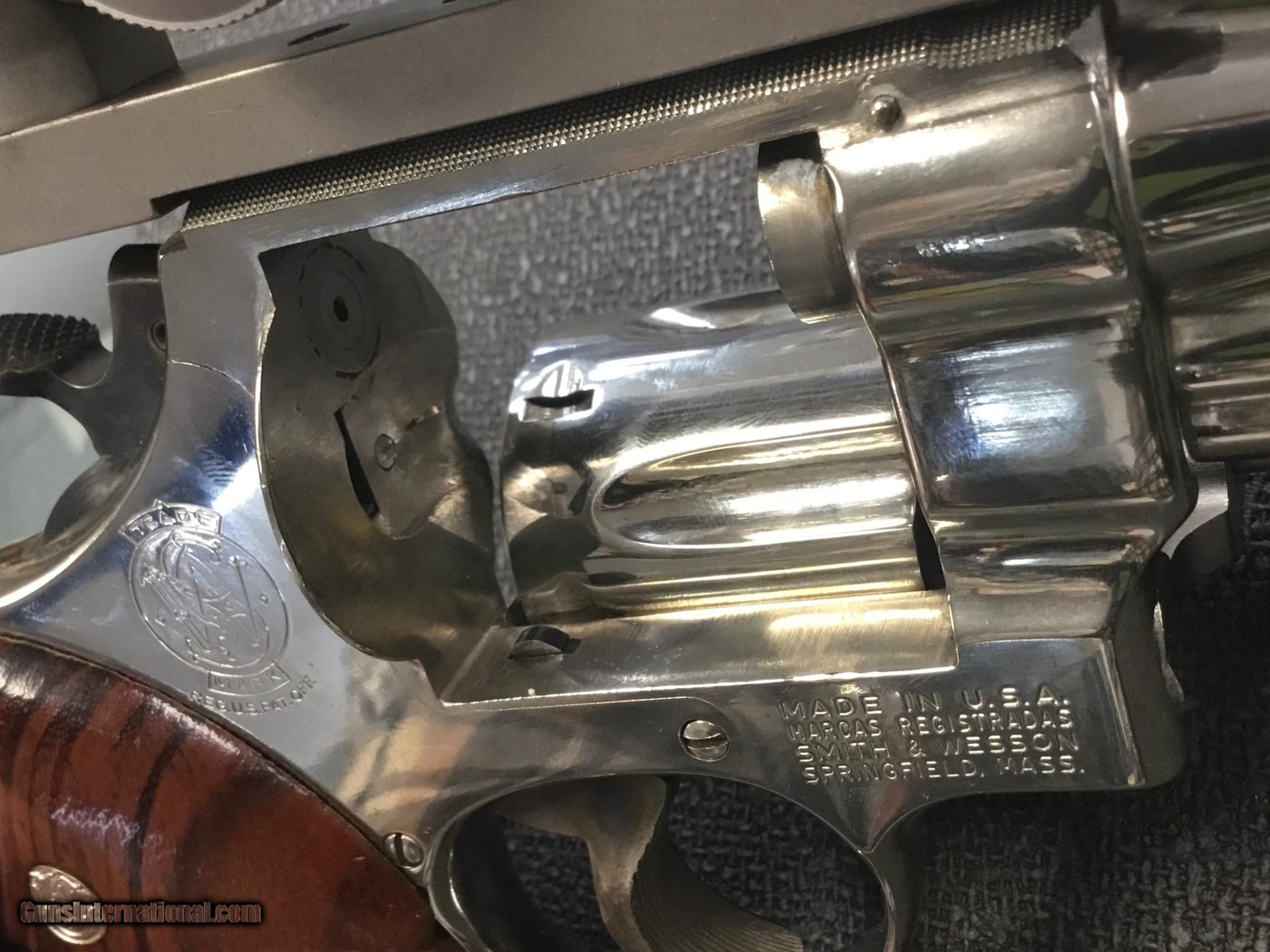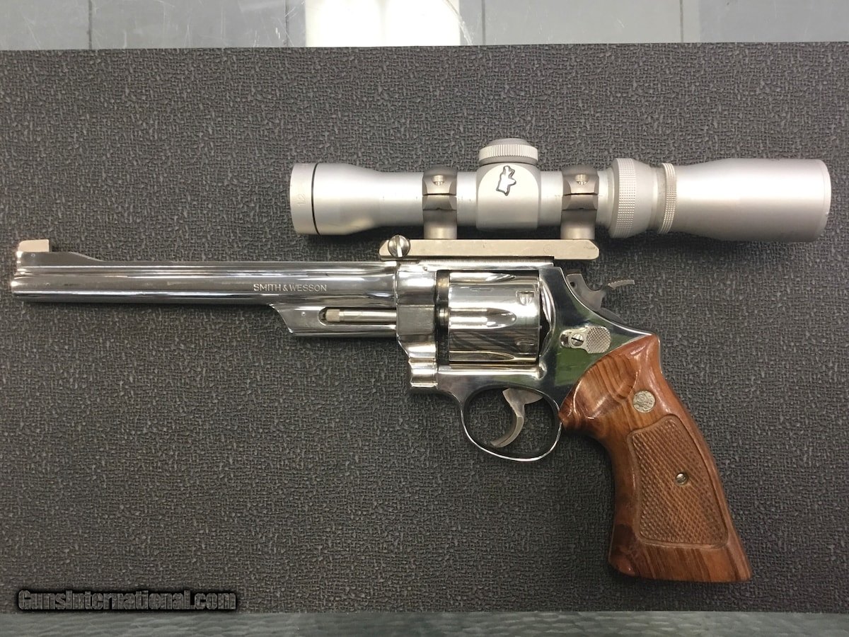 Description: Guns Listing ID: 871699 Smith & Wesson Model 27-2 in nickel plated finish in very good condition. Very minimal wear, gun currently has a 7.5\" barrel but also included are a 5\" barrel, Hogue grip, Uncle Mike‚‚s holster, Redfield base and rings, and Tasco scope. Original rear sight is not included. Great package for a handgun hunter or S&W collector. No sales to CA, no CNR dealers SOLD Manufacturer: SMITH & WESSON Model: 27-2 Caliber Info: .357 MAG Condition: Used - Non-Certified Barrels: 7 BARREL Finish: NICKEL |