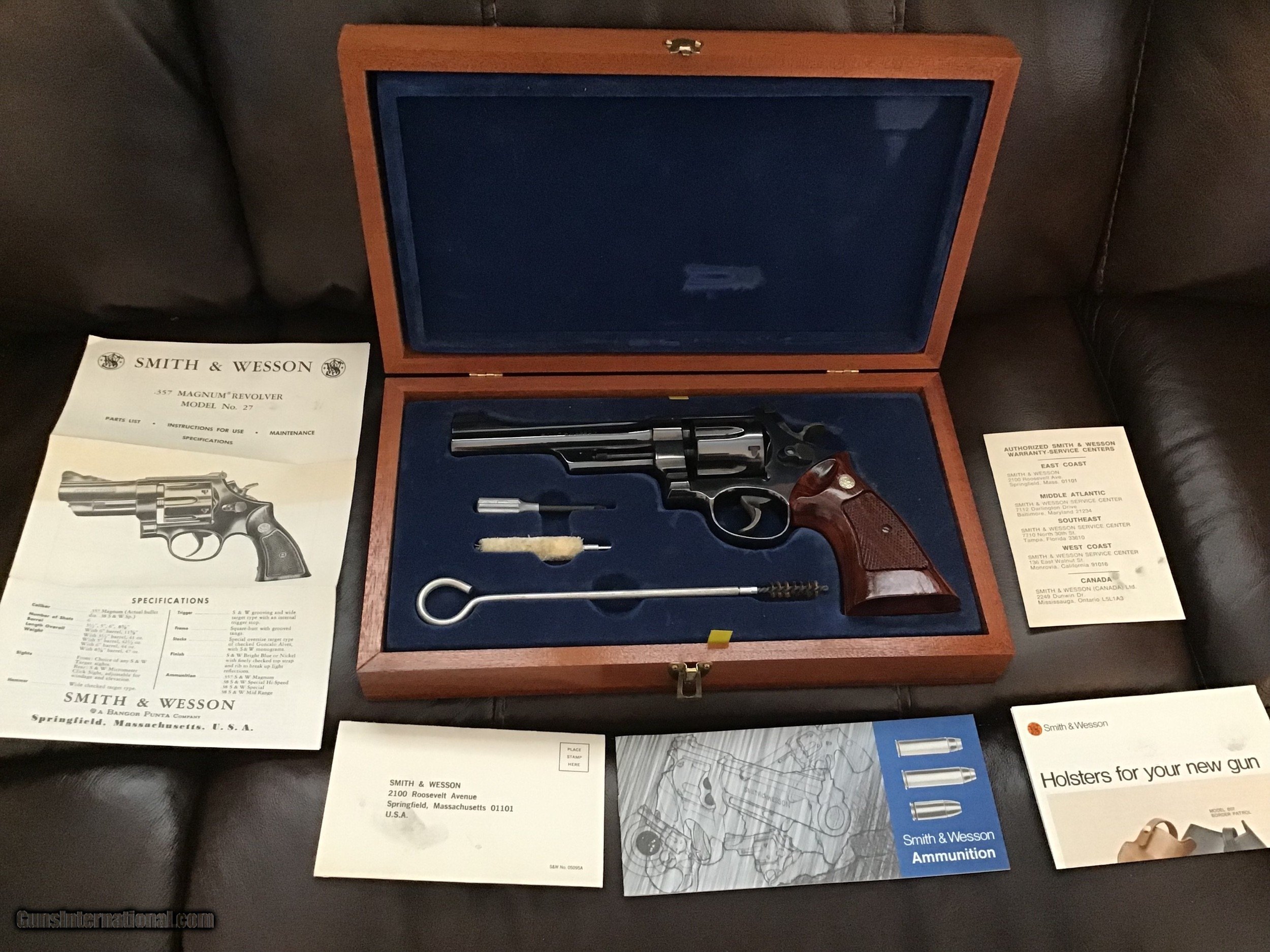 SMITH & WESSON 27-2, 357 MAGNUM, NEW UNFIRED, UNTURNED, 100% COND. IN THE WOOD PRESENTATION CASE WITH CLEANING TOOLS, OWNERS MANUAL, ETC.