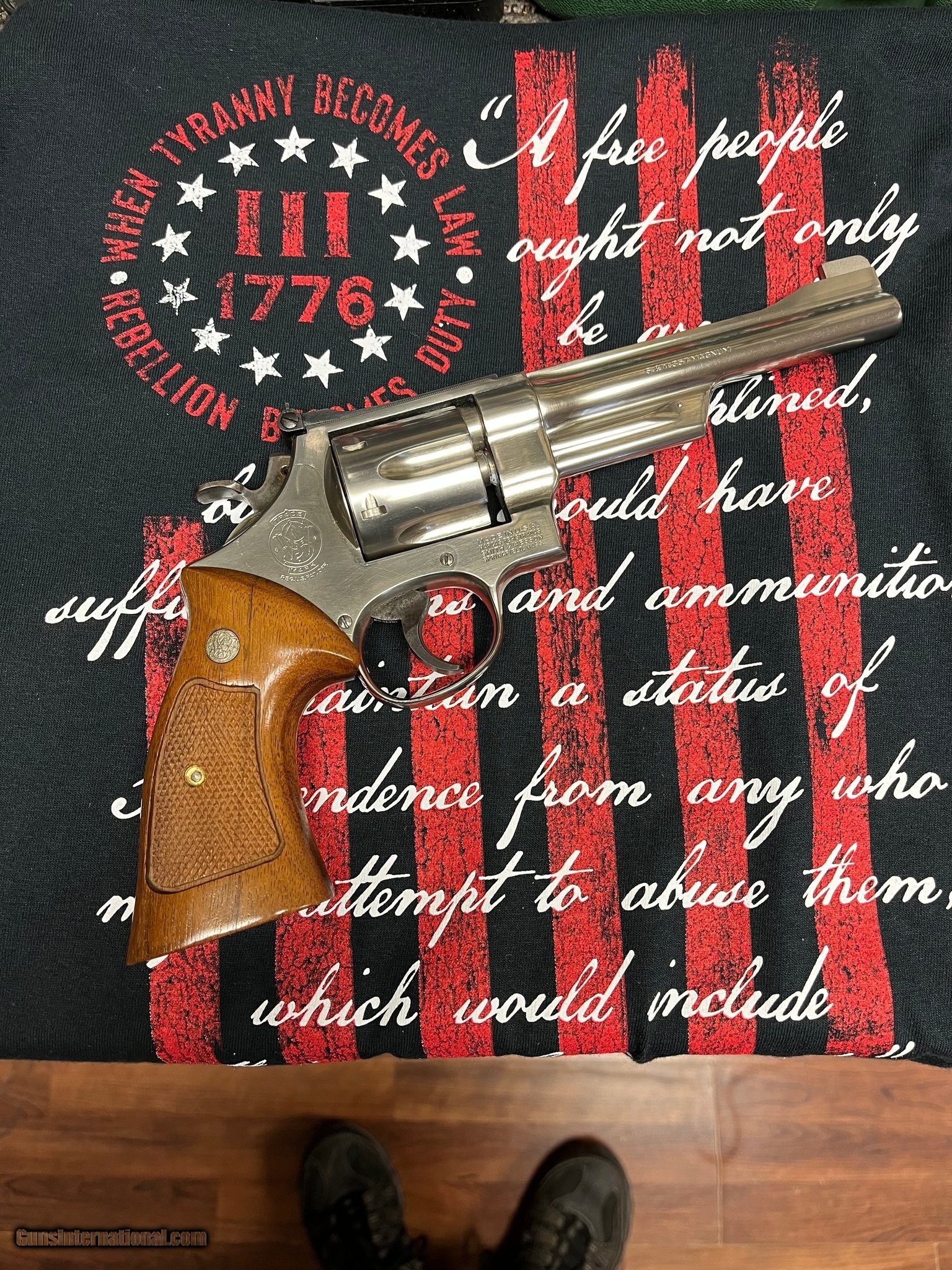 Description: Guns Listing ID: 489792 Smith & Wesson 27-2 357 magnum revolver. Nickel. 6” barrel with ADT rear sight. Beautiful checkered wood grips. 3 Ts. Target hammer trigger and grips. Very nice gun. Outstanding nickel finish. No box SOLD Manufacturer: SMITH & WESSON Model: 27-2 Nickel Caliber Info: .357 MAG Condition: Used - Non-Certified Barrels: 6 Finish: nickel |