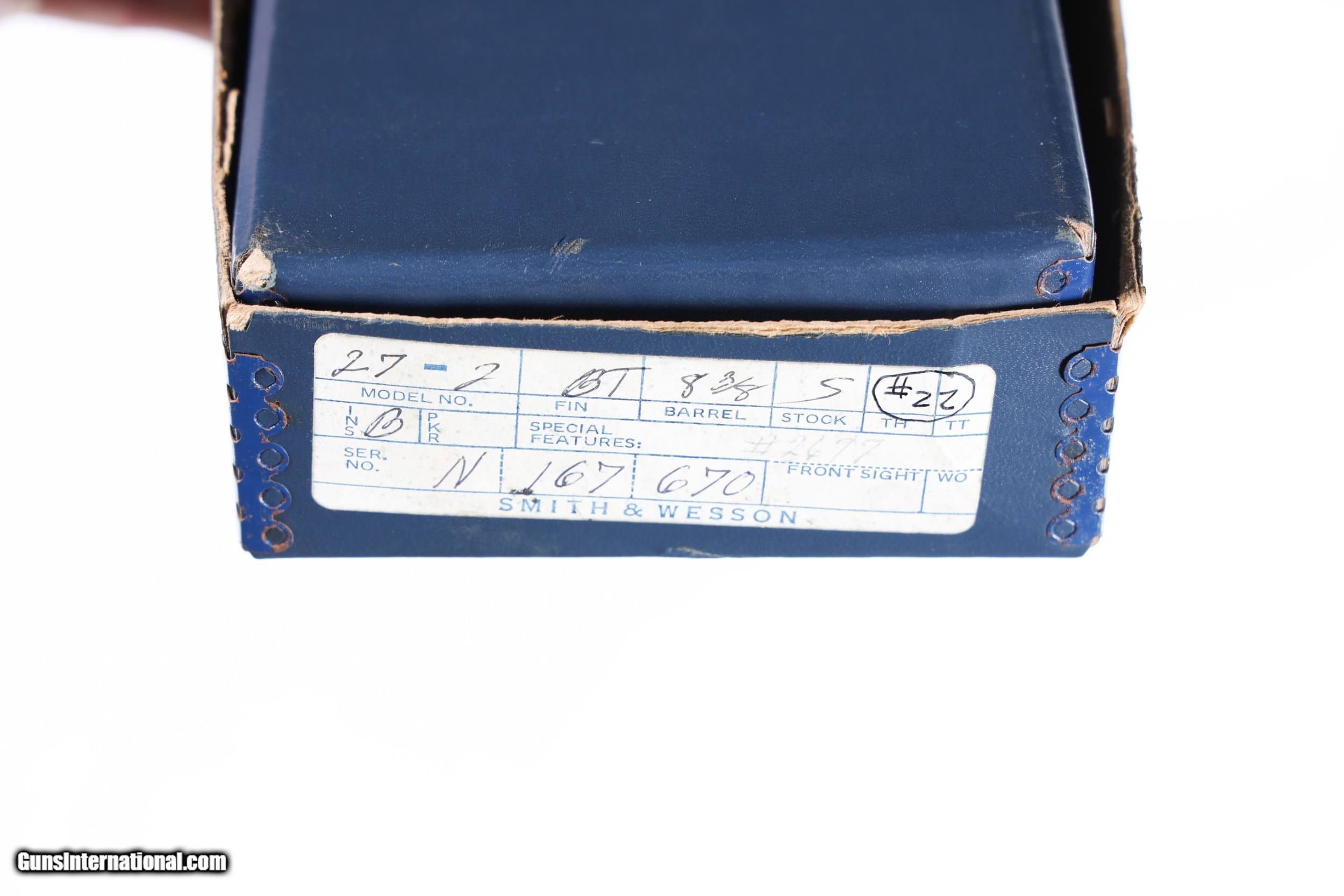 Description: Excellent overall condition, light cylinder drag line. With matching factory box, manual. • Free Shipping, No Credit Card Fees. • Lay-a-way available for this firearm. • 1/3 Down, a 1/3 in 30 Days 1/3 in 60 Days. SOLD Manufacturer: Smith & Wesson Model: 27-2 Serial Number: N167670 Barrel Length: 8 3/8 |