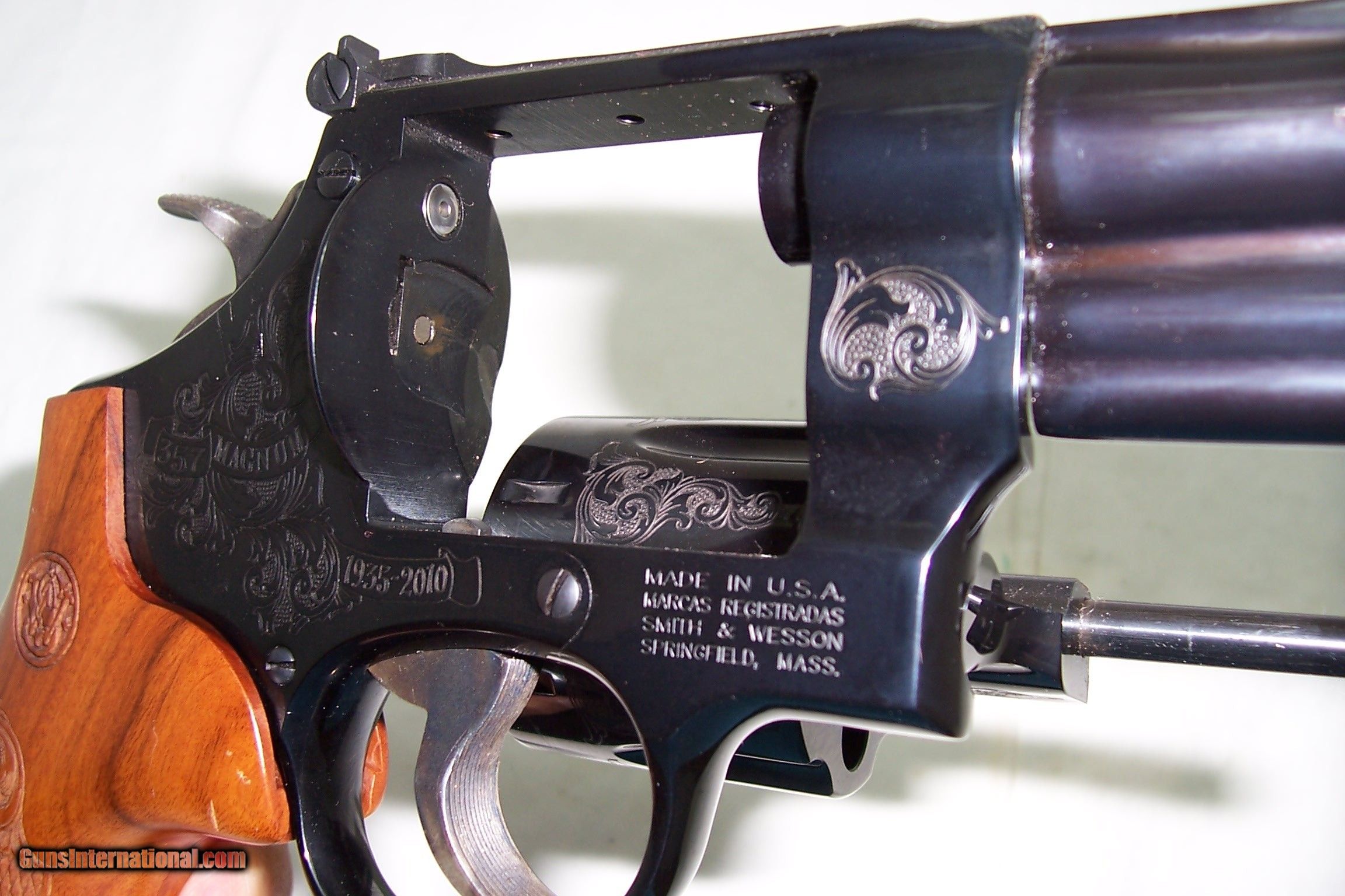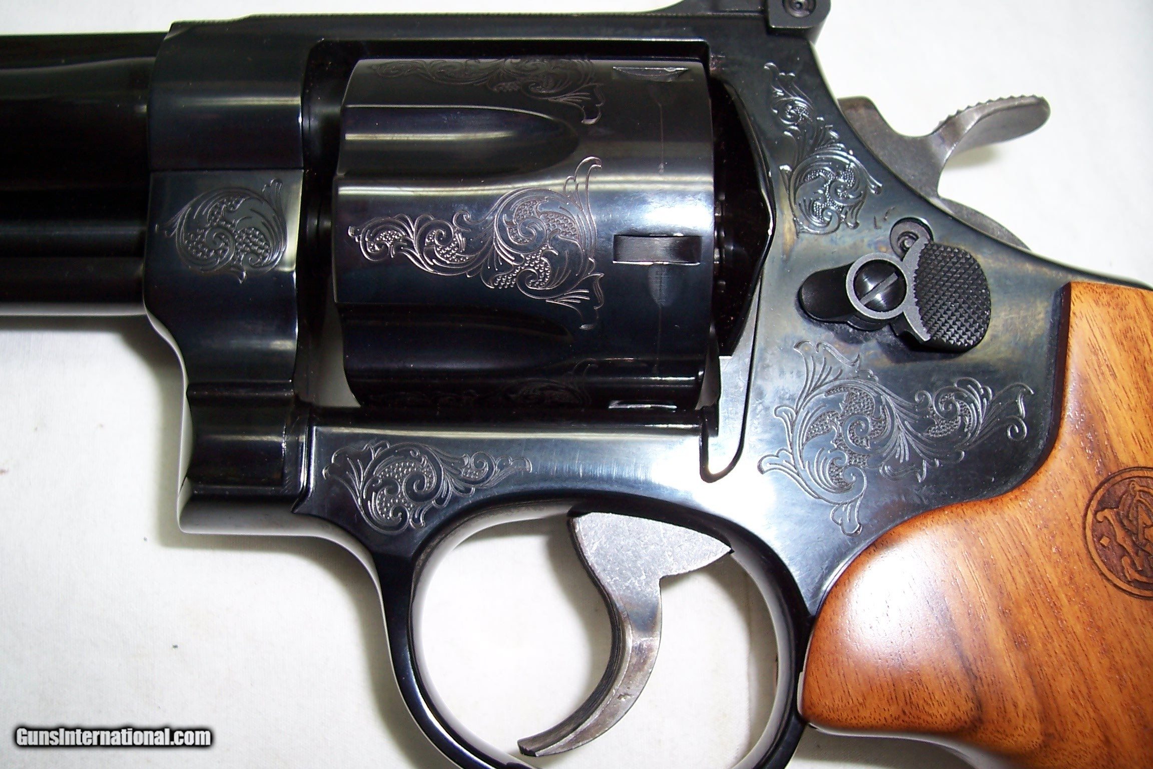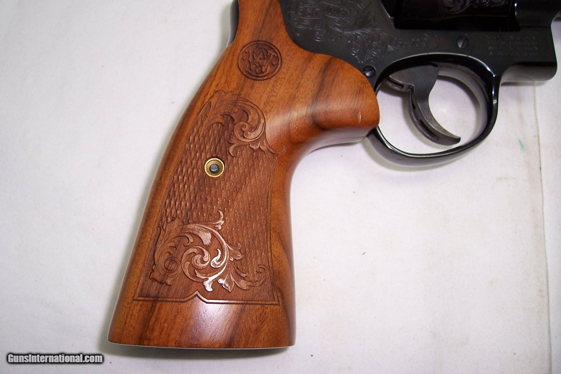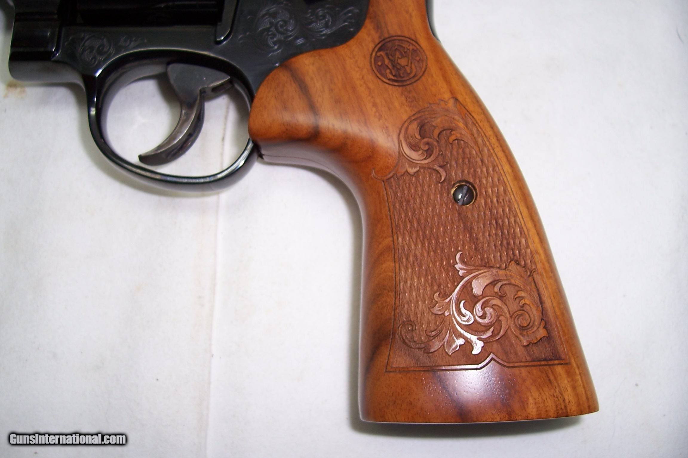Description: A presentation 75th Anniversary of 357 Magnum, engraved Mod 27-9, box with papers and the glass Anniversary Case. All unfired and original. A real collectable, serial number SFYo296. Call or email any questions. SOLD Manufacturer: Smith & Wesson Model: 27-9 Serial Number: SFY0296 Caliber Info: 357 Condition: NIB Engraving: Factory |