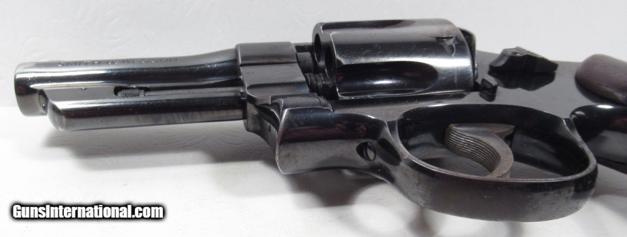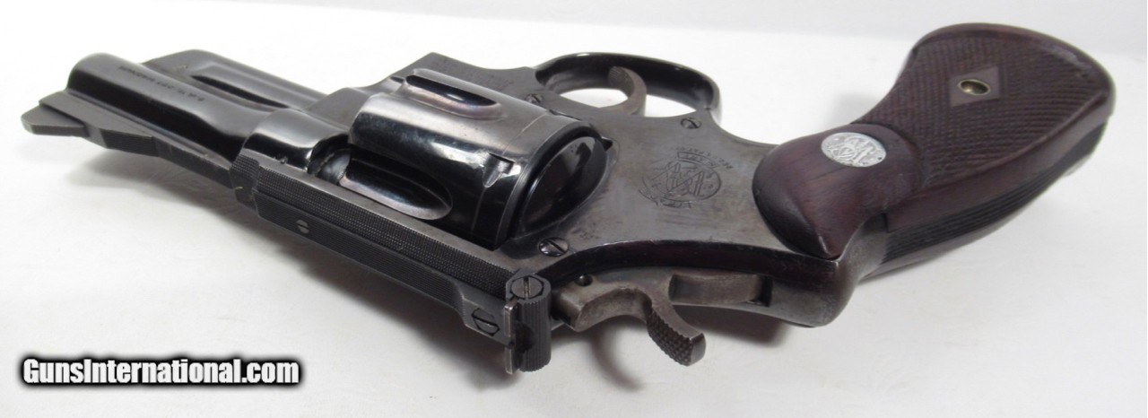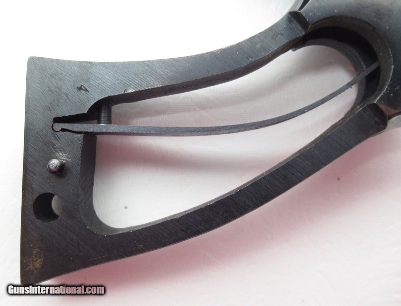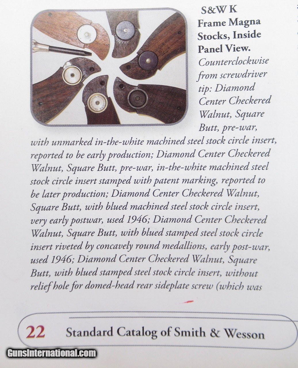 Description: Very Rare Smith & Wesson 357 Magnum Transitional Post War Model; Serial No. S75529; Some Pre-War Registered Magnum Parts (Frame, Barrel, Hammer, and Grips); Some Post-War Parts; This Very Rare Revolver with a 3 ½” Barrel was One of 12 Revolvers Shipped to Straus Frank Co., San Antonio, Texas for the San Antonio Police Dept. on March 21, 1950; Lots of Photos were Sent to Roy Jinks of this Revolver and He Said All Looked Original to Him and you never know what you got with a Transitional Model; I also called Retired San Antonio Police Chief Bill Gibson and he related he has Never Heard of One of These Revolvers; Very Good Condition, Especially for a Police Gun with nearly All of the Original Blue Still Present; Nice Grips with Late Pre-War Insert with Patent Dates (See “Standard Catalogue of Smith & Wesson” page 22); This is One of Only 142 Transitional Models Produced and Most were Ordered by Police Depts. (See “Standard Catalogue of Smith & Wesson” page 135) ; All Numbers Match; Perfect Action and Bore; PERSONAL PROPERTY of Harold Wieser; Price: $8,750 + $30 S&H; Price includes insured shipping; return policy: three days inspection from the date the item is received; full refund of shipping both ways ONLY IF THE ITEM IS MISREPRESENTED. SOLD Manufacturer: Smith & Wesson Model: 357 Serial Number: S75529 |