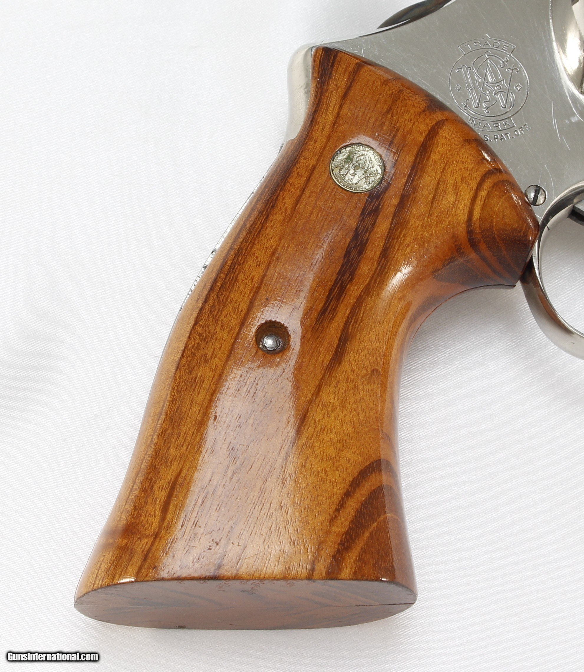 Description: SMITH & WESSON, MODEL 27-1, 8 3/8" Barrel, NICKEL, Square Bottom Walnut Grips, 3 Screw Model, SN#S210065, MFG: 1960. SA Trigger Pull: 1 1/2lbs. Nice Custom Display Case. Ships to Lower 48, W/Insurance: $35.00 SOLD Curio/Relic: Yes Manufacturer: S & W Model: 27-1 Serial Number: S210065 Caliber Info: 357 MAG Bore: EXCELLENT Condition: EXCELLENT Metal Condition: EXCELLENT Barrels: 8 3/8 |