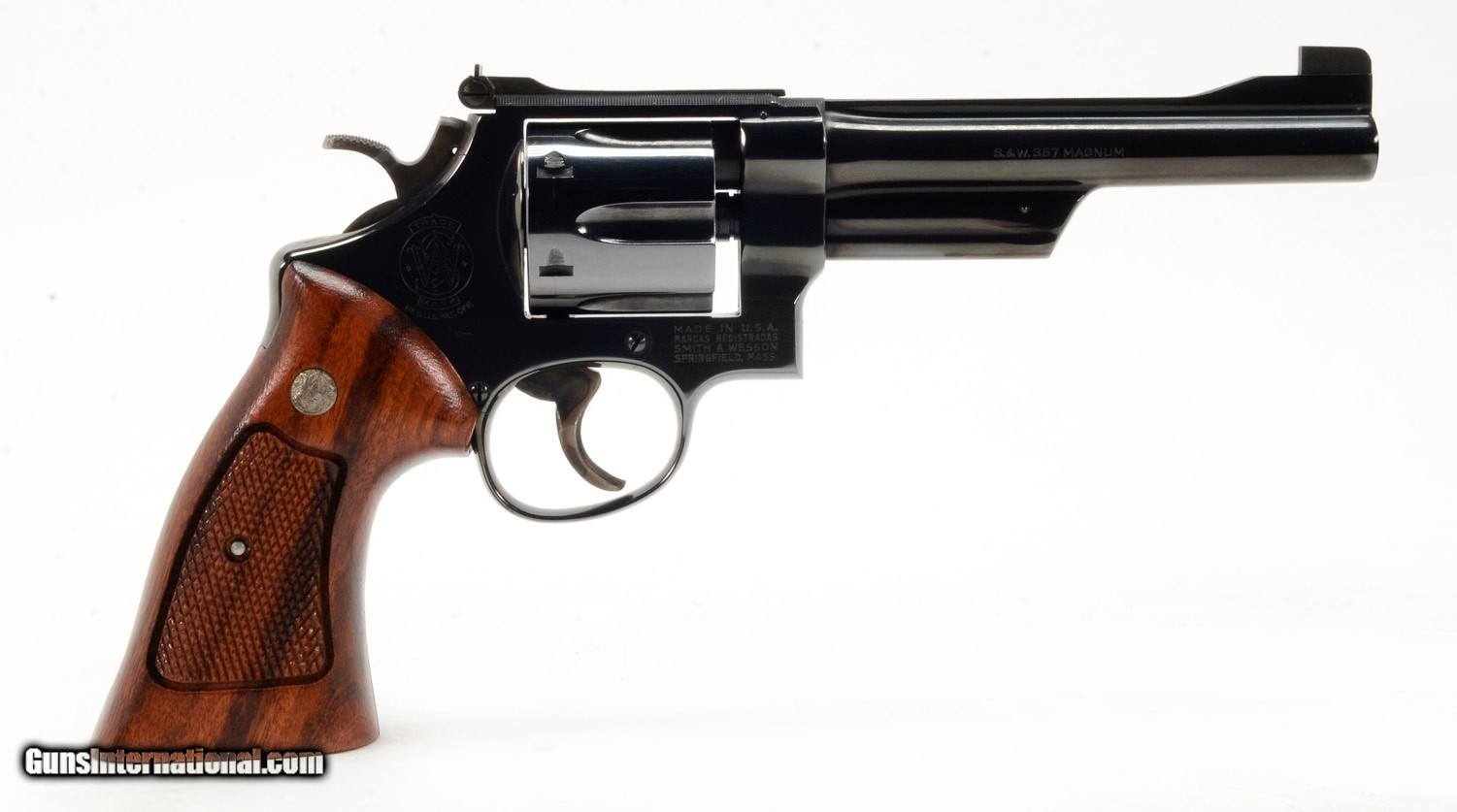 Description: Smith & Wesson Model 27-2 .357 Mag. New In Presentation Case. DOM 1980 AVAILABLE FOR PURCHASE AT OUR ON-LINE STORE The Smith & Wesson Model 27 is the original .357 Magnum revolver. It was first produced in 1935, and many versions of it are still in production today. The Model 27 was built on Smith & Wesson's carbon steel, large N-frame, 6" barrel and adjustable sights.