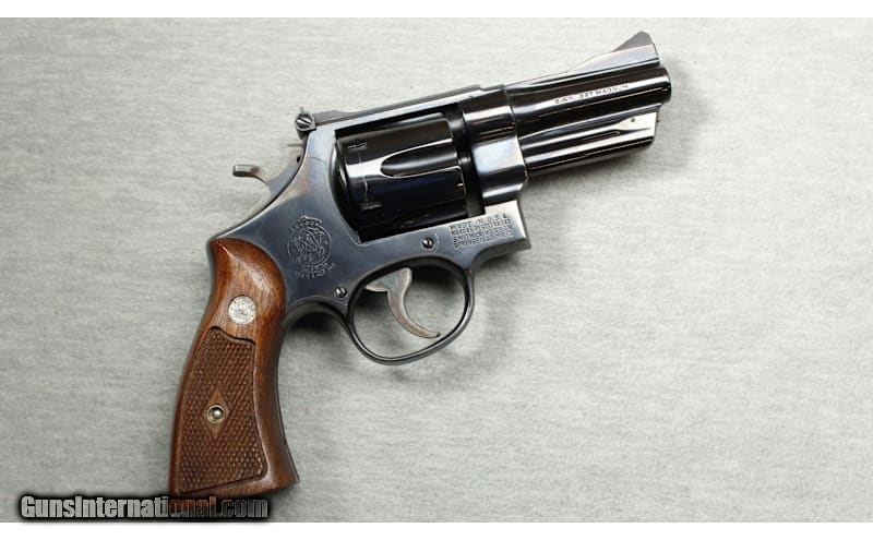 Description: Excellent condition, light wear and handling marks, comes with original box. Classic S&W magnum revolver, 3 1/2" pinned barrel with shrouded ejector, polished blue finish, 6 shot fluted cylinder, adjustable sights, double and single action trigger, checkered hammer & cylinder latch and S&W checkered wood grips. .357 Mag SOLD Item Location: La Vista, NE |