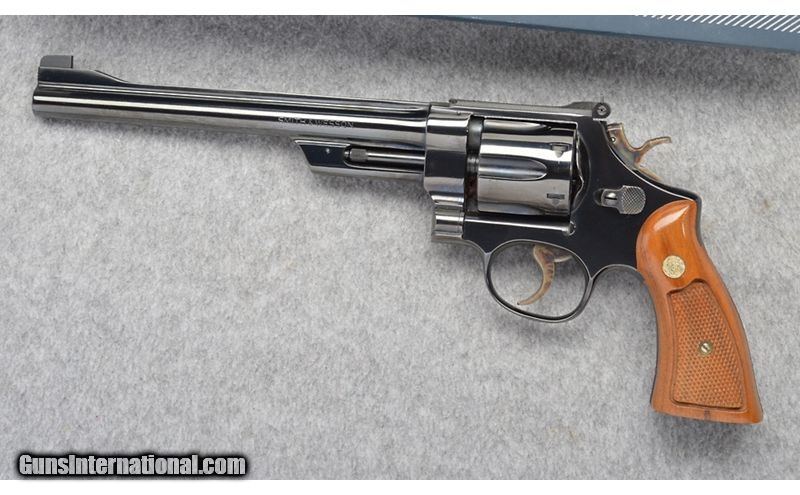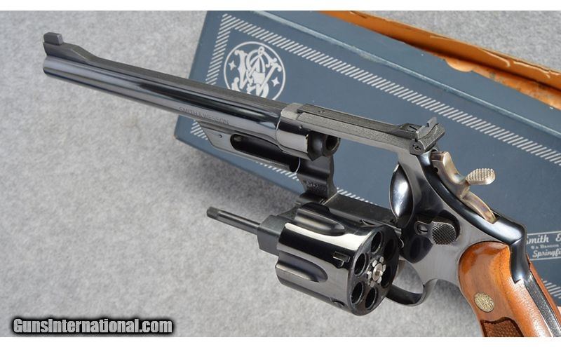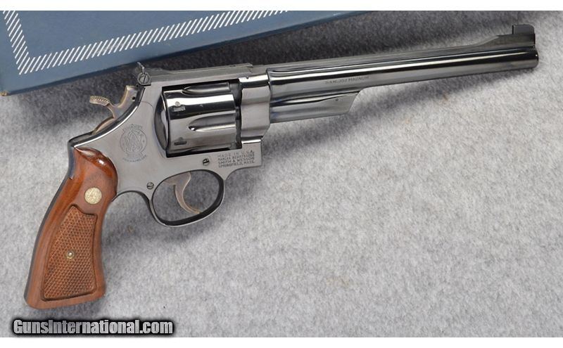 Description: No cleaning tools. Excellent condition with factory box. .357 Magnum SOLD Metal Condition: S&W Bright Blue Wood Condition: S&W Magna Walnut Grips Bore Condition: Bright / Sharp Barrels: 8 3/8 Inch Triggers: DA/SA Weight: 48 ozs Sights: "Adjustable Rear Sight, Partridge Front Item Location: Buda, TX |