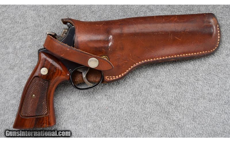 Description: This S&W is in very good overall condition with an excellent bore! Grips show some use marks and light wear. Receiver and barrel show handling and use marks all over. Barrel and muzzle show blue loss from holster wear. Lockup is tight and function is good. Complete with a Bianchi leather holster! No box. .357 Mag SOLD Metal Condition: Very Good Wood Condition: Very Good Bore Condition: Excellent Barrels: 6 Triggers: Wide Target Trigger - Wide Target Hammer Butt Pad: Checkered Walnut Grips with S&W Medallion Weight: 48 oz. Sights: Patridge Front - Adjustable Square Notch Rear Item Location: Wheeling |