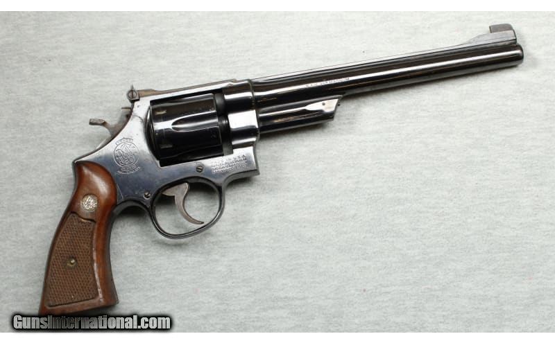 Description: Excellent condition, light finish wear, small nicks and scratches. Classic S&W magnum revolver, 8 3/8" pinned barrel with shrouded ejector, polished blue finish, 6 shot fluted cylinder, adjustable sights, checkered hammer & cylinder latch and S&W checkered wood grips. .357 Mag SOLD Chambers: Revolver Metal Condition: Excellent Bore Condition: Bright Barrels: 8 3/8 Triggers: Double and single action Butt Pad: Wood grips Sights: "Adjustable rear, blade front sights Item Location: La Vista, NE |