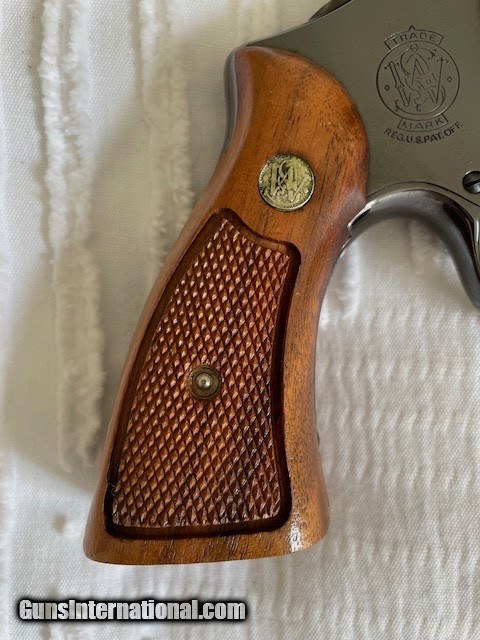 Description: Smith & Wesson Model 27-2, NIB, Absolutely Gorgeous! Scarce 3 1/2 inch barrel. NONE FINER! Late 60's or early '70's with box, tool kit and no papers. Look at all the photos and hit the BUY IT NOW button for Free Shipping to lower 48 states to FFL only. Lots of pictures tell everything. Any imperfections, reflections, glare or shadows are the fault of the photographer, not the gun. Barely visible turn ring from the factory. Square Butt Walnut Magna Grips. Gun was stored in a safe since new. Box stored with other boxes separately so there is shelf wear to the box. No returns. As is. Ask before you buy if you have questions. SOLD Handgun Caliber: .357 Magnum Manufacturer: Smith & Wesson Model: 27-2 Serial Number: N 14163 Chambers: Excellent Condition: Excellent Metal Condition: Excellent Wood Condition: Excellent Bore Condition: Excellent Action: DA/SA Stock: Magna Finish: Bright Blue Manufacture Date: 1973-74 |