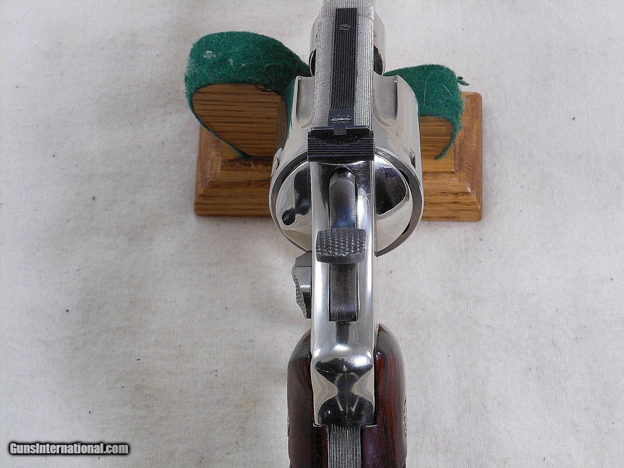 Description: This Smith & Wesson Was Produced in 1980. The pistol's serial number is N 732975. It has the 6 Inch pinned barrel. The sights are the target style. The hammer and trigger are the target style. The hammer and trigger have nice color cased finish. The grips are original to this pistol. The original Nickel finish would rate a 97% overall condition. The grips would rate the same in condition. There are some surface scratches by the muzzle end. There is a faint drag line on the cylinder. This pistol has seen very little use. The bore is bright with no issues. The action is tight with a crisp trigger release. This is a very hansom pistol with great looks! This pistol should appeal to the collector as well as the shooter. Search for hlvfineguns on google for more details. Modern L.A.C. Consn. (5) F. No. 444 -19 SOLD Manufacturer: Smith & Wesson Model: 27-2 Serial Number: N 732975 Caliber Info: 357 Magnum Chambers: Minty Condition: 97% Overall Metal Condition: Very Fine Wood Condition: Very Fine Bore Condition: Minty Barrels: 6 Inch Barrel Type: Ribbed Action: Double Action Triggers: Target Rib: yes Finish: Nickel Sights: Target Manufacture Date: 1980 |