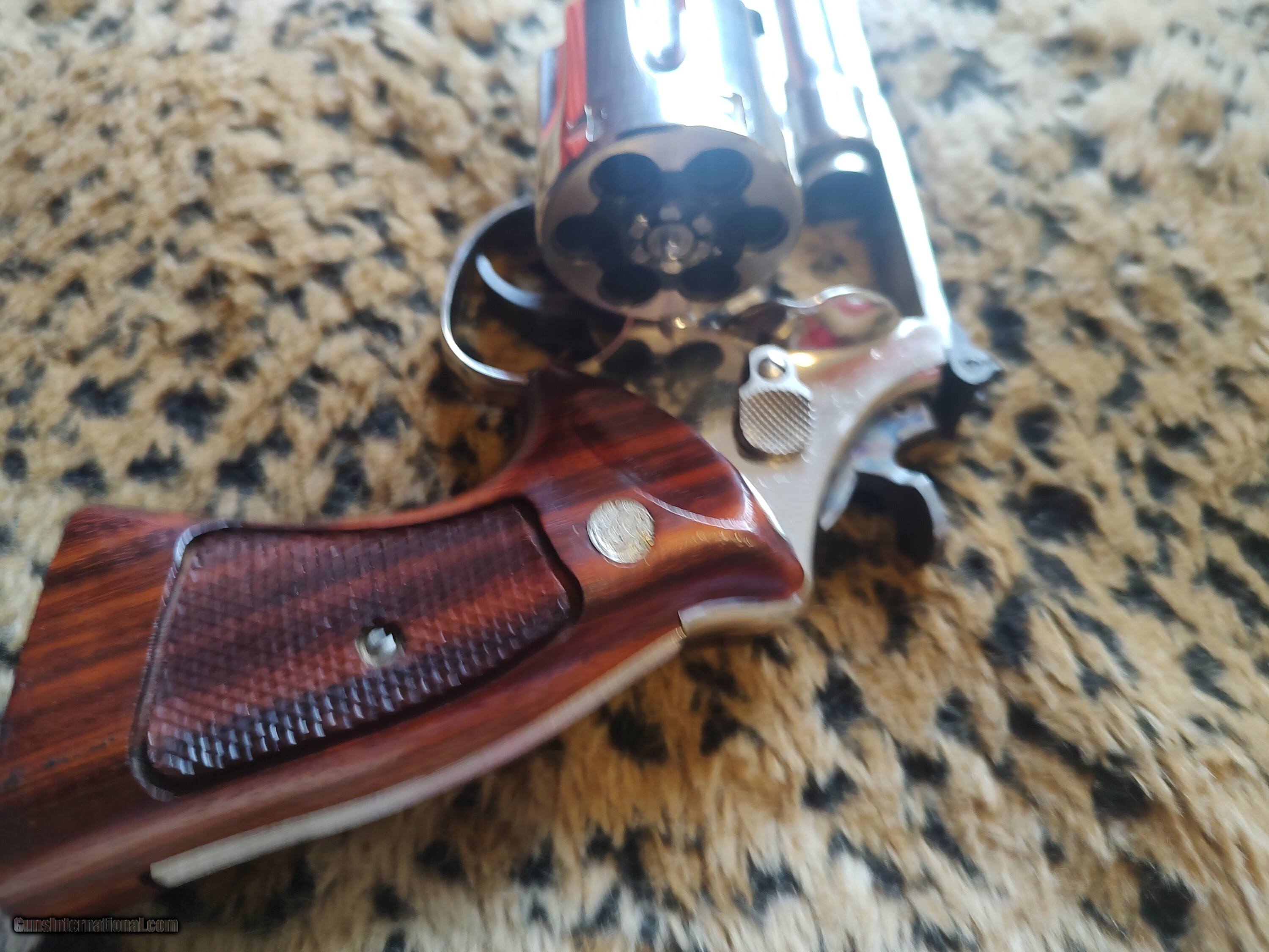 Description: Like new Beautiful Smith and Wesson model 27-2, with the recessed cylinder and beautiful factory target grips. 357 Magnum Nickel 4 in barrel in the presentation case The gun dates back to 1980 and as I have owned it since the late 80's I can attest to it being fired very little at all These nickel plated guns are becoming quite rare as Smith hasn't made them in at least 20 years, Beautiful gun , looks like it just left the factory See the pictures, questions call or text me Hawkeye 316 841 8000 Handgun Caliber: .357 Magnum Manufacturer: Smith and Wesson Model: 27-2 Serial Number: N761722 Barrel Length: 4 in Bore Info: No wear Condition: Like new Grips: Factory Price: $1,950.00 Shipping: $35.00 Contact Seller |