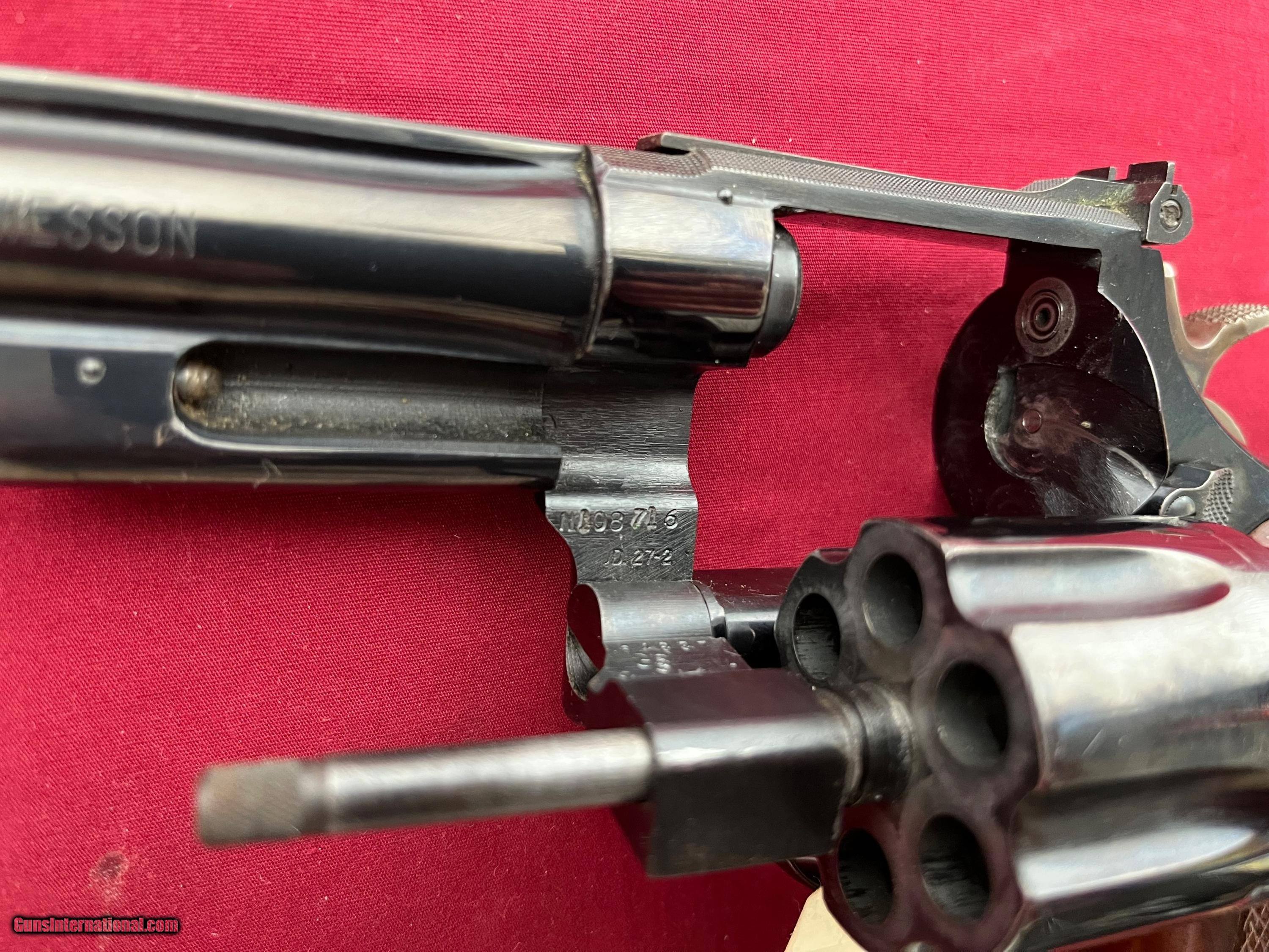 Description: SMITH & WESSON MODEL 27-2 REVOLVER 357 MAGNUM 8 3/8" BARREL . SER# N108716. ADJUSTABLE REAR SIGHT . VERY NICE ORIGINAL BLUE FINISH . NICE SOLID S&WWOOD CHECKERED GRIPS. CASE COLORED HAMMER AND TRIGGER. EASTERN BRANCH FIREARMS ADD 35.00 SHIPPING – HANDGUN USPS PRIORTY MAIL ADD 35.00 SHIPPING – LONG GUNS GROUND SHIPPING Questions e-mail or call Glen at Eastern Branch Firearms 207-215-5021 TERMS – PLEASE READ BEFORE I DO NOT HAVE A LAYAWAY OPTION ( WE ACCEPT CREDIT CARDS ) -- I GET ALOT OF REQUEST FOR TRADES, I WOULD PERFER NOT TO DO TRADES ON MY INTERNET LISTINGS PAYMENT OPTIONS- We accept money orders, cashier’s checks , bank checks. sorry no personal checks. We accept all major credit cards please add 3% to the ’s cash discount price.(Maine Residents to pay 5% sales tax) .Handguns and long guns do need to be shipped separate. PLEASE do not send payment via FED EX . USPS & UPS are fine. Thank you. We include a signed copy of our FFL with each firearm shipped. SAFTY NOTICE- Buyer is solely responsible for determining that a used gun is safe to shoot. The firearms offered have not been test fired but have been given a visual inspection only for purposes. It is a requirement that every used firearm is inspected by a qualified gunsmith before firing. By , the buyer agrees to hold seller harmless against damages, injury, or death caused by defective merchandise. RETURN POLICY- All firearms come with a 3-day non firing , non messing with ( turning srews ,taking apart,removing parts, scoping. firing, cleaning or messing with in anyway) inspection/return privilege.Inspection is based on a visual review of the gun to confirm the gun is in the condition stated. In the case of a return, buyer pays all shipping charges & if paid for with a credit card buyer absorbs the 3% credit card charges . So please ask questions BEFORE you bid. Thanks for Looking and Good Luck!! U.S. sales only, no exports…this includes antiques. I will ship to third party for exporting SOLD |