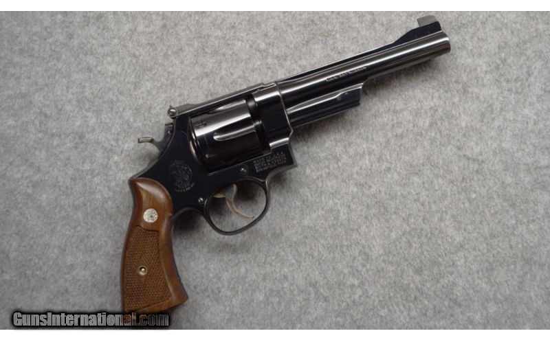 Description: SOLD Manufacturer: 1960-61 ~ S# S218413 Caliber Info: .357 Magnum Chambers: 6 Metal Condition: Excellent + + with a small few, very tiny scratches and turn ring on cylinder. Wood Condition: Very good but has a couple of small and one large dings, the worst is located on the right grip at the bottom. (see photo) Bore Condition: Excellent, lightly shot. Barrels: 6 Triggers: Double/single action Stock: S&W checkered walnut grips. Weight: 2 3/4 Lbs. Sights: Original sights. Item Location: Boise, ID |