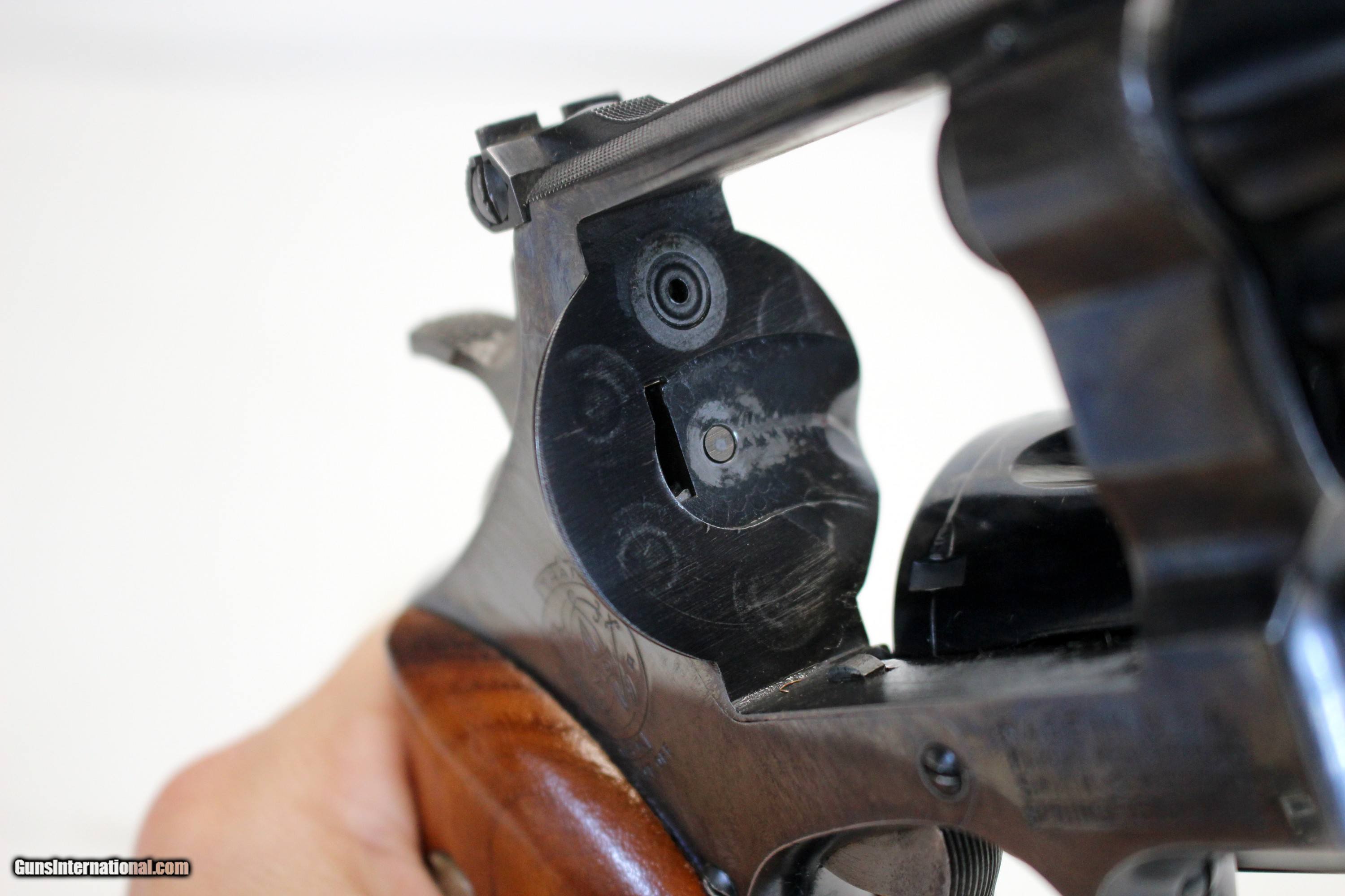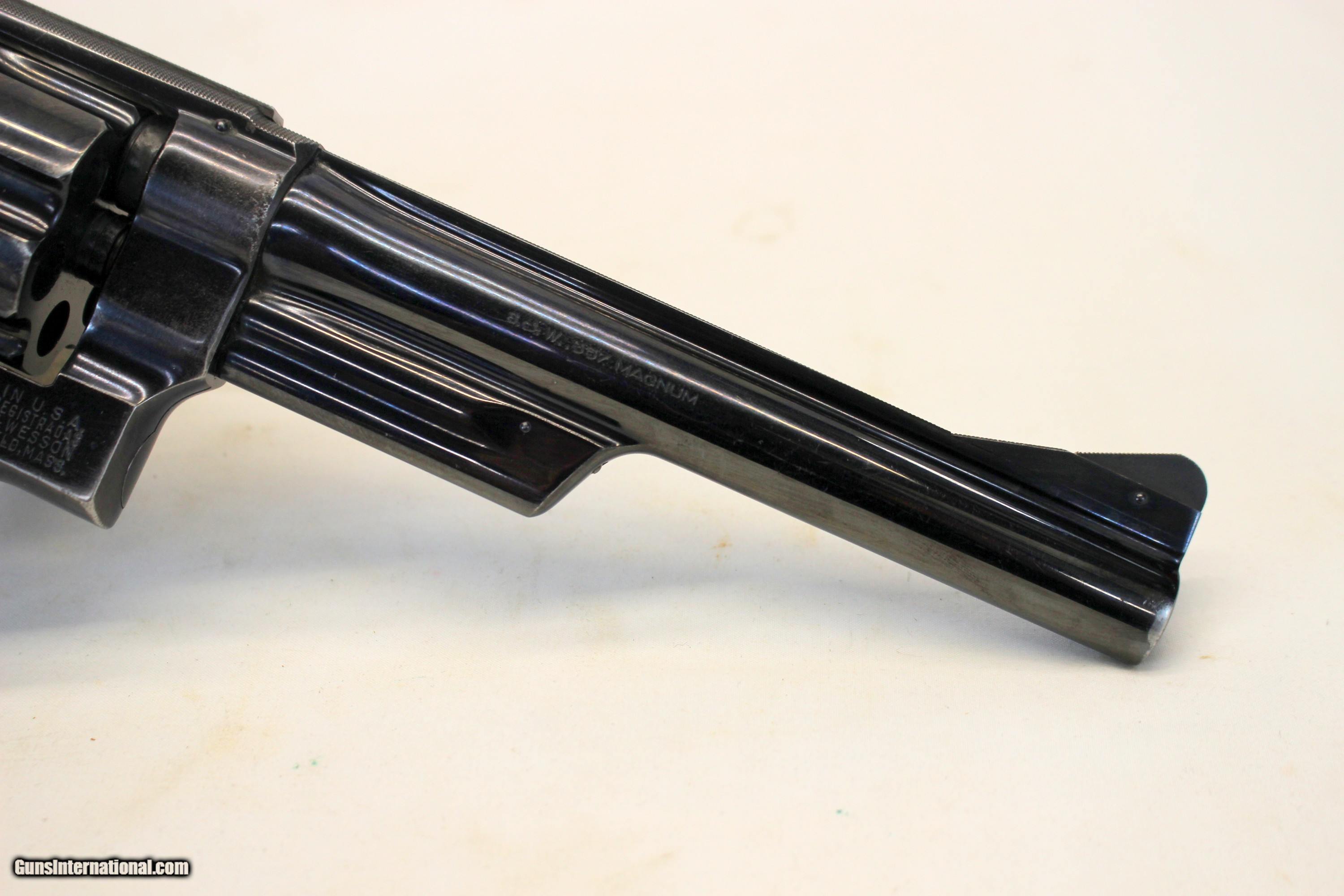 Description: We are offering for sale a Smith & Wesson MODEL 27 (No Dash) SA / DA revolver chambere din .357 Magnum caliber. This early example remains in very good overall condition some age, handling wear noted. 6.5" barrel is very good with some normal surface wear; Some muzzle wear, blue loss. The bore remains clean and bright with crisp rifling. The frame is good to very good with some light pitting on right side ahead of breech. The cylinder shows signs of use. Tight lockup with good timing. Grip panels are very good to excellent. VERY CLEAN AND COLLECTIBLE EXAMPLE! SEE PHOTOGRAPHS FOR DETAILS Shipping is $24.95 via USPS Ground PLEASE NOTE: WE DO NOT TAKE PAYMENT INFORMATION THROUGH THIS . WE TAKE ALL INFORMATION DIRECTLY OVER THE PHONE. PLEASE BE PREPARED TO CALL US WITH PAYMENT INFORMATION WHEN THE SALE IS COMPLETED ONLINE. (508) 835 5400. WE ONLY ACCEPT MASTERCARD & VISA PAYMENTS. WE CHARGE A NON-NEGOTIABLE 3% CC FEE Please know the legality of any weapon in your state before . If a gun can’t be transferred to you we will charge a 15% re-stocking fee. Also, we are a PART TIME business, Only in office Wednesday through Saturdays 10am-4pm. If you make an offer on Sunday-Tuesday we may not get back to you for 24+ hours, please send us an email with any questions, and we will do our best to get back in a timely manner. Thank You. We are not a shop open to the public, no private viewings. We stand behind our descriptions, and gladly take returns, however we know based on the descriptions given, you will not be disappointed. No Face To Face Transfers! Please note: Clicking "buy" does not guarantee that this gun is yours, However clicking “Buy” will reserve this gun for you, if it hasn’t been sold in store. We will try to do our best to remove the posts as efficiently as possible, but sometimes delays may ensue. “Buy” is your safest bet to reserve a gun. Also please add 6.25% MA state sales tax (if from MA) and 3% credit card shop courtesy fee. After Clicking “buy” we will need the following from you, via email before we ship. 1: A copy of your preferred FFL’s license via email () 2: Your preferred method of payment (If Credit card: 16 digit, MM/YY exp date, 3 digit code Plus billing address) 3: Your Shipping information/ Your preferred FFL’s Shipping information. You have 5 business days to arrange payments and ffl information to us. Any purchase not completed within this time frame will be cancelled, and the ad will be put back active online. Please before calling with concerns read these conditions and meet them accordingly. SOLD |
