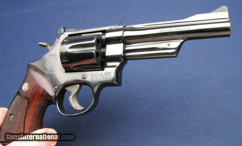 Description: Beautiful blue 5" barreled S&W 27-2. Nicely cased with a period box of .357 ammo. P&R,TT,TH, sharply checkered grips. Clean, minty bore and cylinders. No factory box or papers. $45 shipping to the lower 48, 3% surcharge for using a CC. If you pay with a personal check, you can expect us to hold the item for up to 10 days to ensure that the check clears. SOLD Handgun Caliber: .357 Magnum |