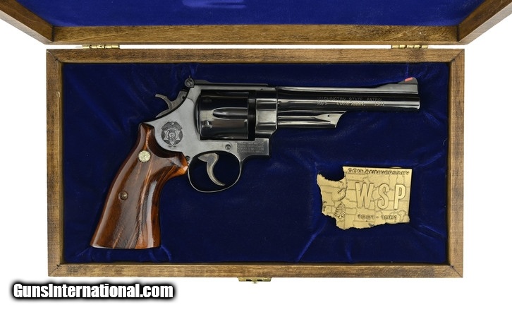 Description: " Smith & Wesson 28-2 .357 Mag caliber revolver. Washington State Patrol 60th anniversary 1981 issue. Excellent condition with display case. SOLD |