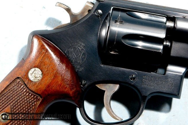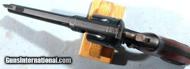 Description: 1954 (1ST YEAR) SMITH & WESSON N FRAME HIGHWAY PATROLMAN PRE MODEL 28 .357MAG 6" BLUE REVOLVER. Serial number "S1202XX" on butt, ejector rod housing, cylinder and matching grips. Almost all the original factory blue with balance at a few edges, muzzle and drag line slight. Tight lockup. 5 screw frame. All screws unturned. Mint bore and chambers BUT….slight bulge in mid barrel(only visible on inside and probably won't affect accuracy but there nonetheless). Original sights and matte rib. Case hardened hammer and trigger. SOLD Curio/Relic: Yes |