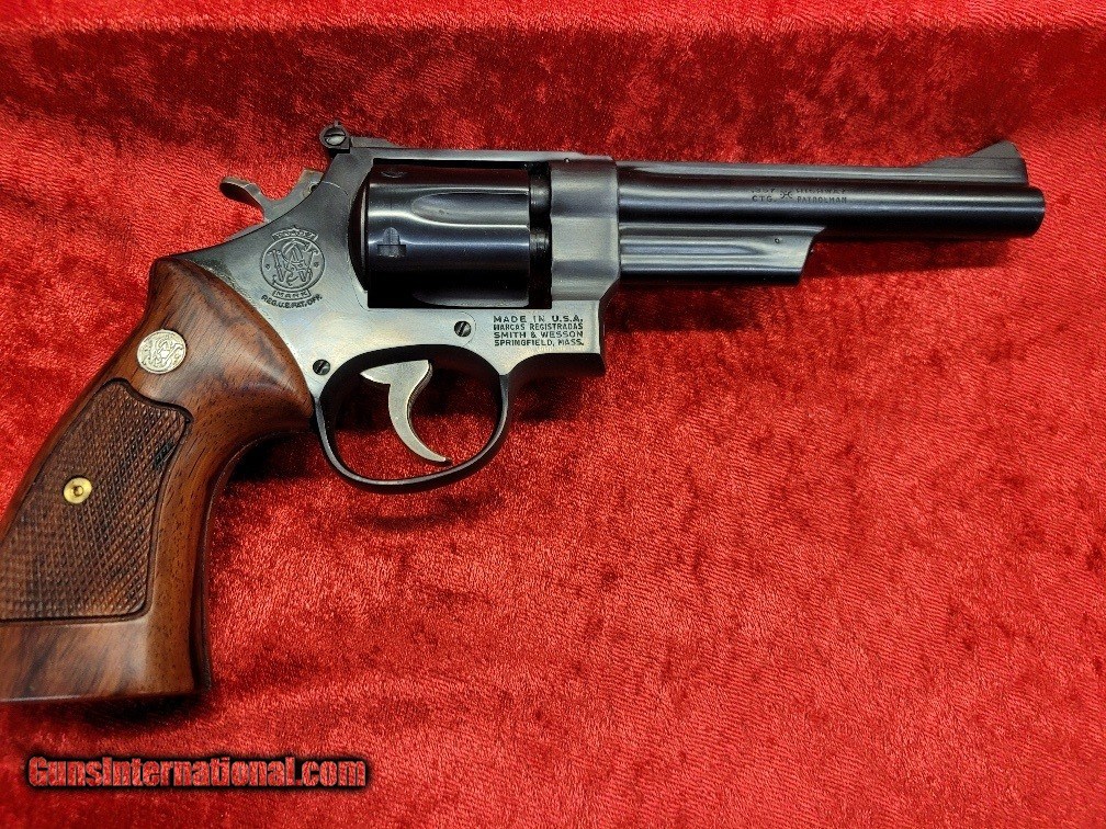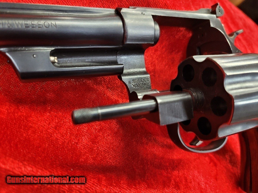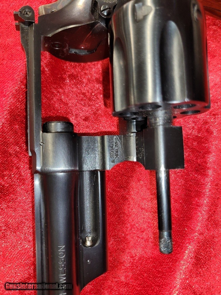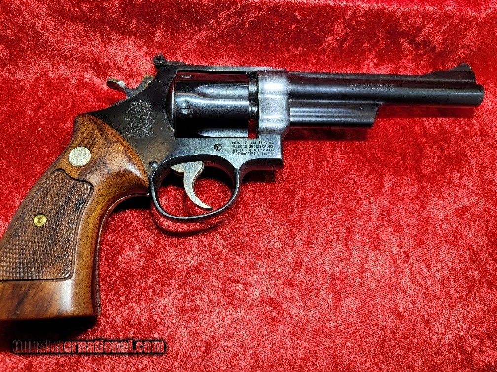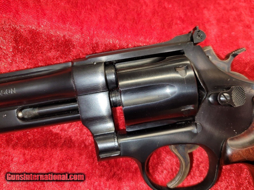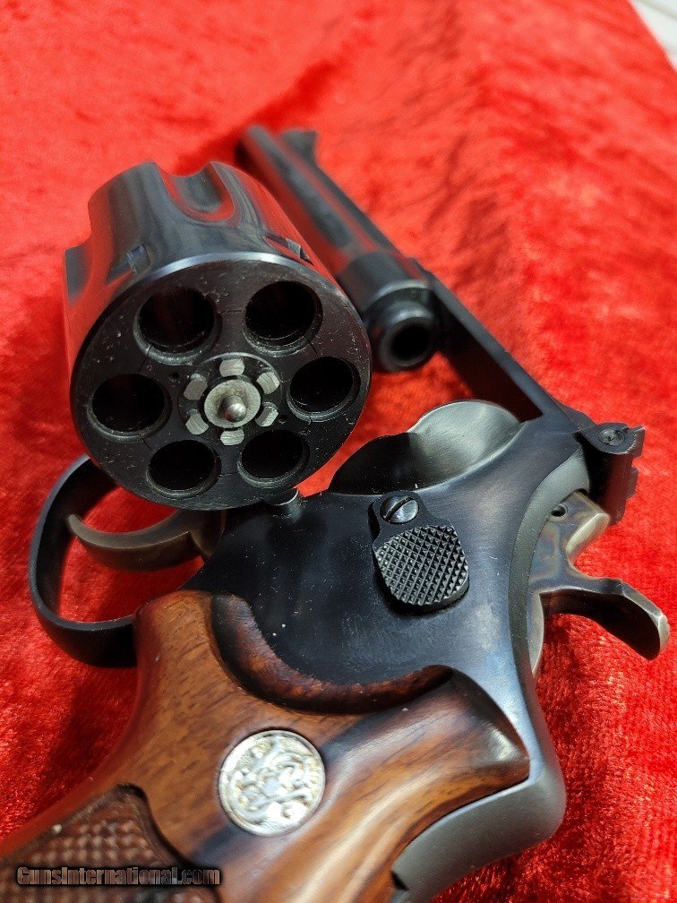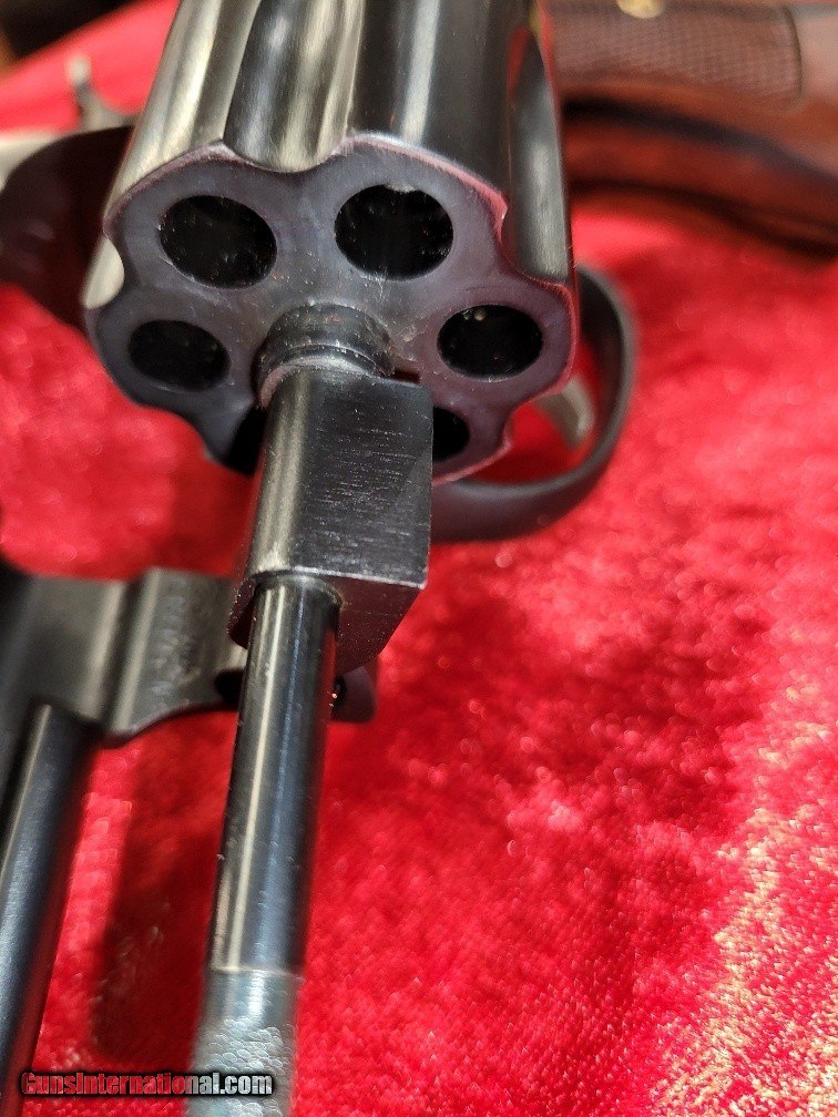 Description: Here is a near new Smith & Wesson Model 28-2 Highway Patrolman 357 Magnum revolver in stunning original condition. There is just the faintest hint of a turn line and this must have been a safe queen. No box or paperwork and the grips appear to be custom. The caliber .357 magnum/.38 special was introduced in April of 1954 with the "S" prefix. In 1969 the prefix was changed to "N". Originally called the Highway Patrolman it became the Model 28 in 1957, the 28-1 in 1960 and the 28-2 in 1961. The 28-3 was introduced in 1982 and in 1986 the Model 28 was discontinued. I believe this gun is from 1975 or thereabouts based on the "Standard Vatalog of Smith & Wesson," Please refer to photos for condition and always happy to take more and answer all your questions to the best of my ability. Because of insurance cost, shipping will be $40 USPS priority once we we receive your shop's ffl and the USPS money order or certified check. I will send you the tracking information when it ships which we endeavor to do the day the money comes in unless we are up against a weekend or holiday. The shipment will include my FFL and a receipt showing the item and amount paid. Gunsinternational does not have feedback ratings but if you call me I will give you the number of one of my listings on GB where I have 1222 A+ ratings. You need to have confidence you are dealing with a reputable dealer. Price: $1099 SOLD Handgun Caliber: .357 Magnum Manufacturer: Smith & Wesson Model: 28-2 Serial Number: n230483 Condition: Excellent Near New Metal Condition: Excellent Wood Condition: Excellent Bore Condition: Excellent Action: Single/Double Finish: Blued Weight: 2.93 Sights: Factory Manufacture Date: 1975 Item Location: Newbury NH |