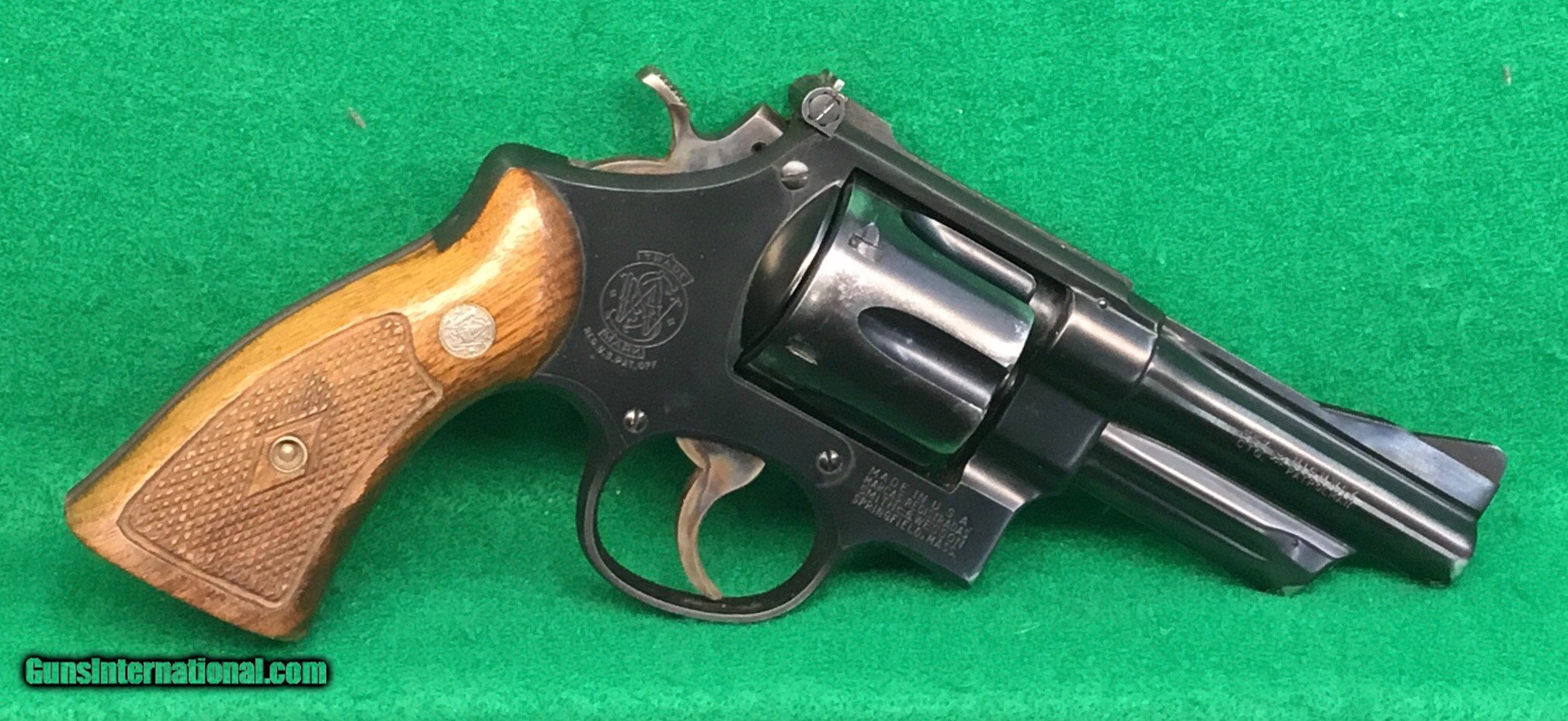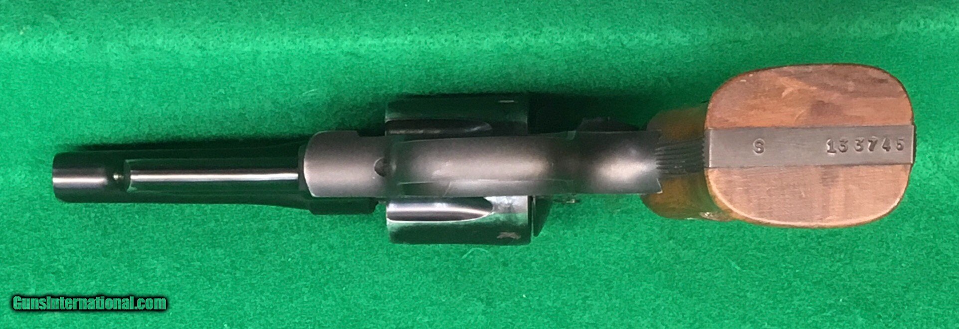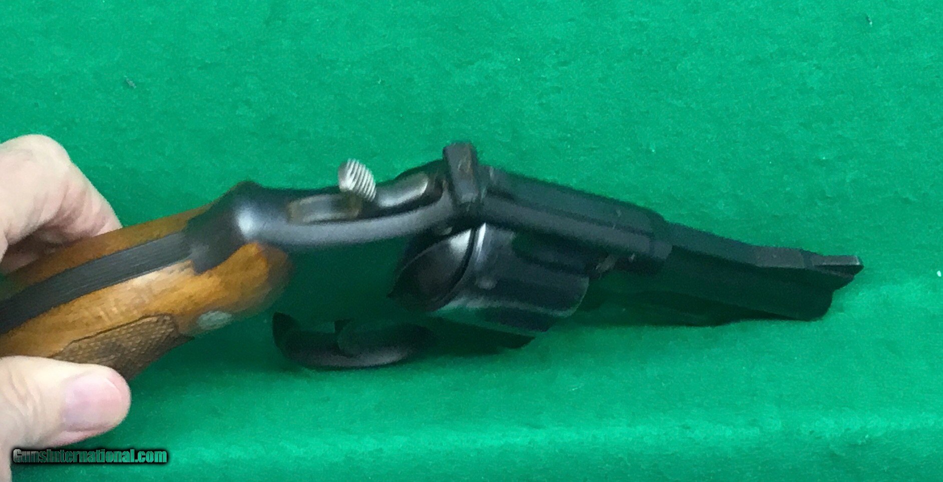 Description: Sold, awaiting payment // No model designation on this early 5 screw pre 28 Smith & Wesson. Four inch barrel and with the correct diamond center grips. showing just a bit of blue wear from holstering. Mint bore with timing and lock-up right on. $998 plus $35 insured shipping. No credit cards and no trades. C&R ok. SOLD |