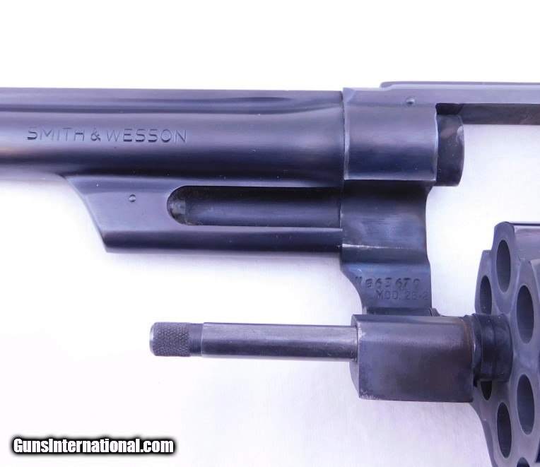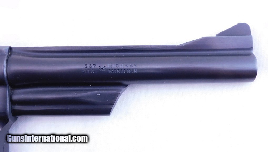 Description: S&W 28-2 Highway Patrolman .357 MAG, 6" bbl, bright shiny bore, good rifling, adjustable rear sight, serrated ramp front sight, blued finish, color case hardened serrated trigger - checkered hammer, silver serrated wide trigger adapter, and Pachmayr Presentation grips. Great for collecting or shooting! Add 3% for Credit Card Shipping $25.00 SOLD |