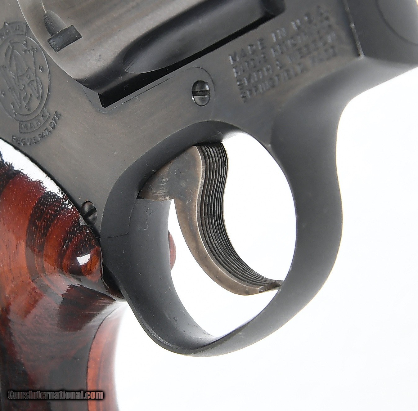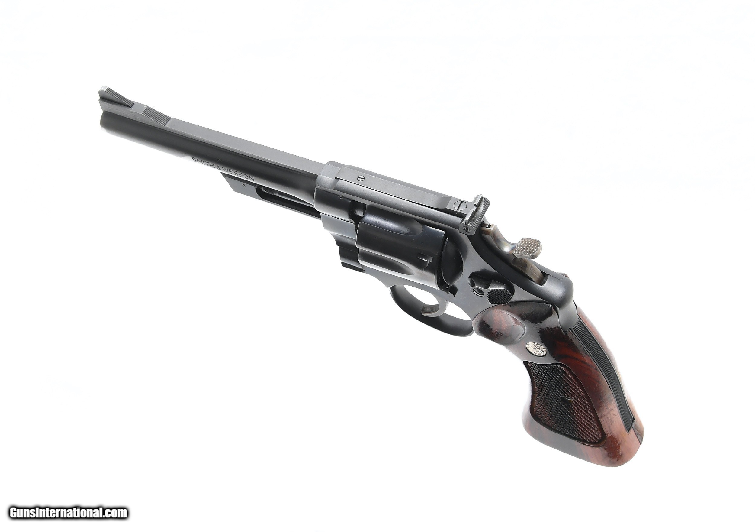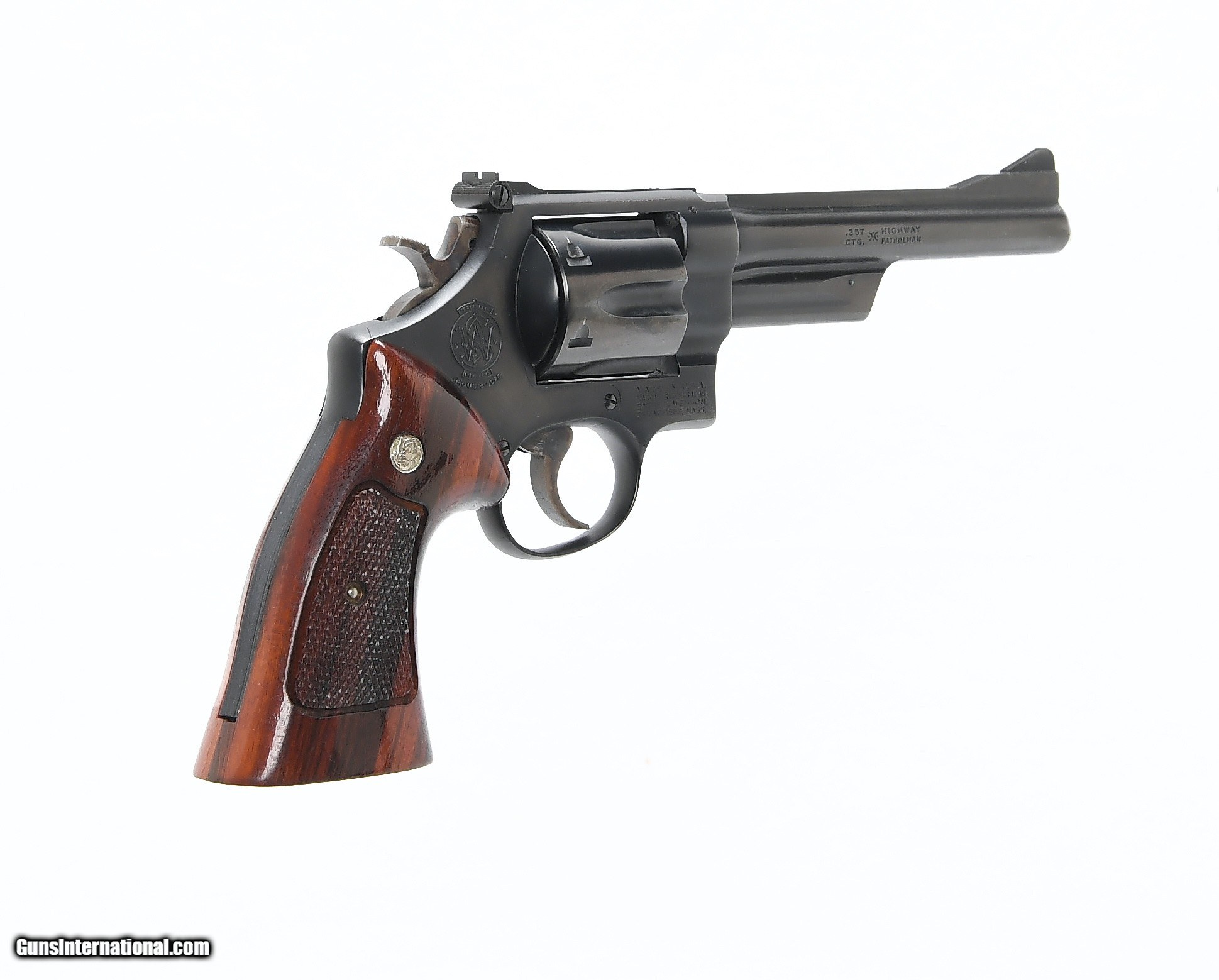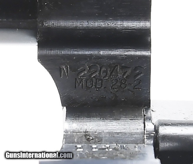 Description: S&W model 28-2 Highway Patrolmen .357 magnum revolver. 6” barrel and 98%+ original blue, even the turn ring is hardly noticeable. Beautiful, dark Goncalo Alves target grips. The -2 version of this revolver has the desirable recessed cylinder and the pinned barrel. Excellent overall condition and a revolver that is in high demand. $1,350.00 SN: N220472 SOLD |