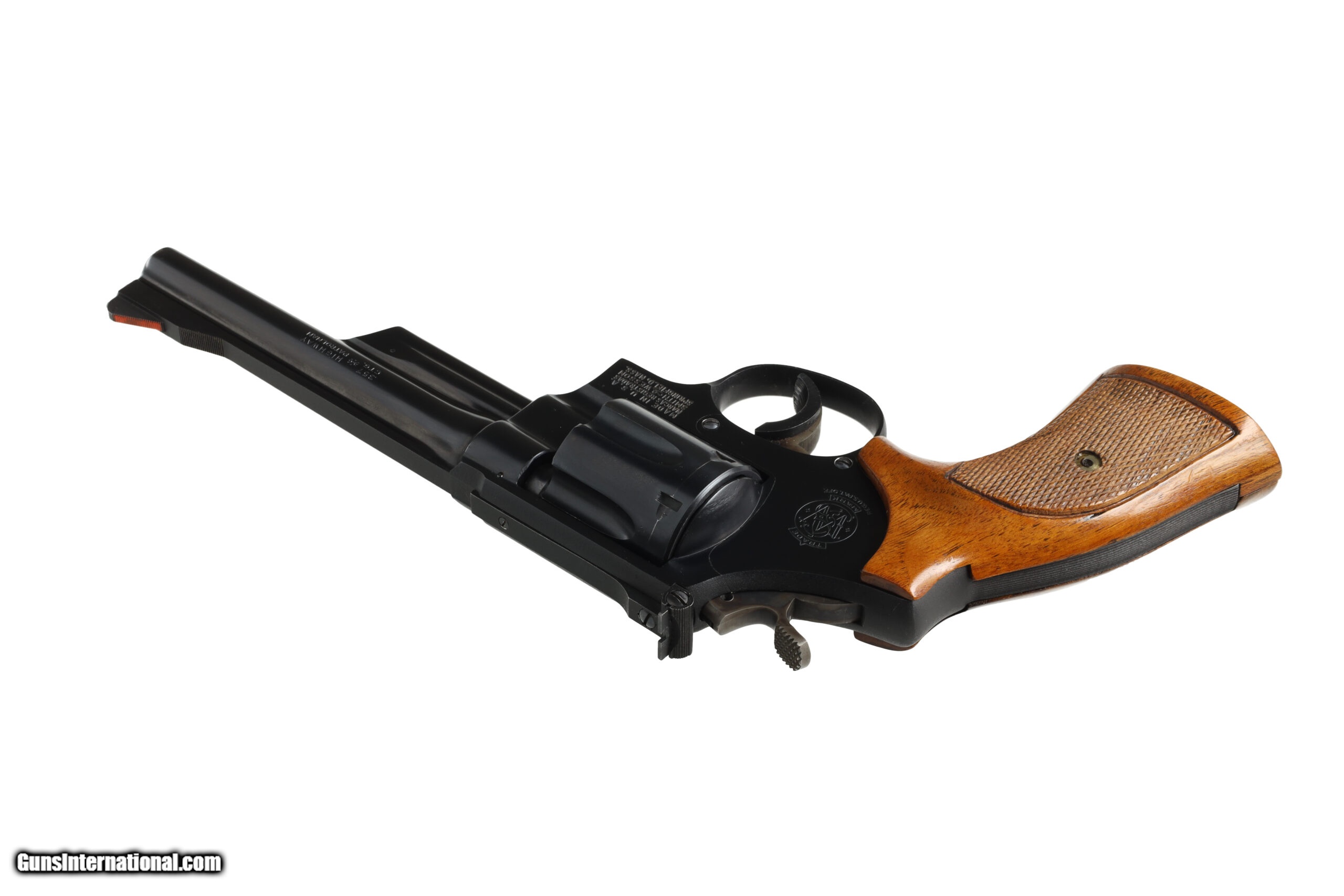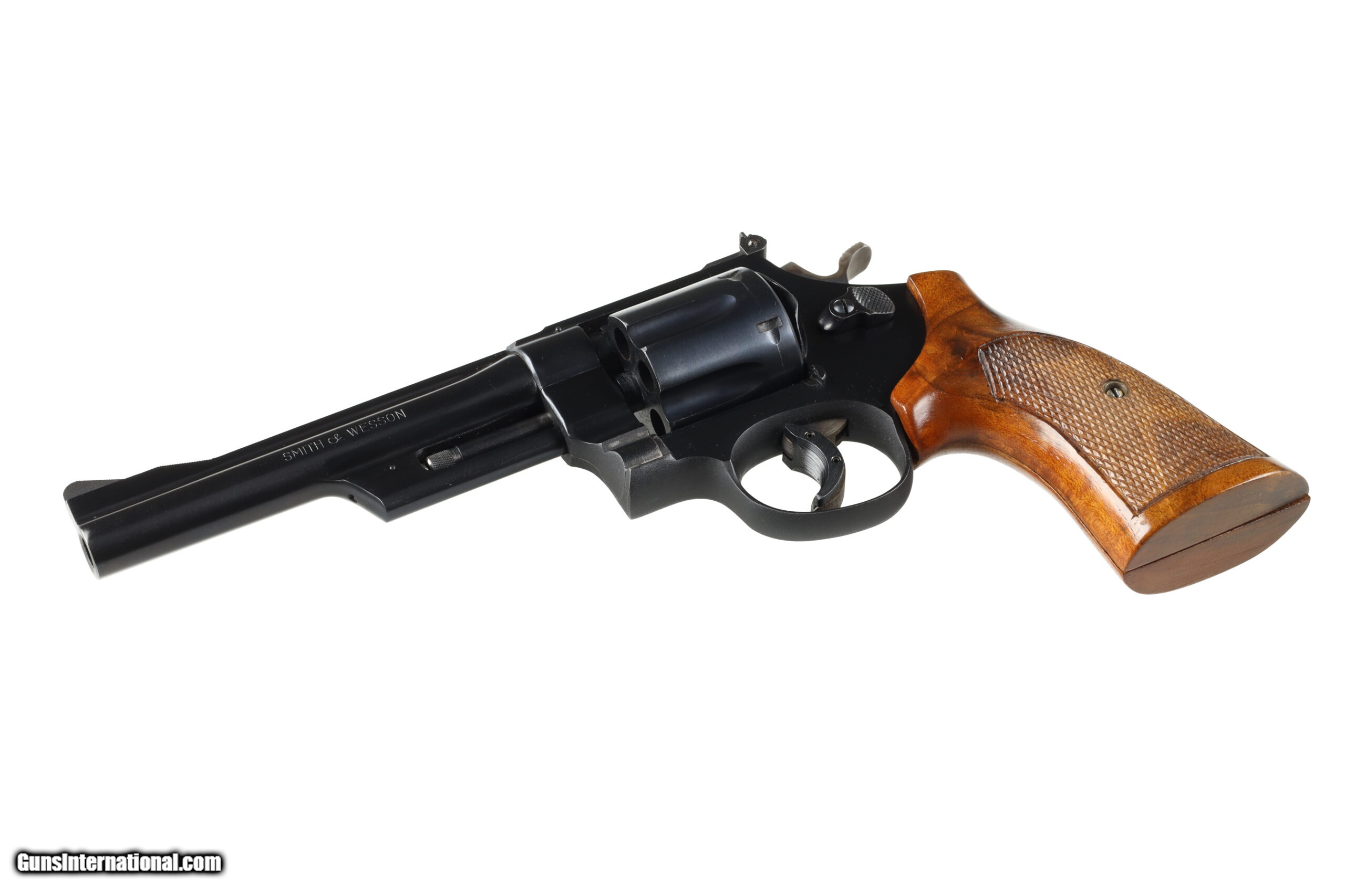 Description: The Smith & Wesson Model 28 "Highway Patrolman" was in effect a slightly simplified version of the Model 27, developed specifically for police use and features an overbuilt N frame and bead blasted top strap / Frame rounds to reduce glare. This example is in excellent overall condition, with very little external wear. It must be noted that this pistol appears to have been used as a target pistol, as such the trigger has been lightened and sear modified to the point that it is no longer drop safe on single action. Manufactured in: USA Hand: Right Hand Action Finish: Blue Metal Finish: Original Barrel Length: 6 Inches Barrel Condition: Very Good Stock Finish: Original Stock Condition: Very Good Grip: Pistol SOLD Manufacturer: Smith & Wesson Model: 28-2 Caliber Info: .357 Magnum Condition: Preowned Metal Condition: Very Good Action: Revolver Triggers: Single Finish: Original Weight: 2.8 lbs Case: NONE |