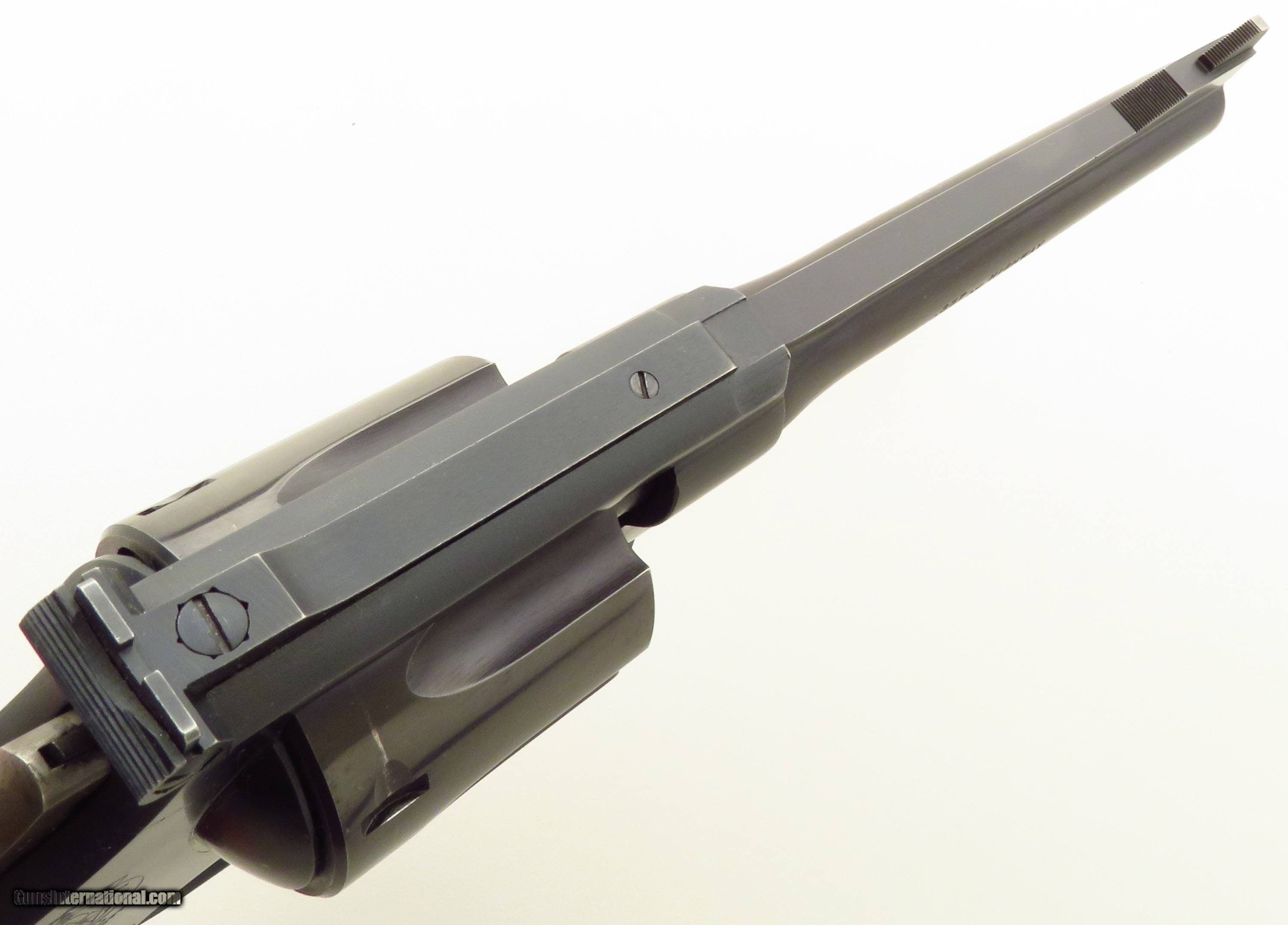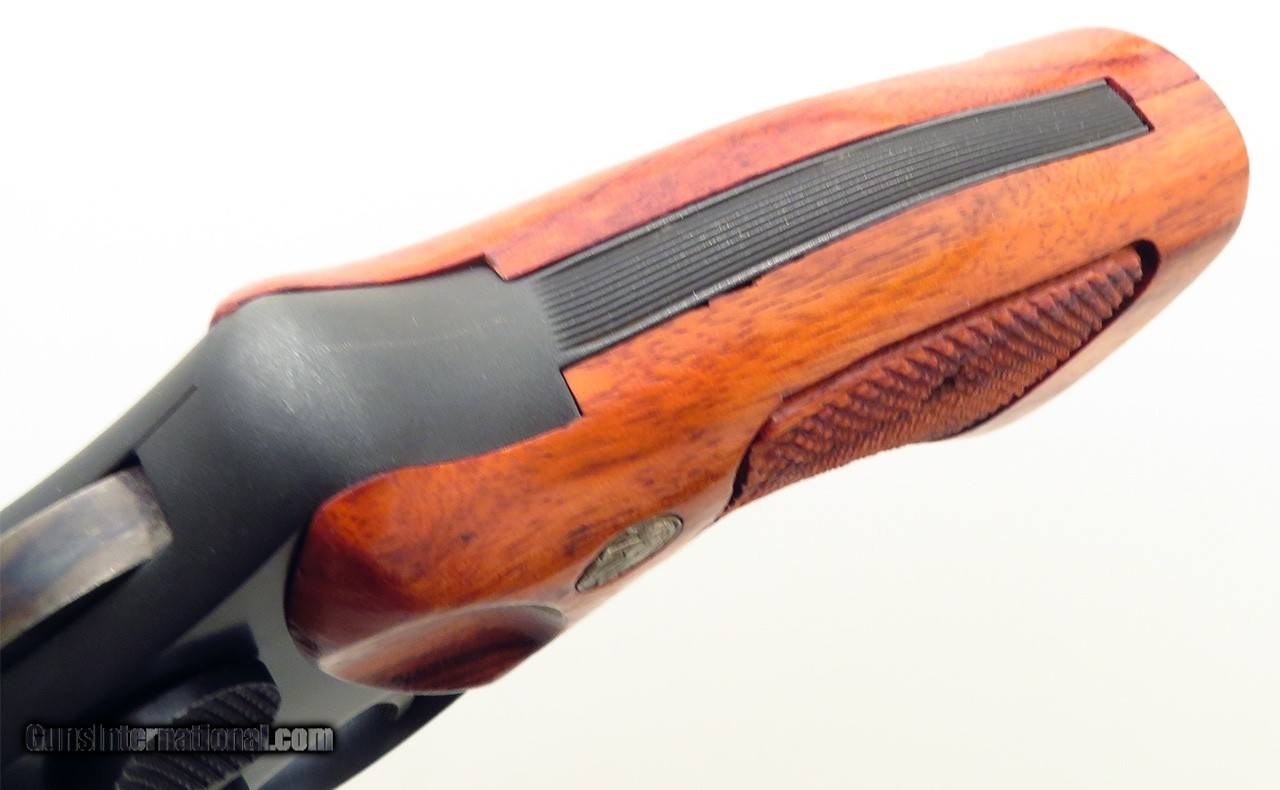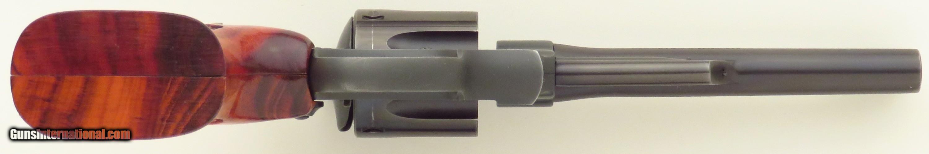 Description: Smith & Wesson Model 28-2 Highway Patrolman .357 Magnum. Made circa 1985, serial N950837 has a six-inch barrel (integral rib with serrated ramp, serrated blade front sight). Features include a matte finish, adjustable rear sight, color case hammer (narrow, checkered spur), recessed cylinder, color case trigger (narrow, serrated face) and target grips. No box or papers. CONDITION: The bore is strong and bright. Cylinder walls are smooth. Trigger pulls are smooth. The cylinder rotates and locks properly. Metal finish is approximately 95 percent. Grips are 99 percent. The price is firm. $950 plus shipping. Handgun Caliber: .357 Magnum Price: $950.00 Shipping: $40.00 Contact Seller |